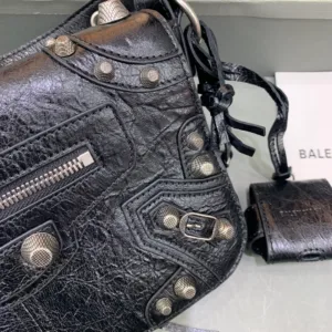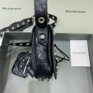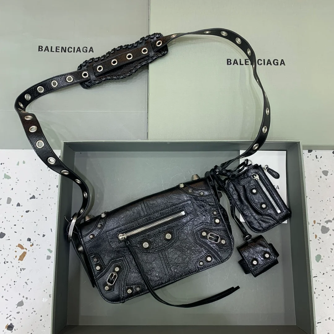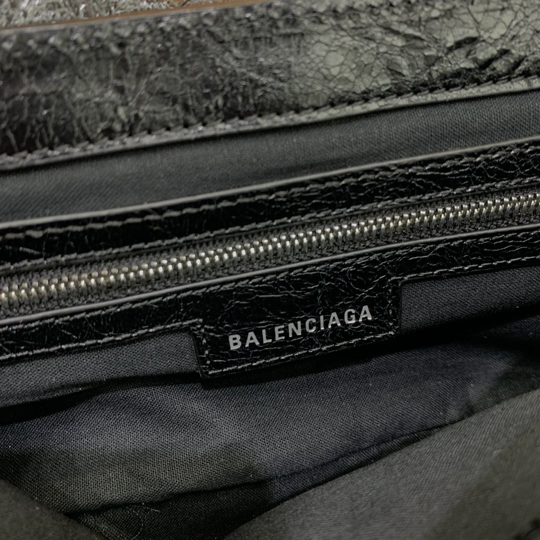 Balenciaga -【Oil Wax Black】New horizontal motorcycle bag (length 24cm x height 14cm x width 5cm)