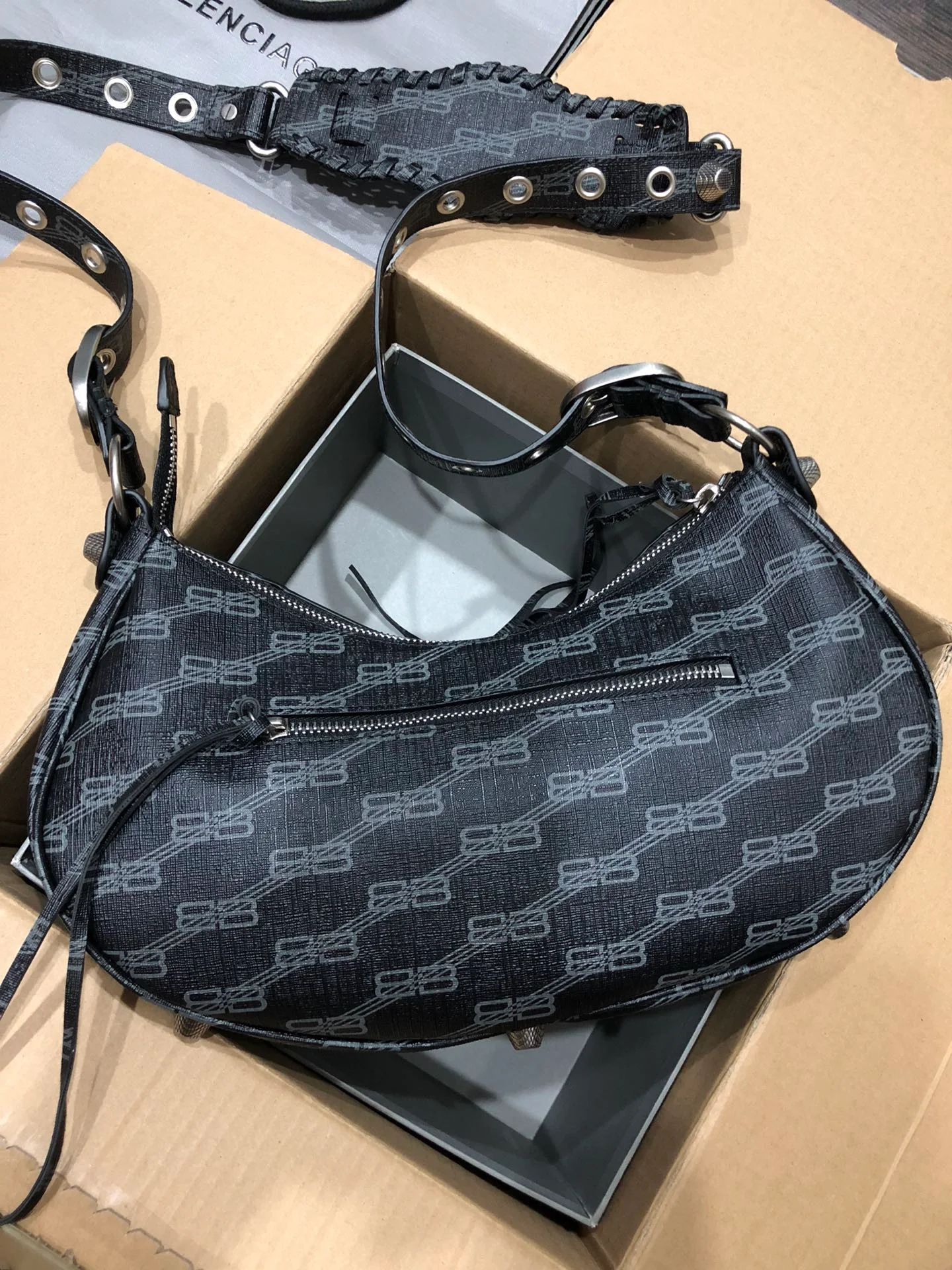 Balenciaga - Top-quality original black printed bag with silver hardware and VIP packaging. 🔥Balenciag Le Cagole half-moon shoulder bag/dumpling bag, a tribute to classic motorcycle bags. A powerful new arrival!