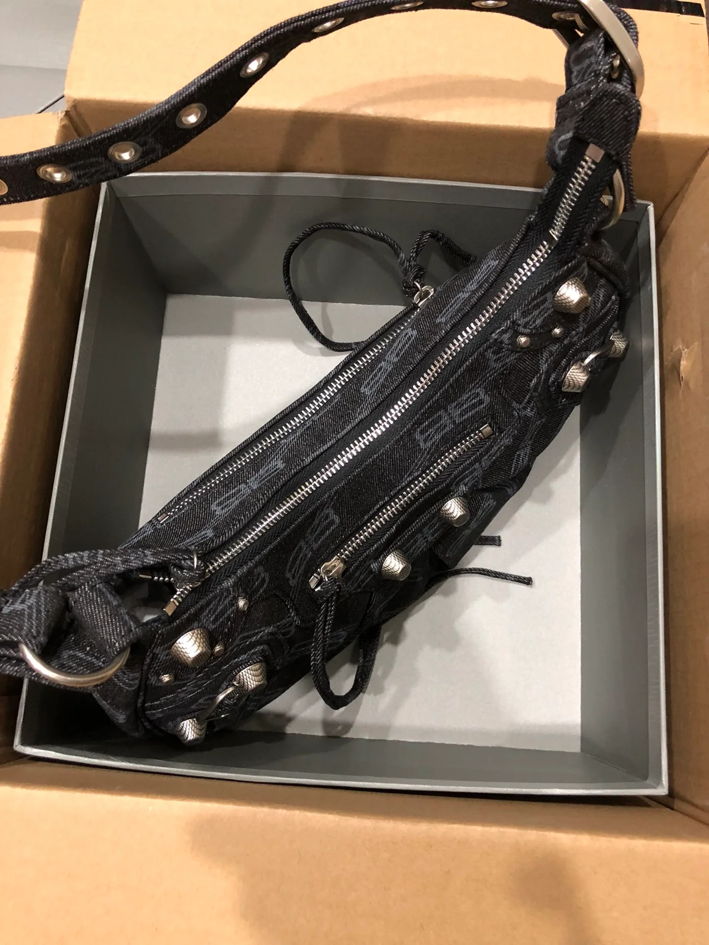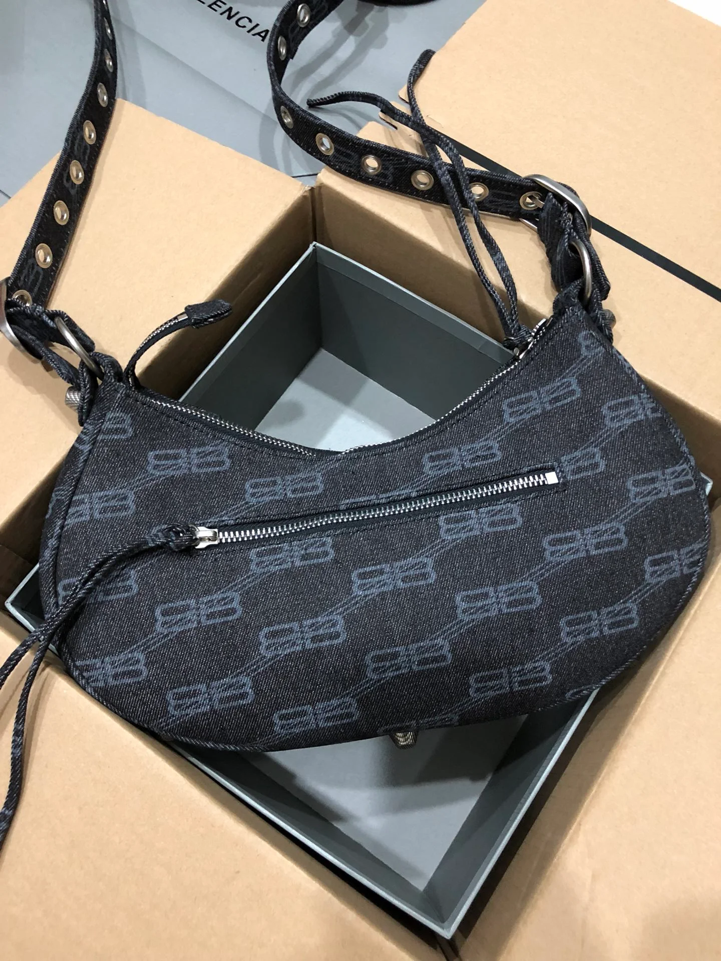 Balenciaga - Top-quality original black printed bag with silver hardware and VIP packaging 🖤✔️ Balencia*g Le Cagole half-moon shoulder bag ~ dumpling bag ~ a tribute to the classic motorcycle bag series. A heavyweight new arrival!