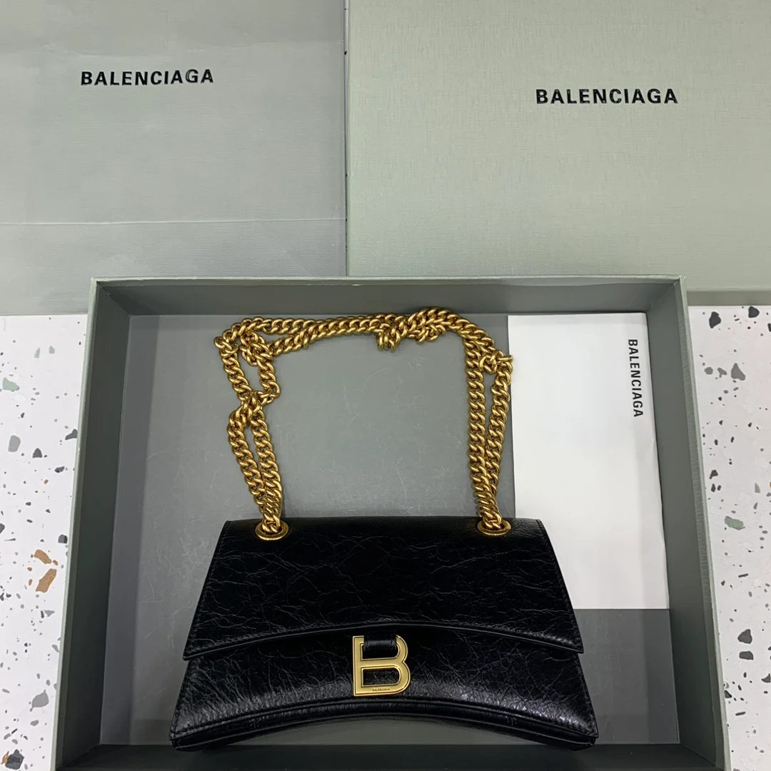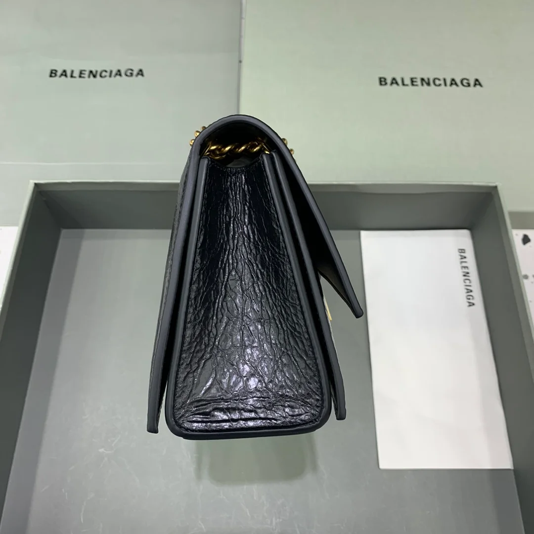 Balenciaga -【Small Size - Crackling Black】Crush's hottest hourglass chain bag 🛍 Unisex, trendy and versatile, ladies,