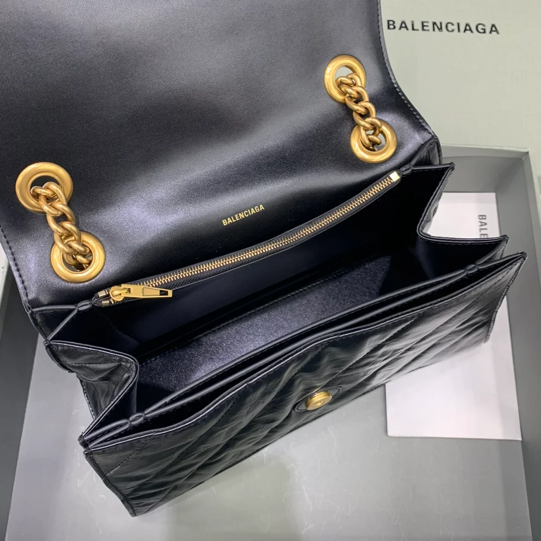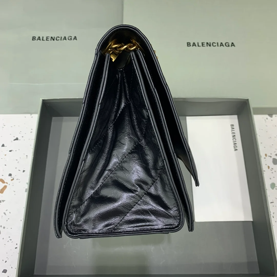 Balenciaga -【Medium Oil-Waxed Black with Gold Buckle】Crush*Crush's Most Popular Hourglass Chain Bag🛍 The Latest Crush Quilted Chain Bag Makes a Strong Debut! Medium Size:
