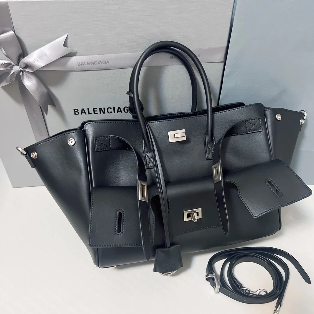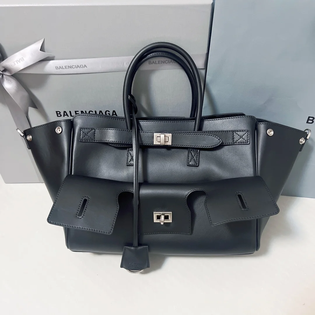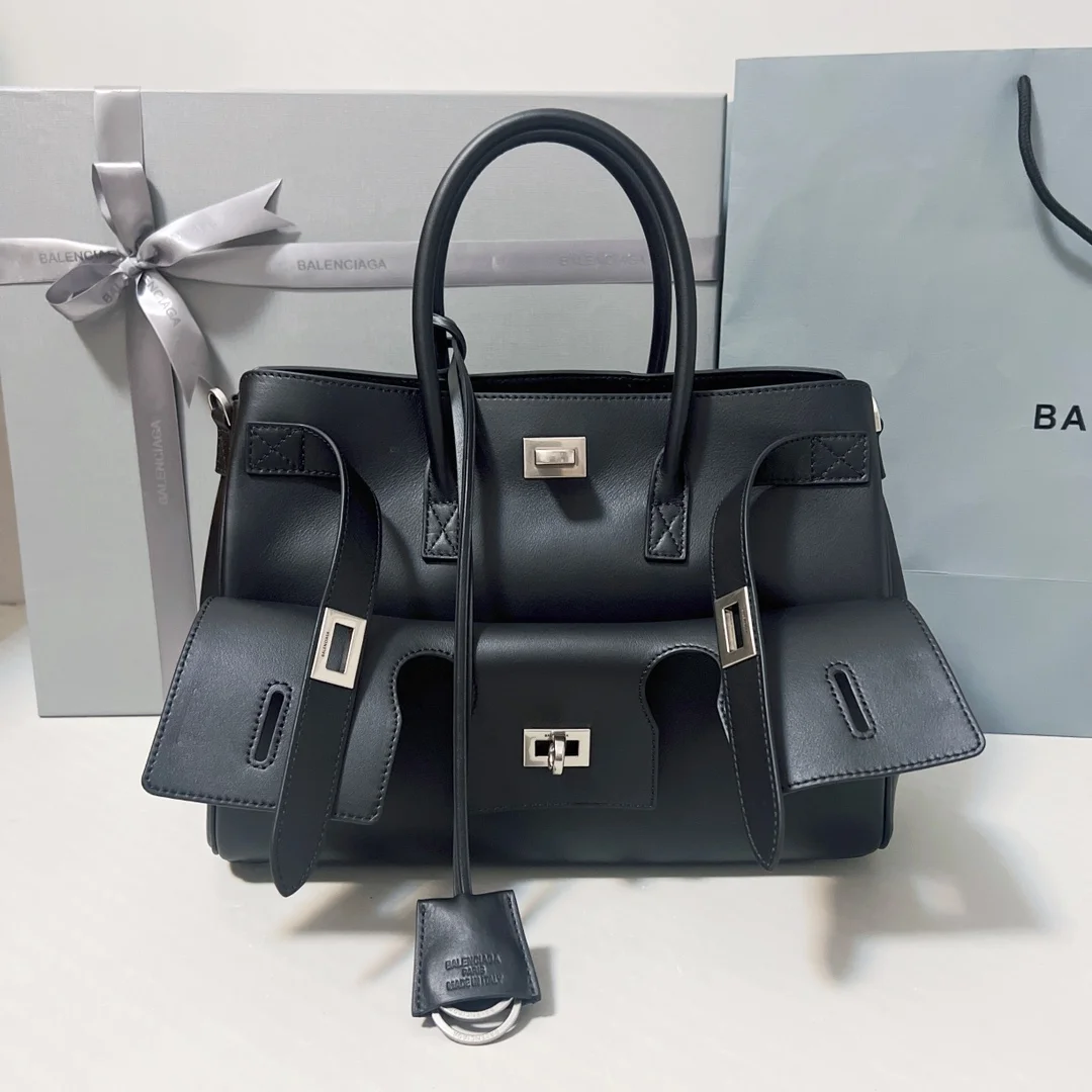 Balenciaga - Small size // Black and silver with long shoulder strap Transformer Bel Air design with extremely intricate details.