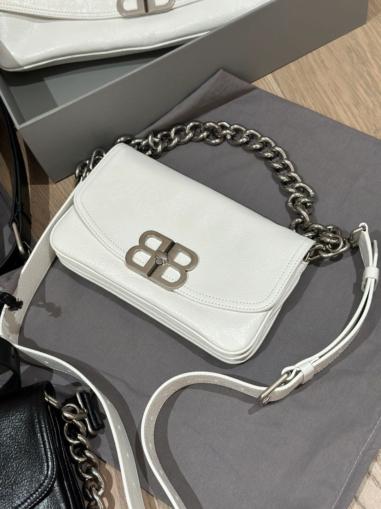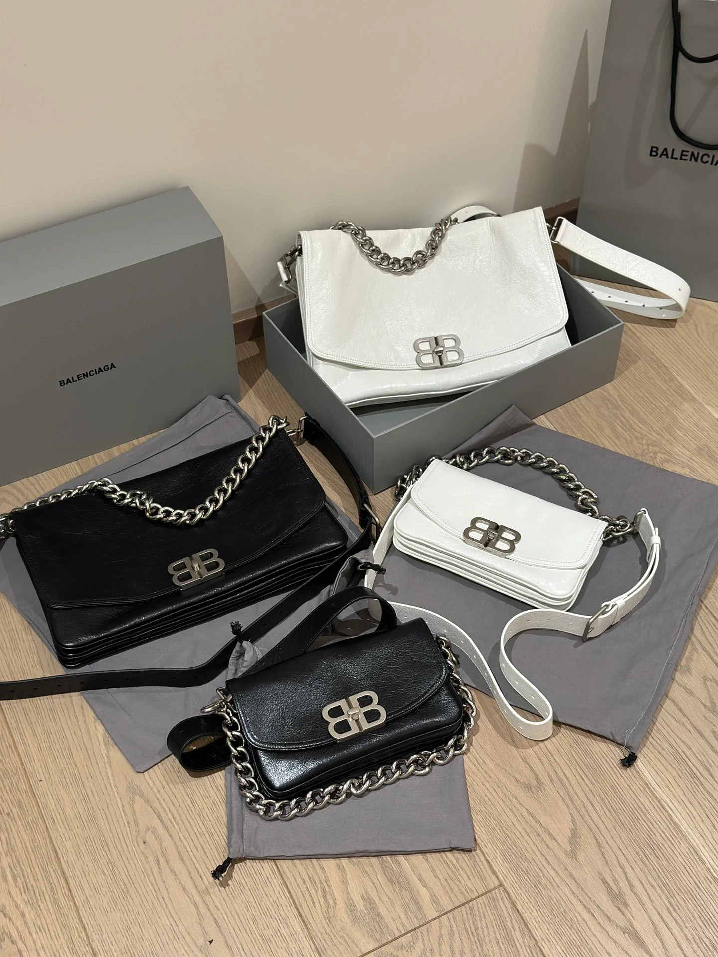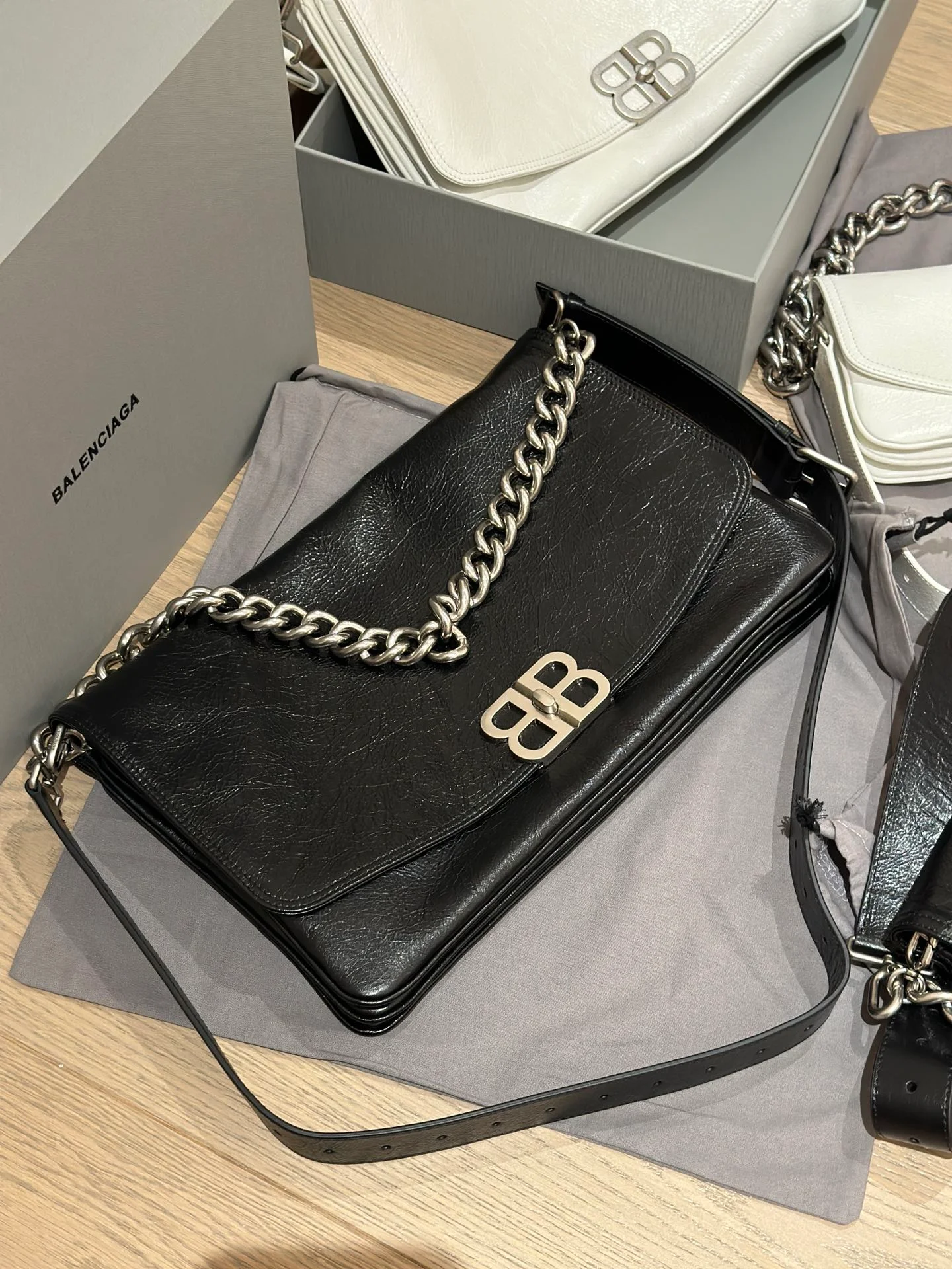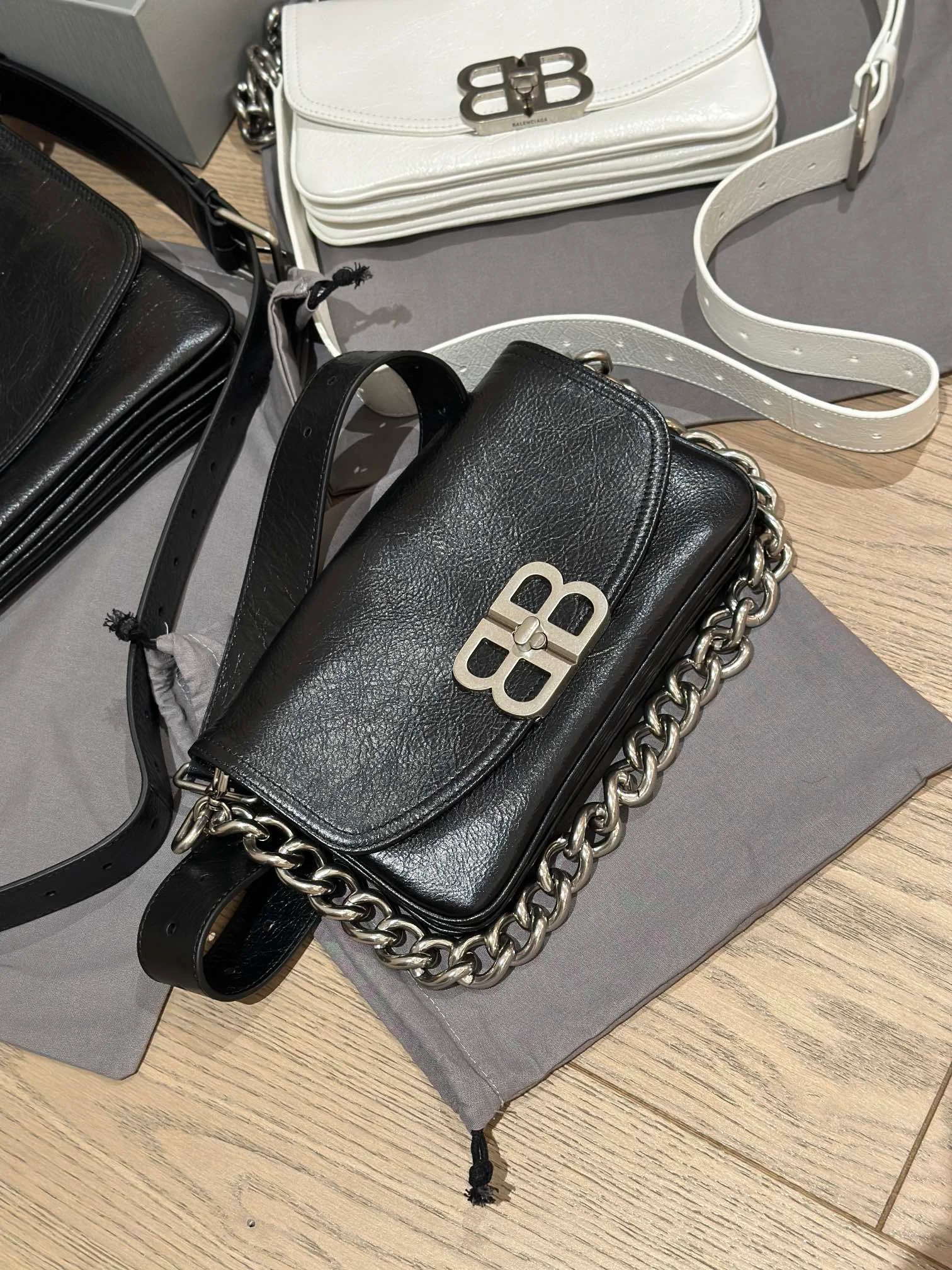 Balenciaga - BB Soft Series New 23Fall Edition!! Adjustable shoulder strap with silver chain. Chain-strap underarm bag design.