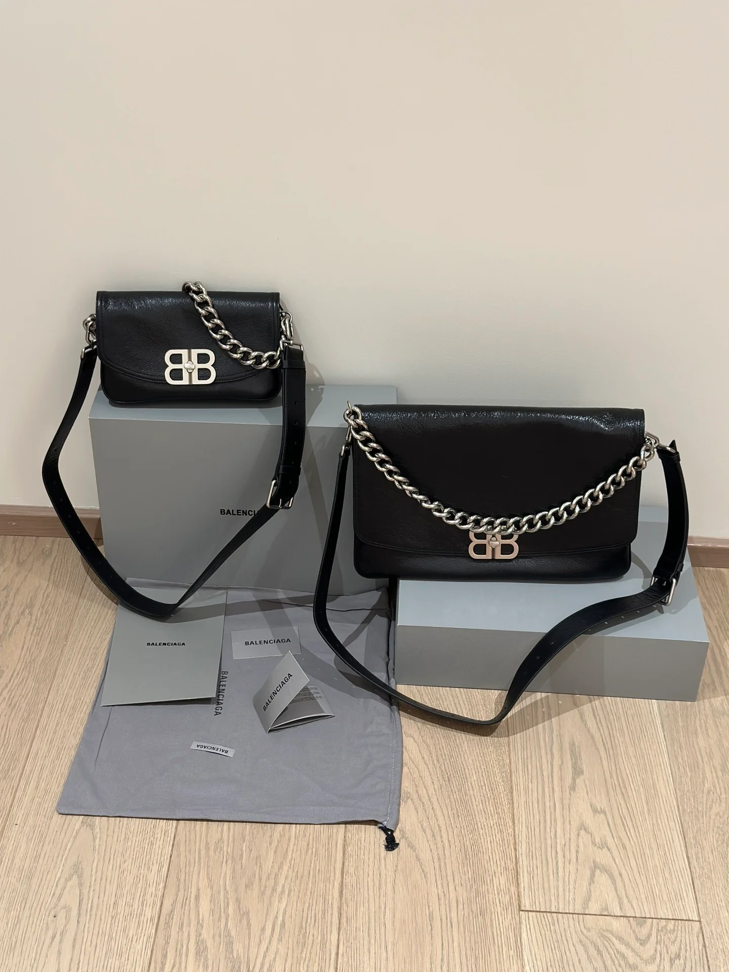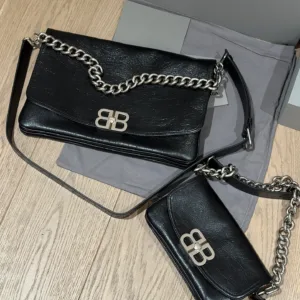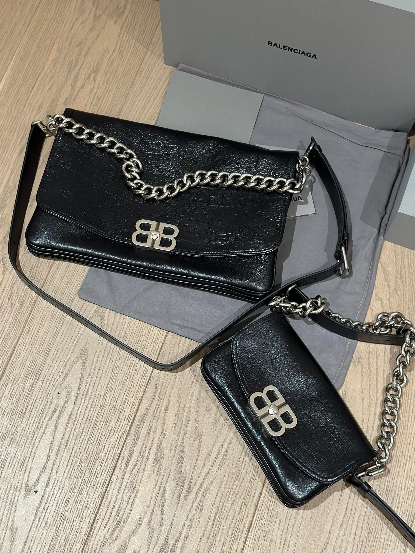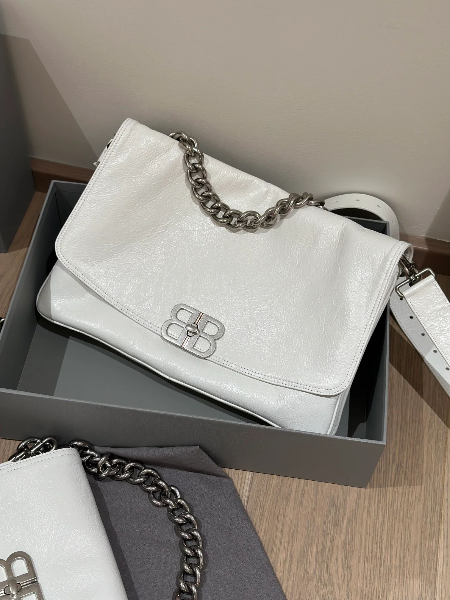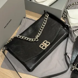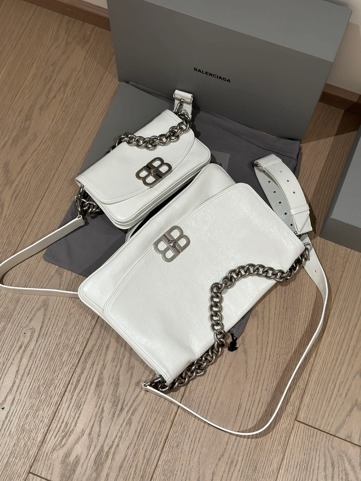 Balenciaga - BB Soft Series New 23Fall Edition!! Adjustable shoulder strap with silver chain. Chain-strap underarm bag design.