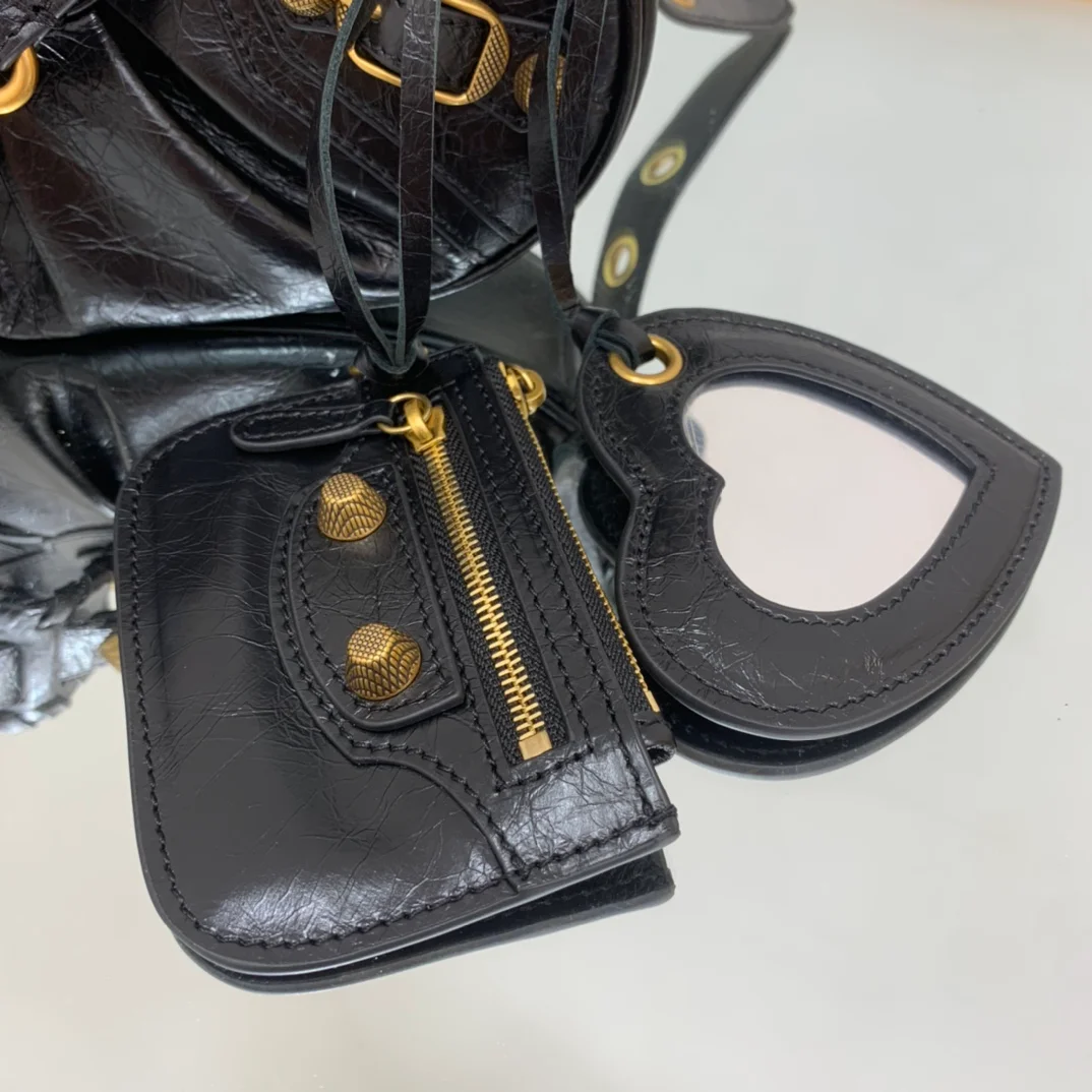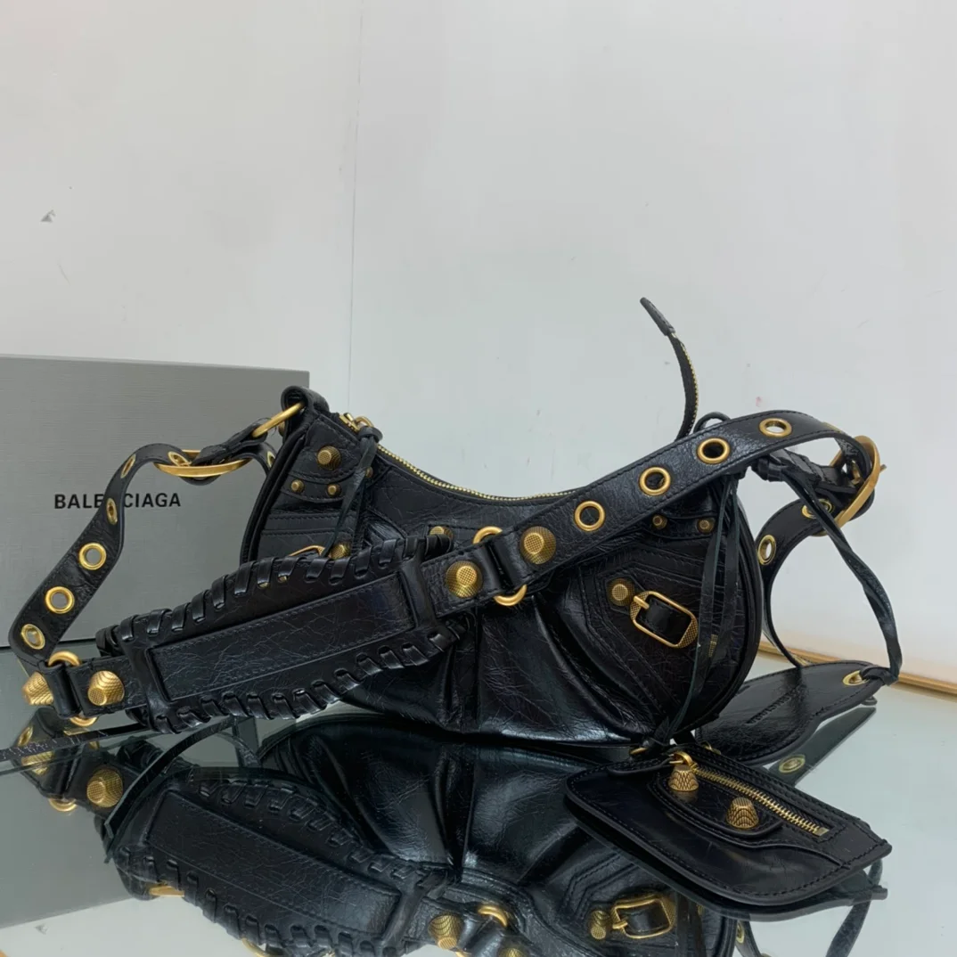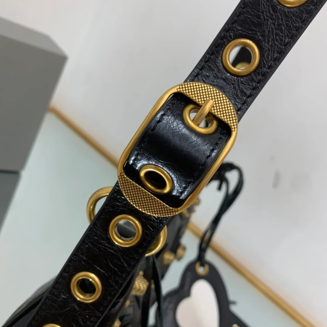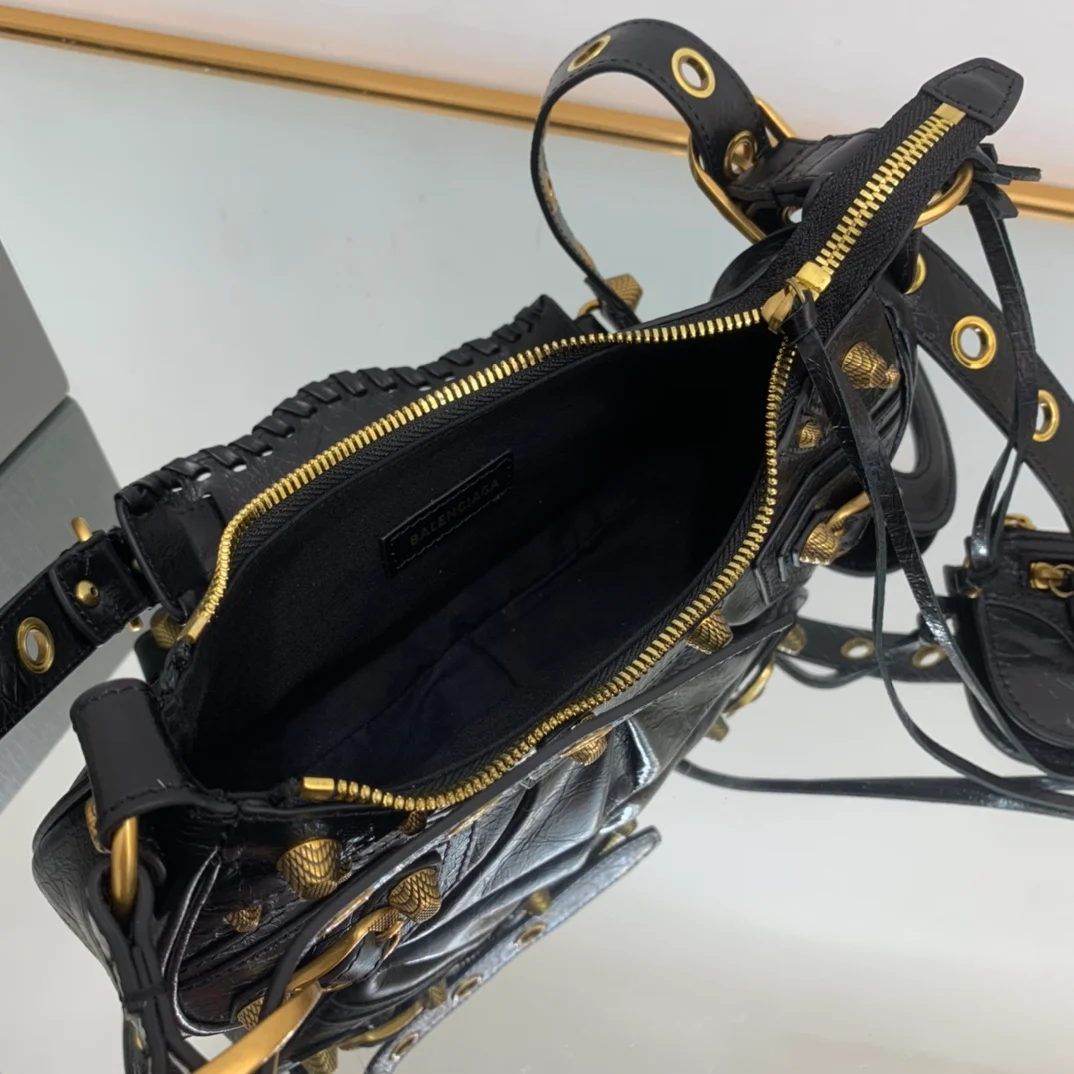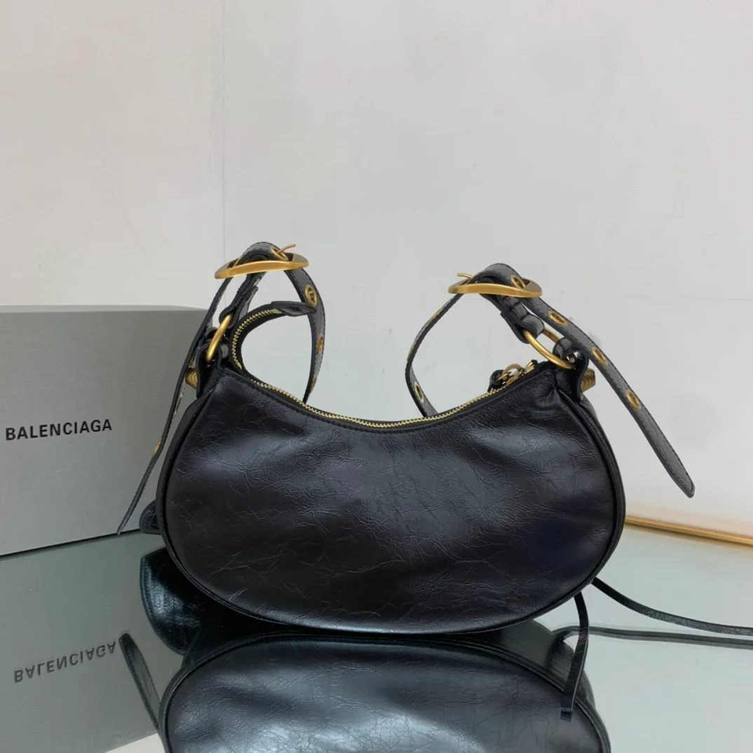 Balenciaga - Black with gold hardware, La Balenciag Le Cagole half-moon shoulder bag/crossbody bag. Dimensions: Length 25cm x Height 16cm x Width 6.5cm.