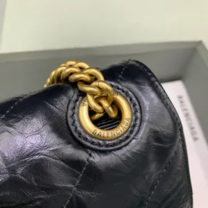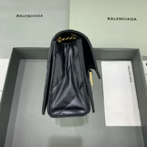 Balenciaga -【Small Oil-Wax Black with Gold Buckle】Crush's Most Fragrant Hourglass Chain Bag🛍Small Size: Bottom Length 25cm x Height 15cm x Width 9.5cm