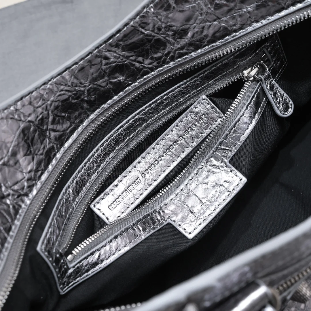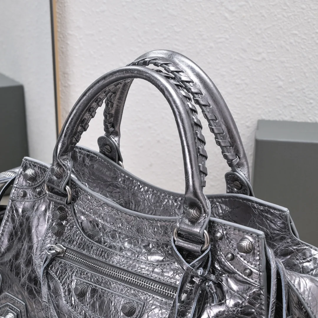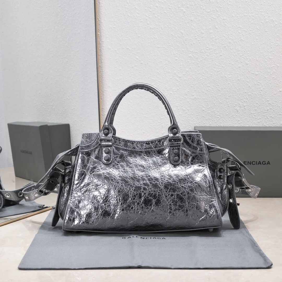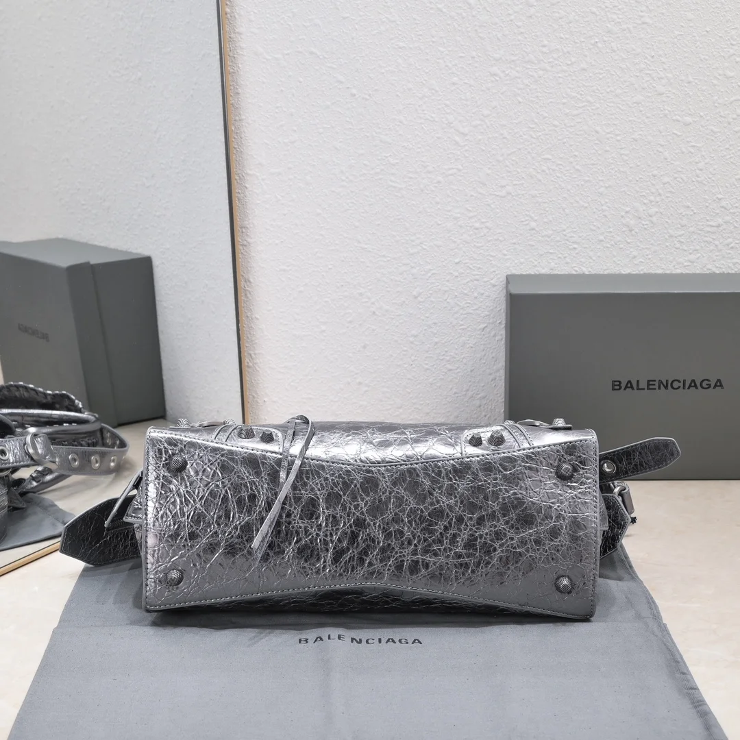 Balenciaga 🆕NEO CAGOLE Motorcycle Trapezoidal Size S Original Imported Crackled Sheepskin Vintage Distressed Silver Hardware Paired with ❤️Heart-shaped Mirror🪞 +