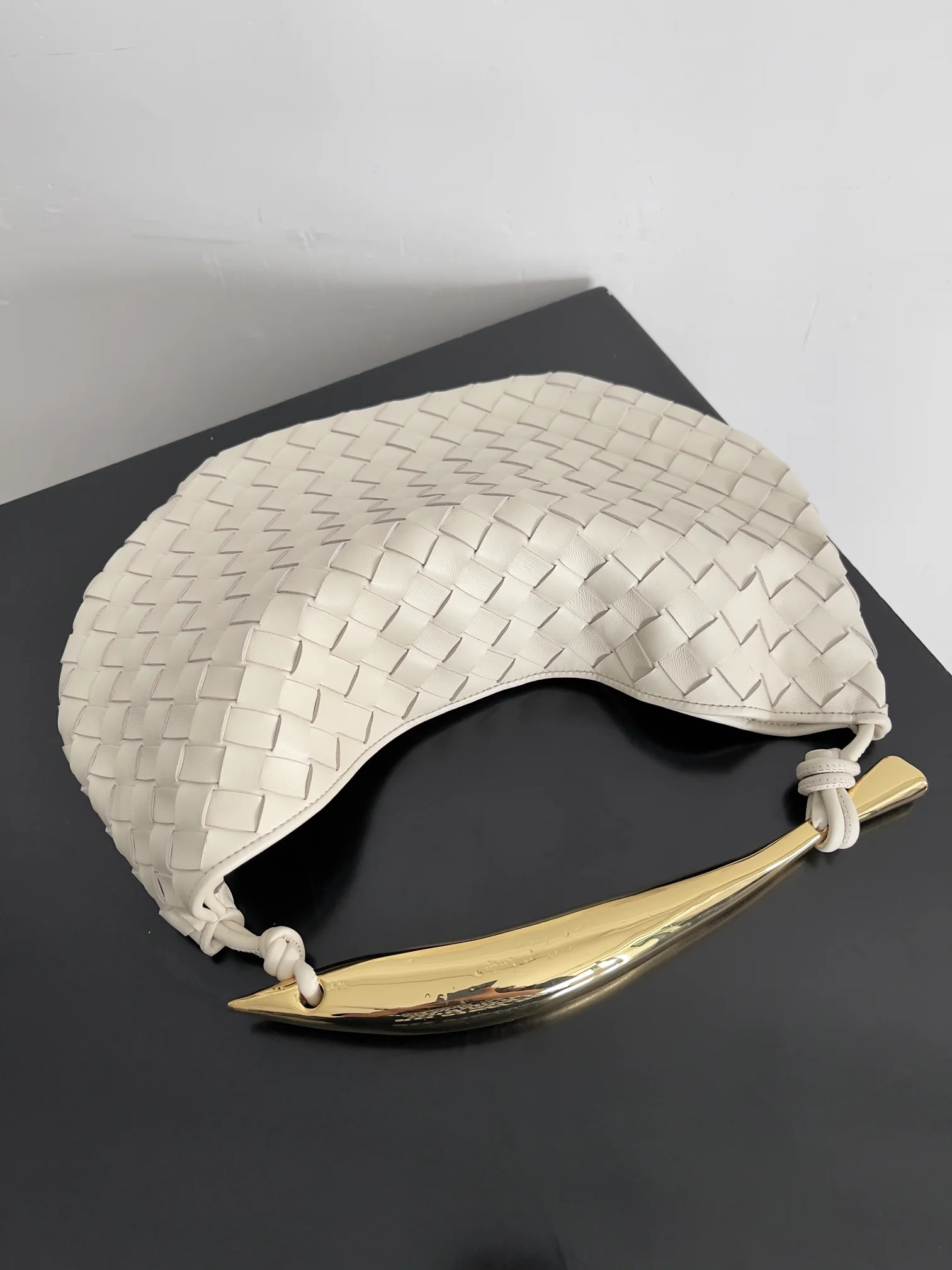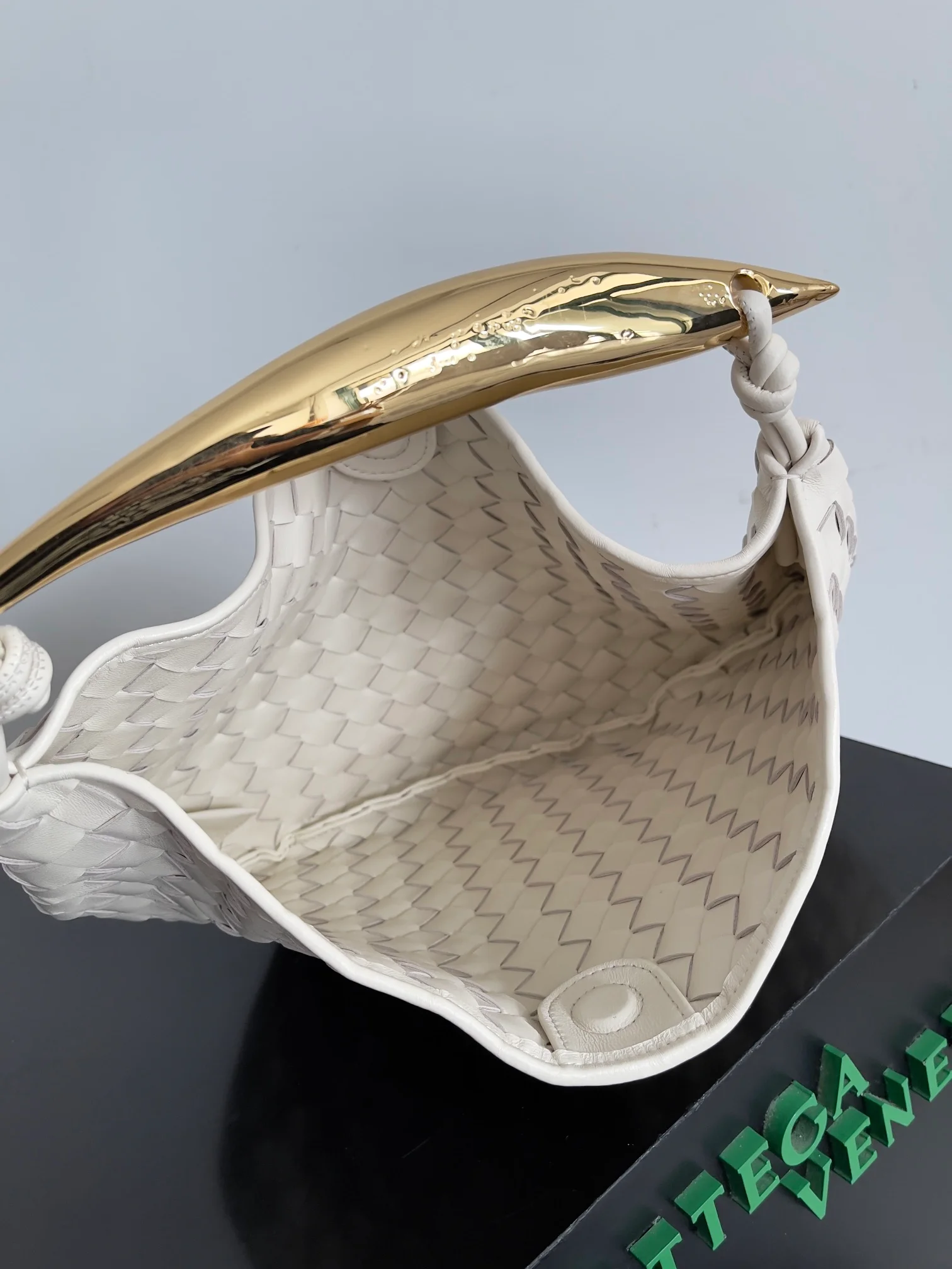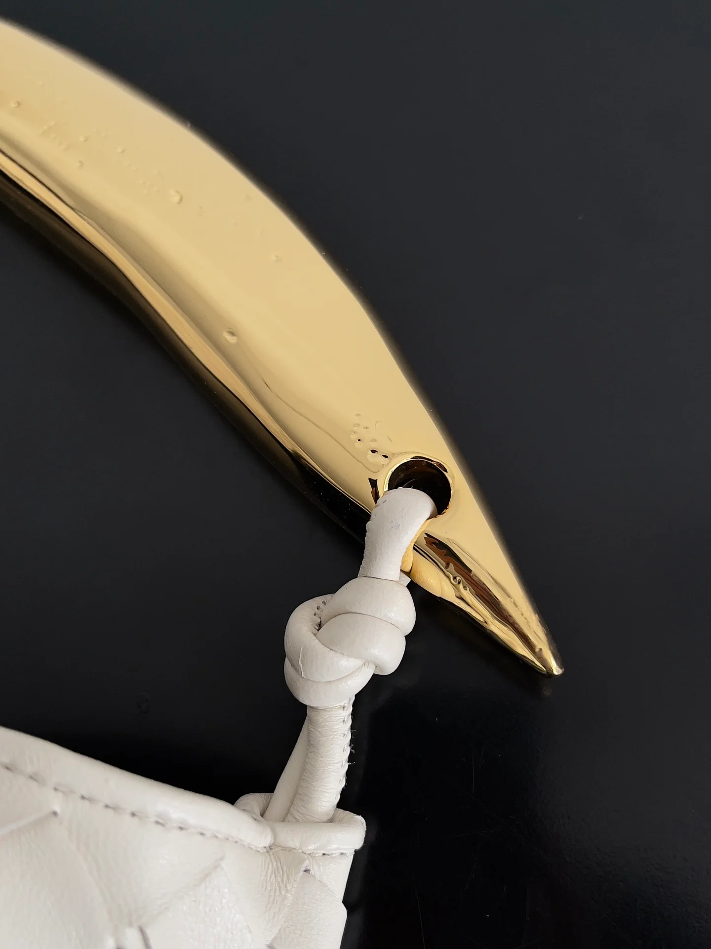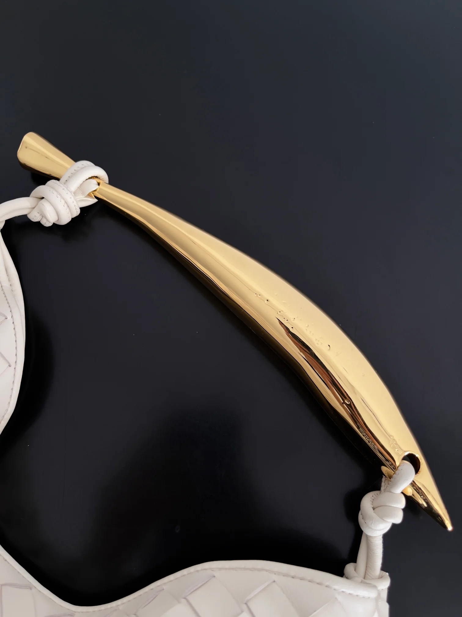 Bottega Veneta – Inspired by Brancusi’s “Bird in the Sky,” this brass handle, crafted with unique techniques, makes each handle one-of-a-kind, embodying a precious sculptural quality. Dimensions: 36*3*24cm