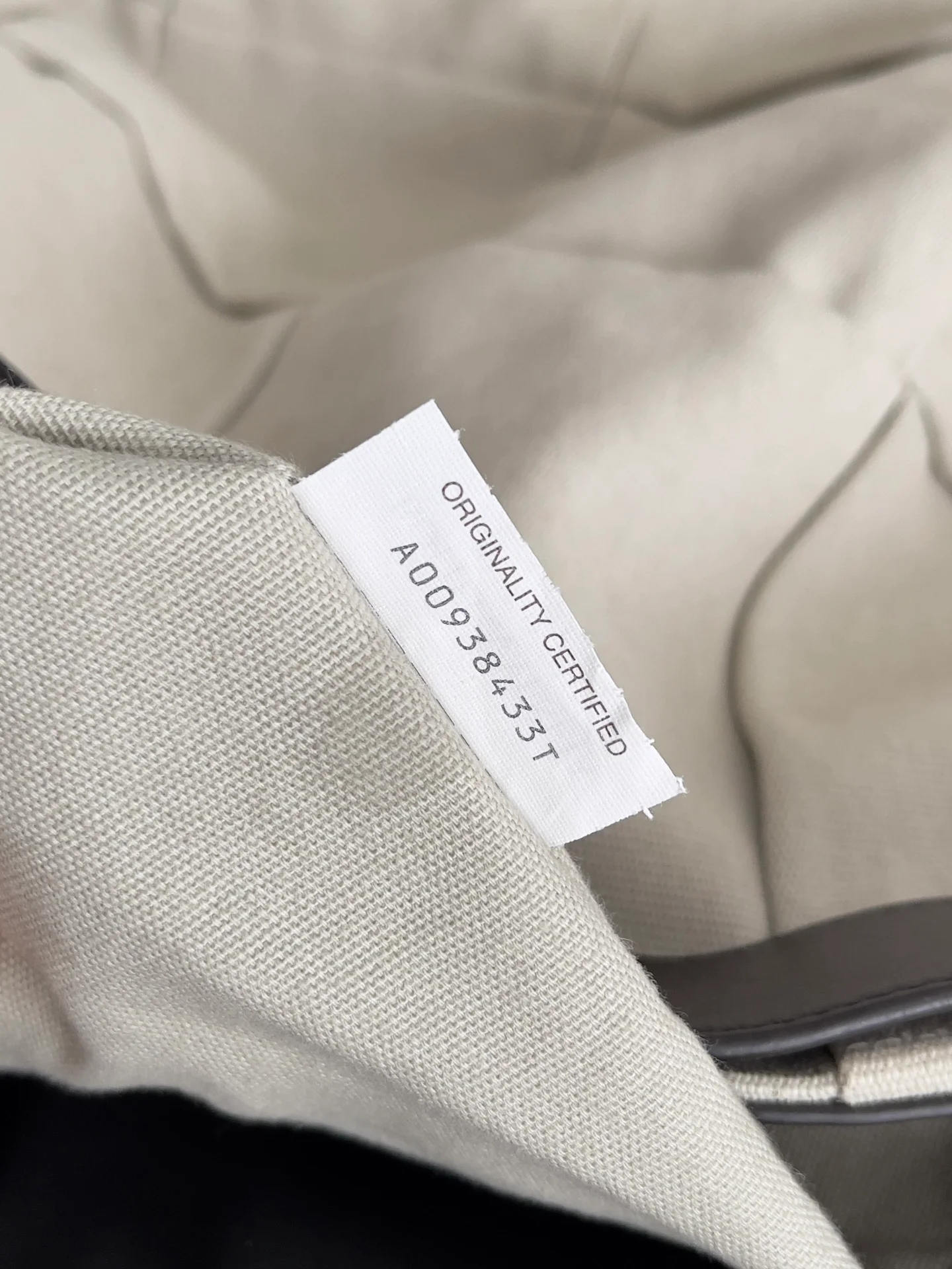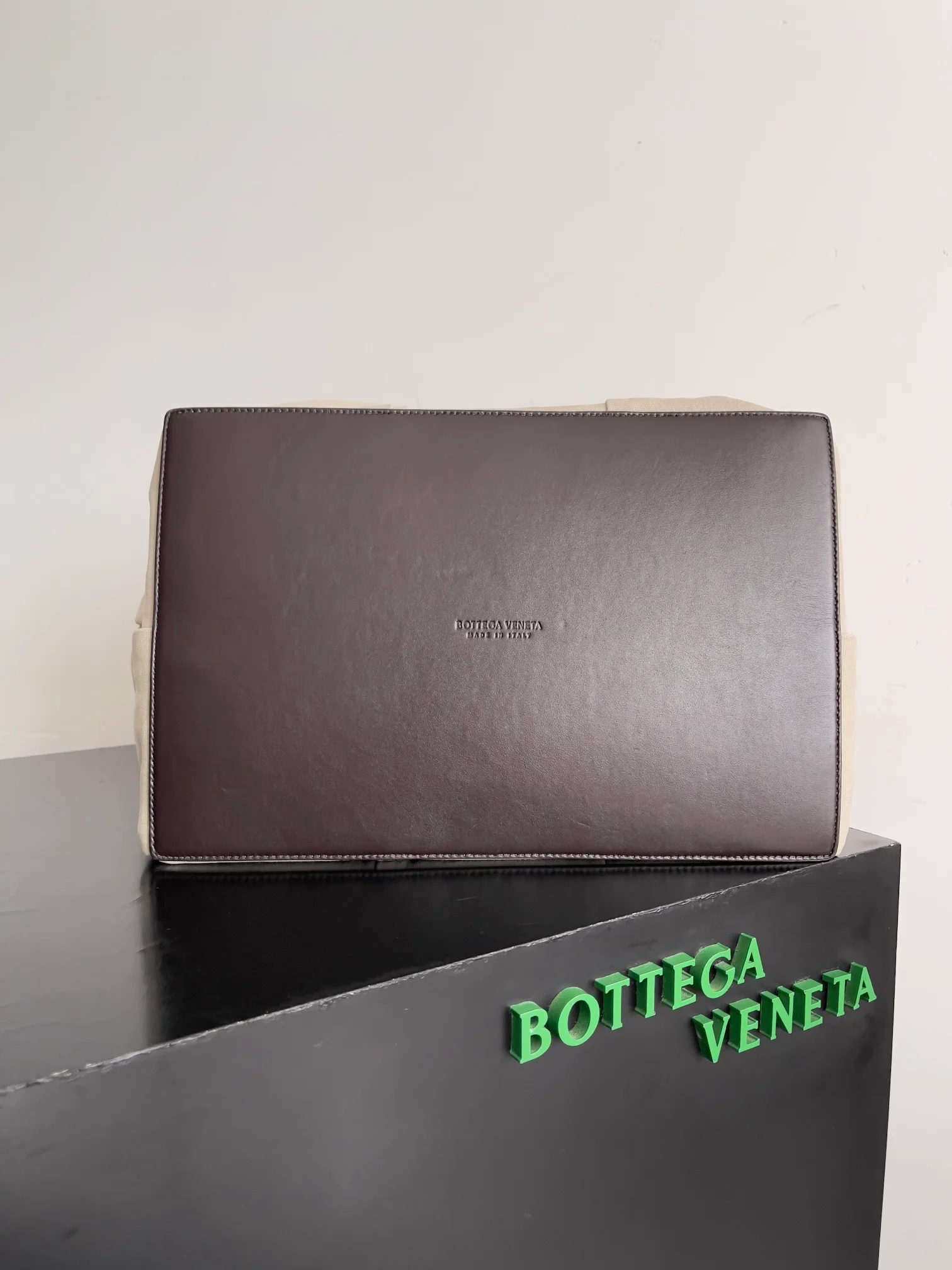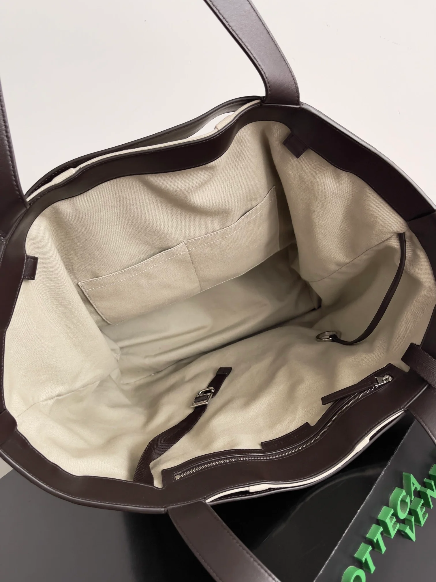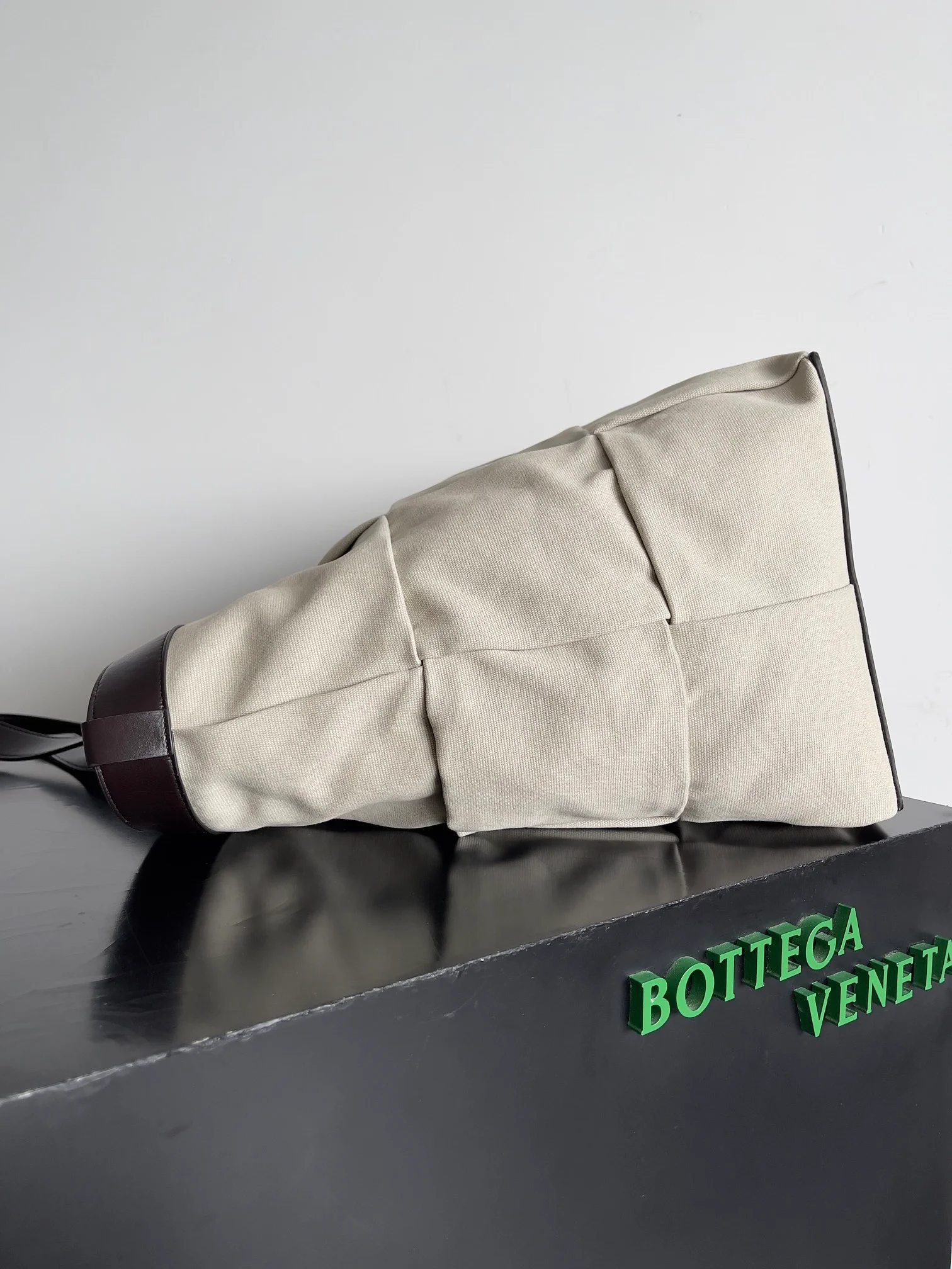 Bottega Veneta - This ultra-lightweight B*v tote canvas tote bag features a minimalist design with a black and brown leather handle paired with off-white imported canvas. It's perfect for a casual sweatshirt and jeans outfit.