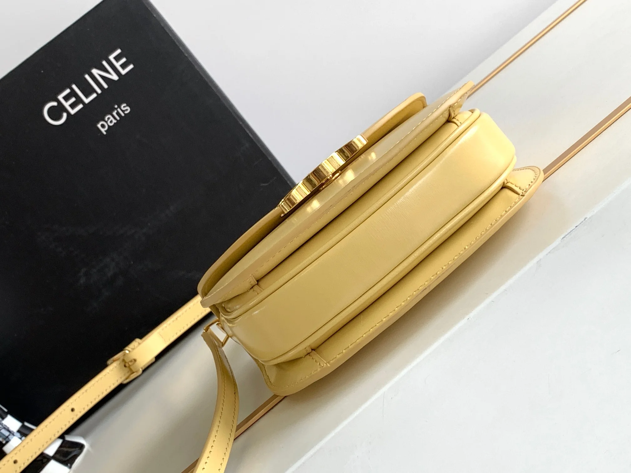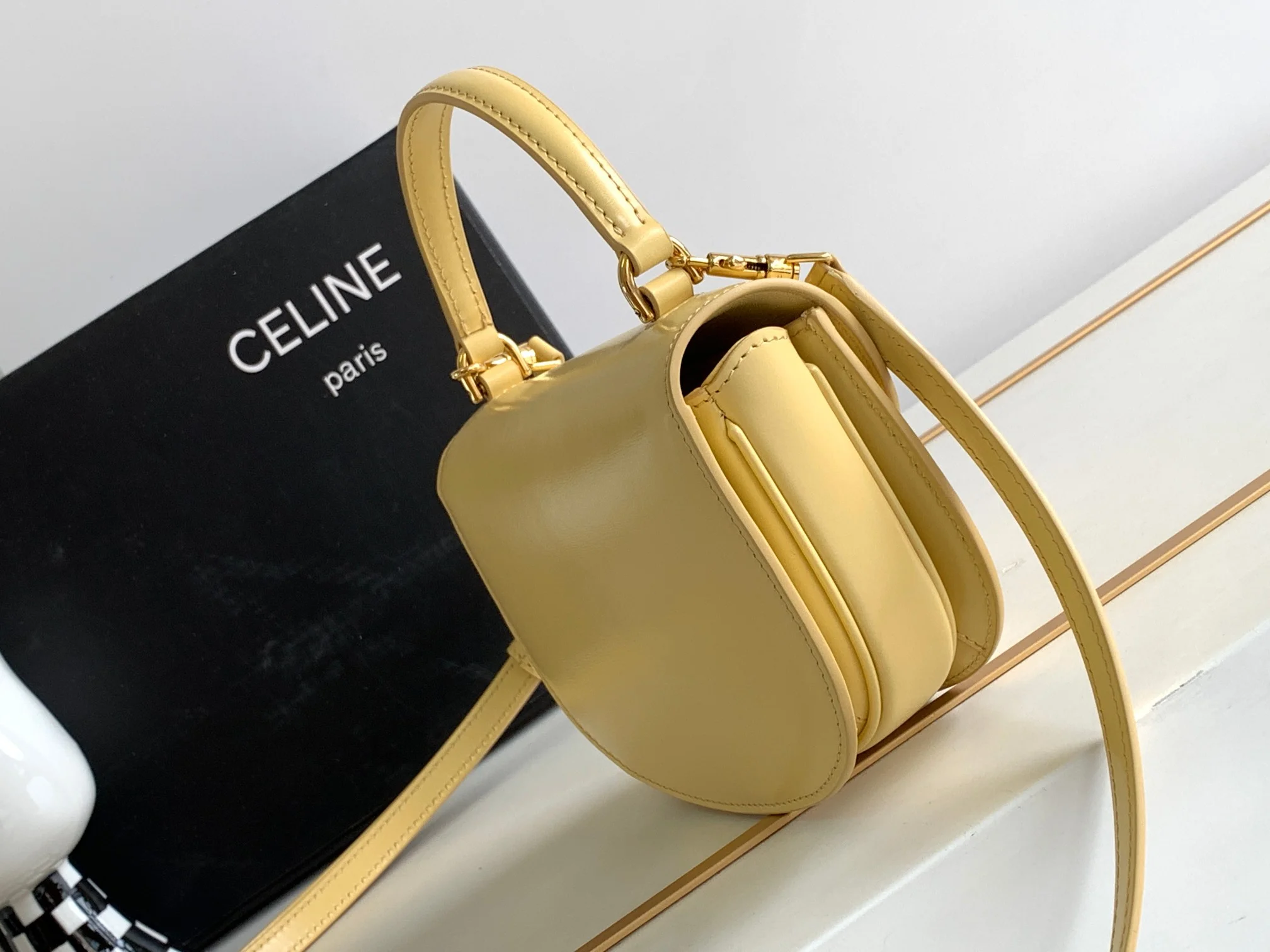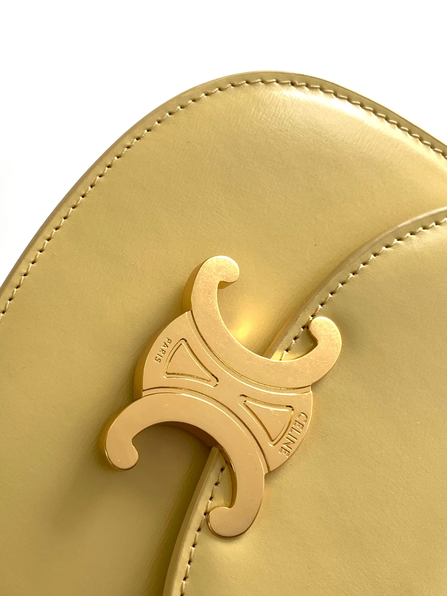 CELINE-23 New Arrival: Mini Besace Smooth Calfskin Triumphal Arch Bag, Lisa's Style 🎁 Triumphal Arch Yellow 💛 Mini Saddle Bag, Soft White Leather with Classic Triumphal Arch Lock~