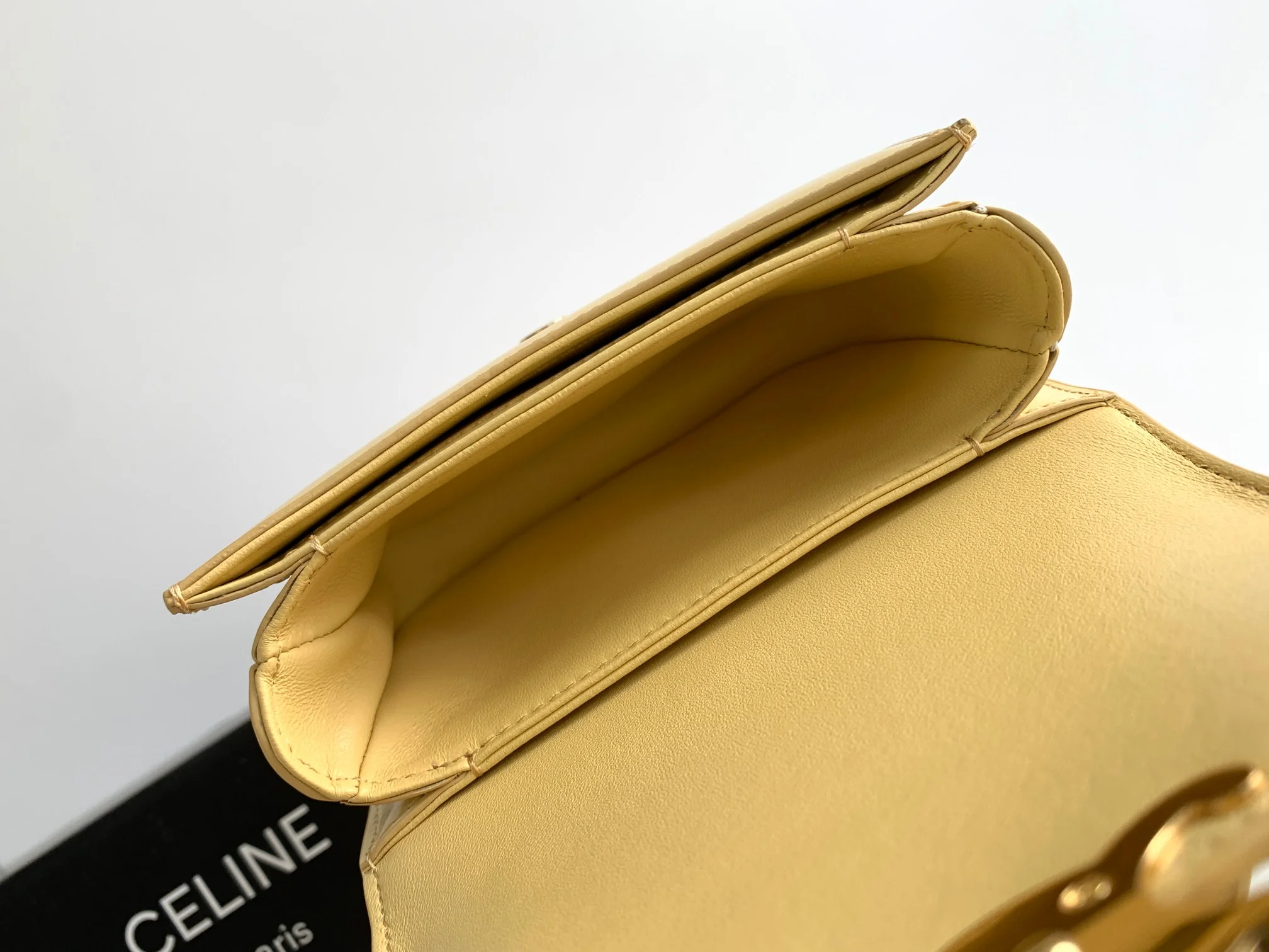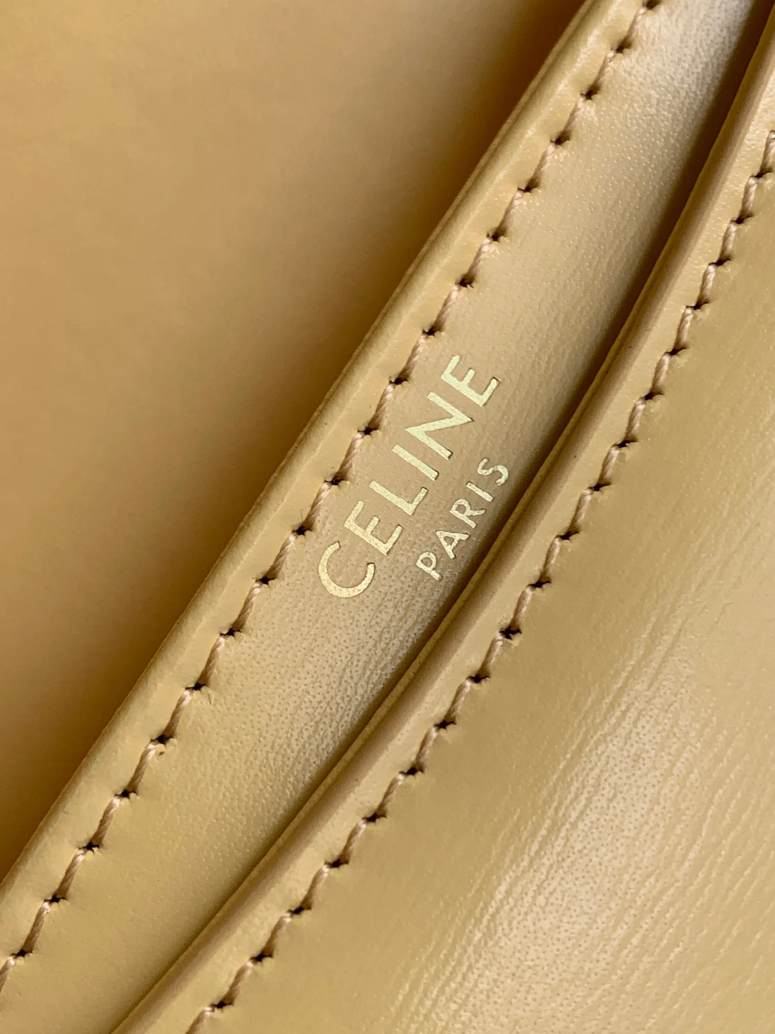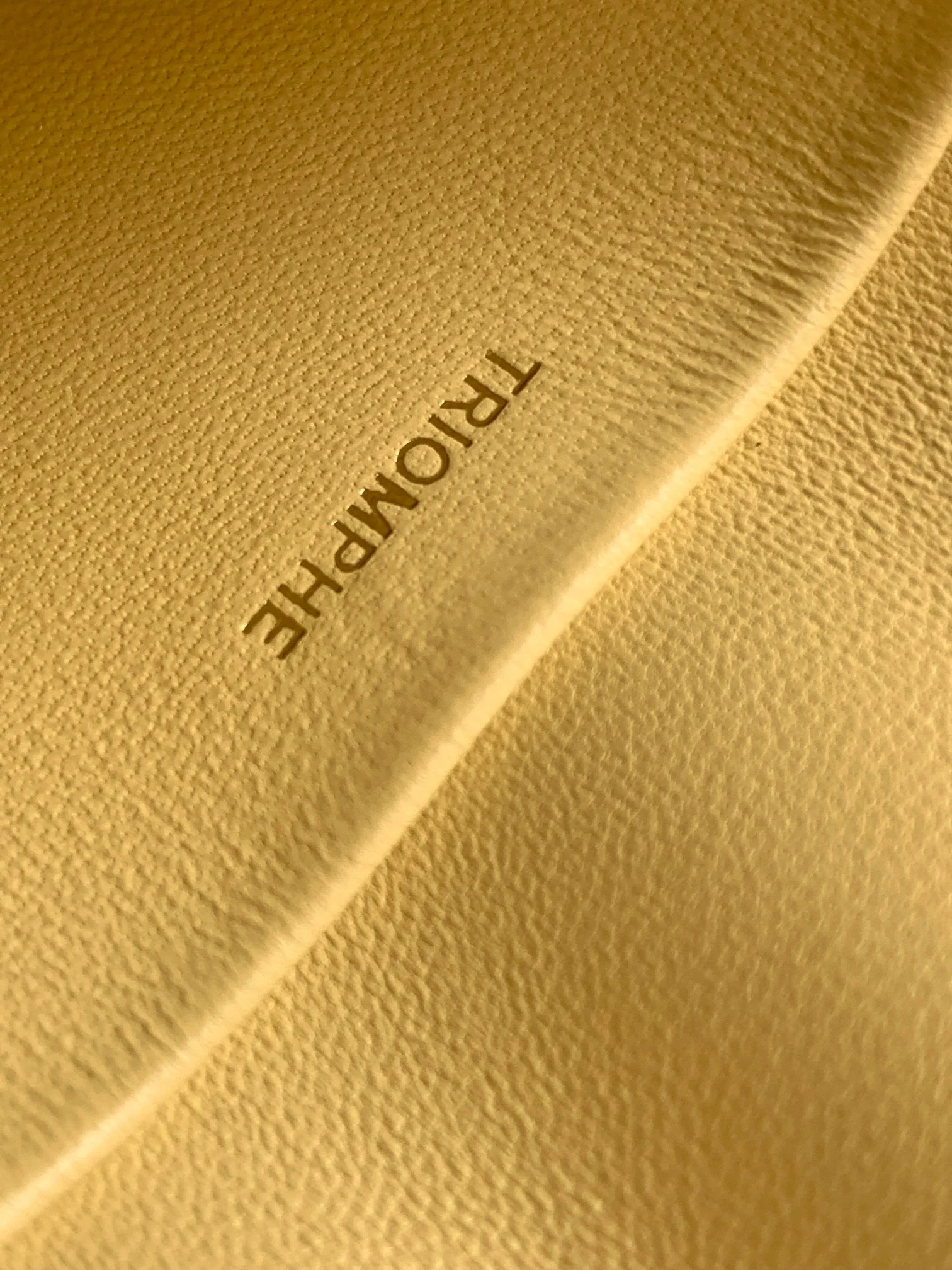 CELINE-23 New Arrival: Mini Besace Smooth Calfskin Triumphal Arch Bag, Lisa's Style 🎁 Triumphal Arch Yellow 💛 Mini Saddle Bag, Soft White Leather with Classic Triumphal Arch Lock~