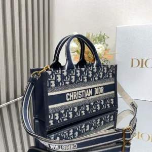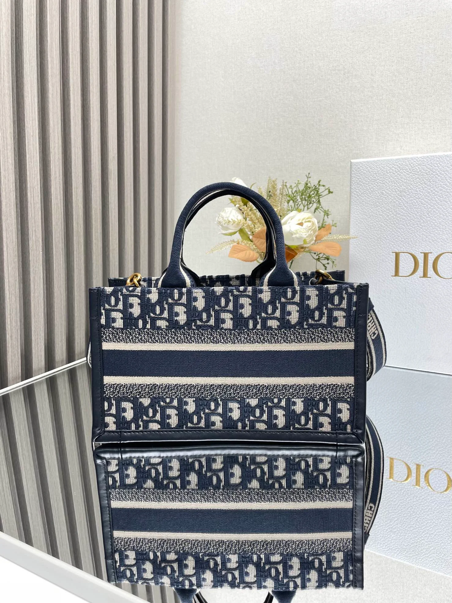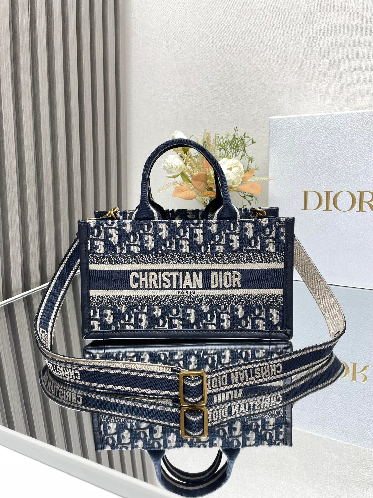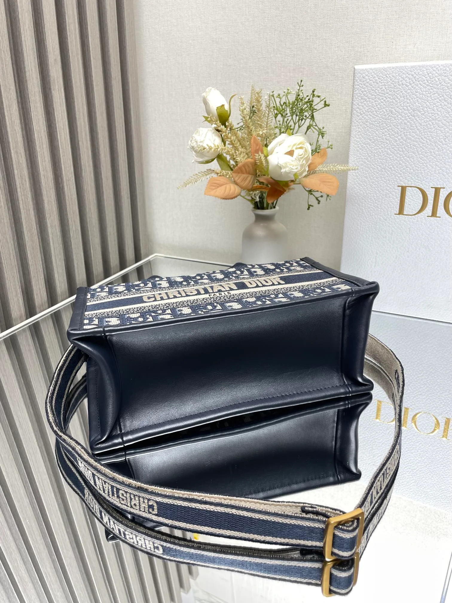 High version Dior❤ Mini BOOK TOTE handbag (with shoulder strap) "Fabric and leather" Size: 21.5 x 13 x 7.5 cm (L x H x W