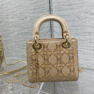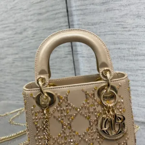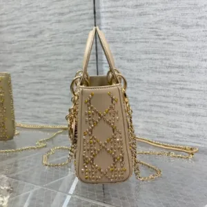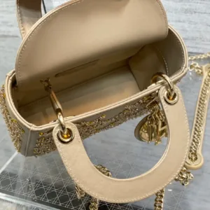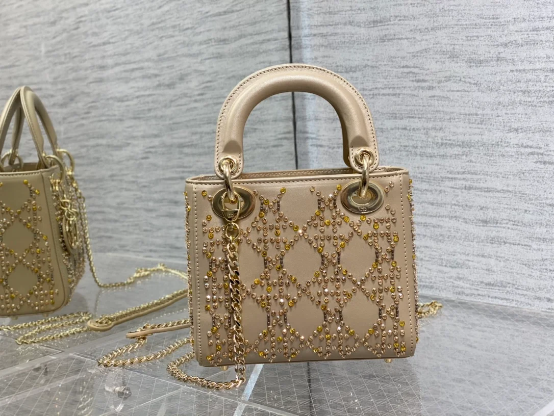 Dior - Lady limited edition gold bead embroidery model, the most elegant and noble Princess Diana bag 💋, size: 17cm