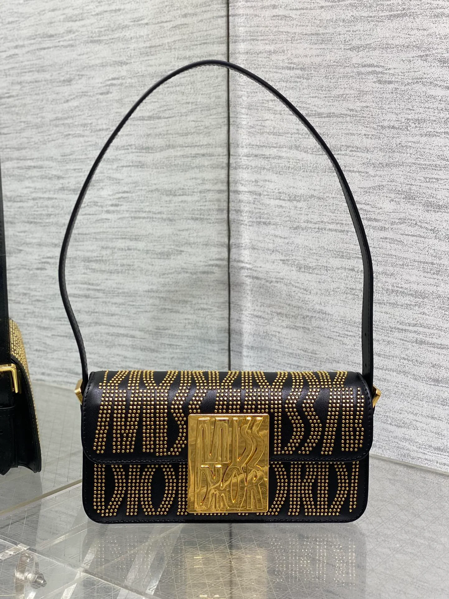 [Top original] Dior Miss flap handbag, made of black cowhide leather with unique embossed logo ~ Size: 22*11*6cm