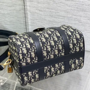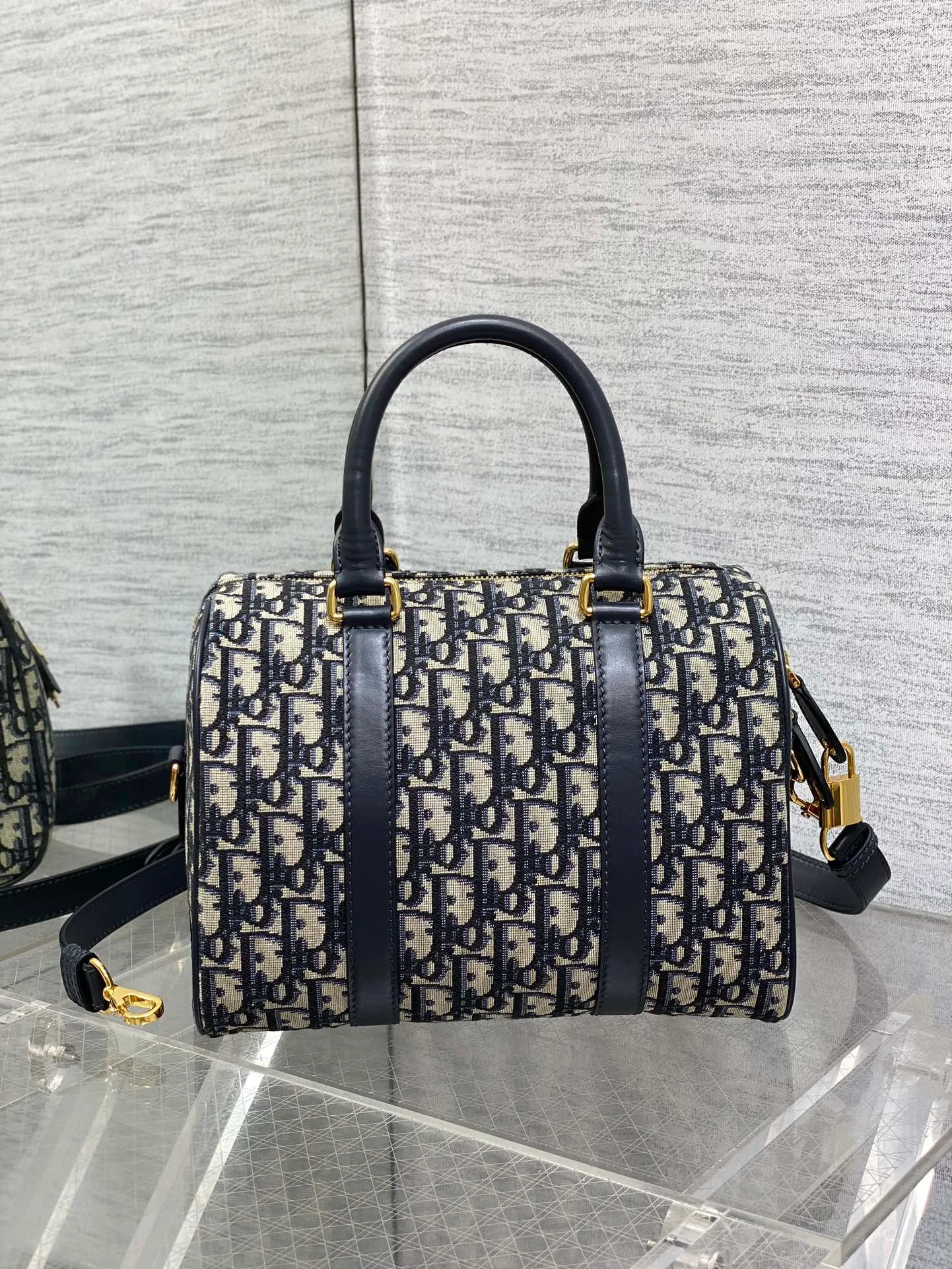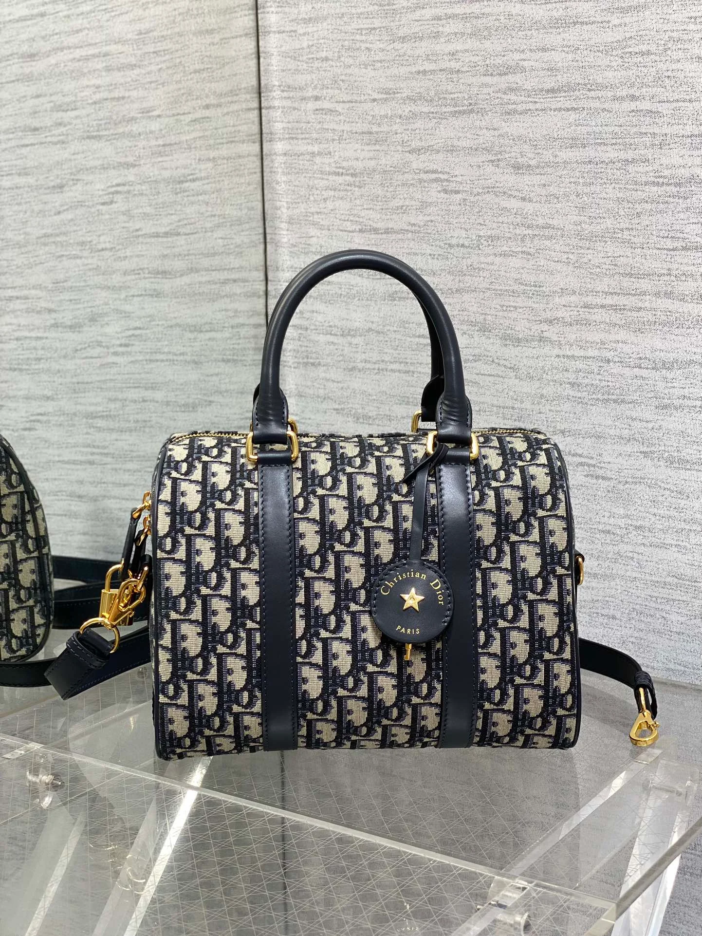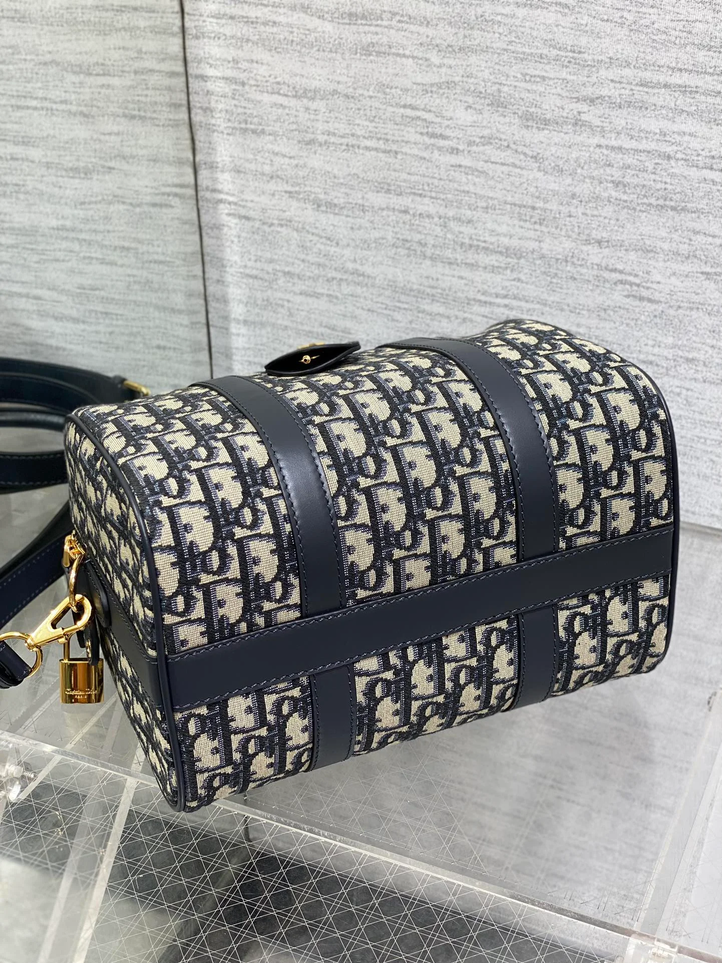 Dior Groove 25 Boston handbag, made of blue Oblique printed fabric, is irresistibly cute, with a simple shape that is retro and high-end.