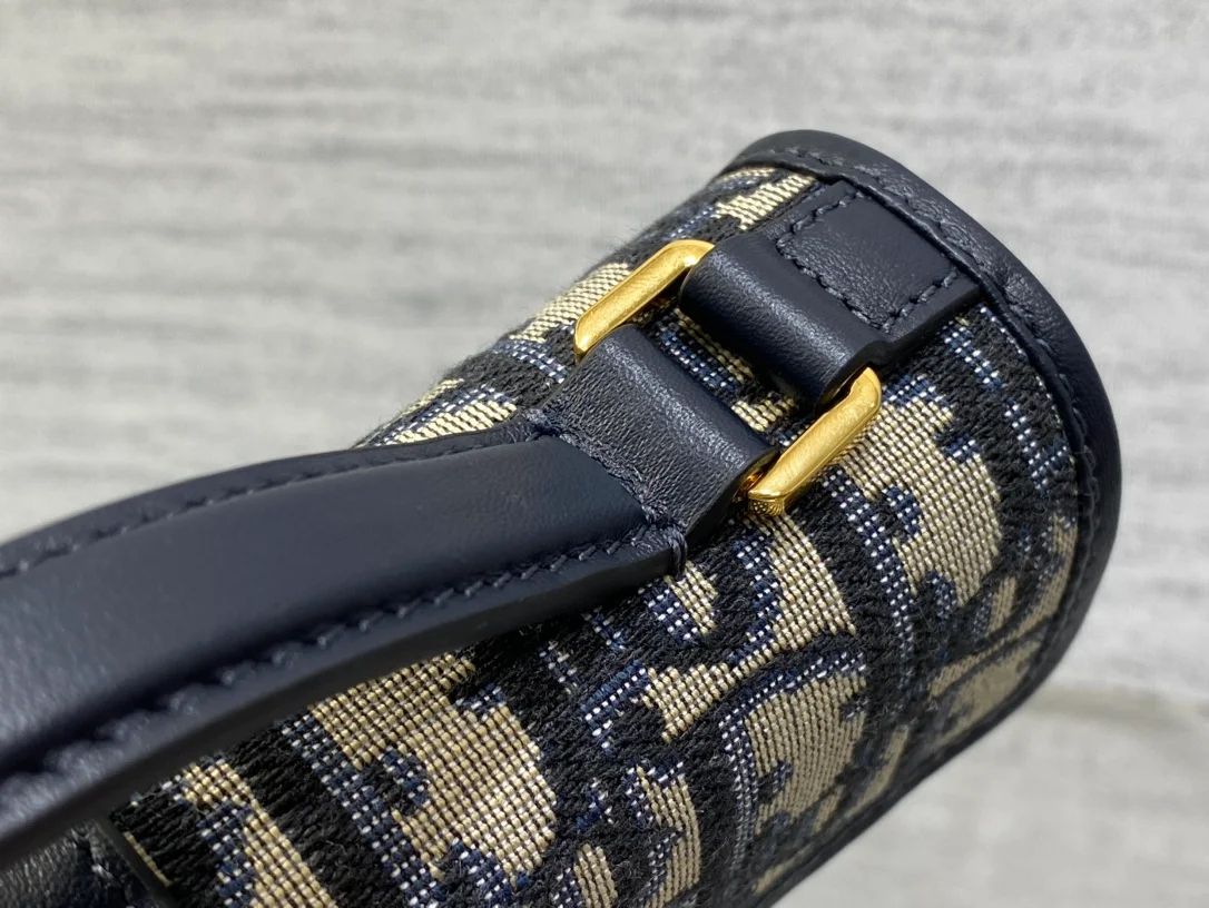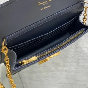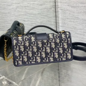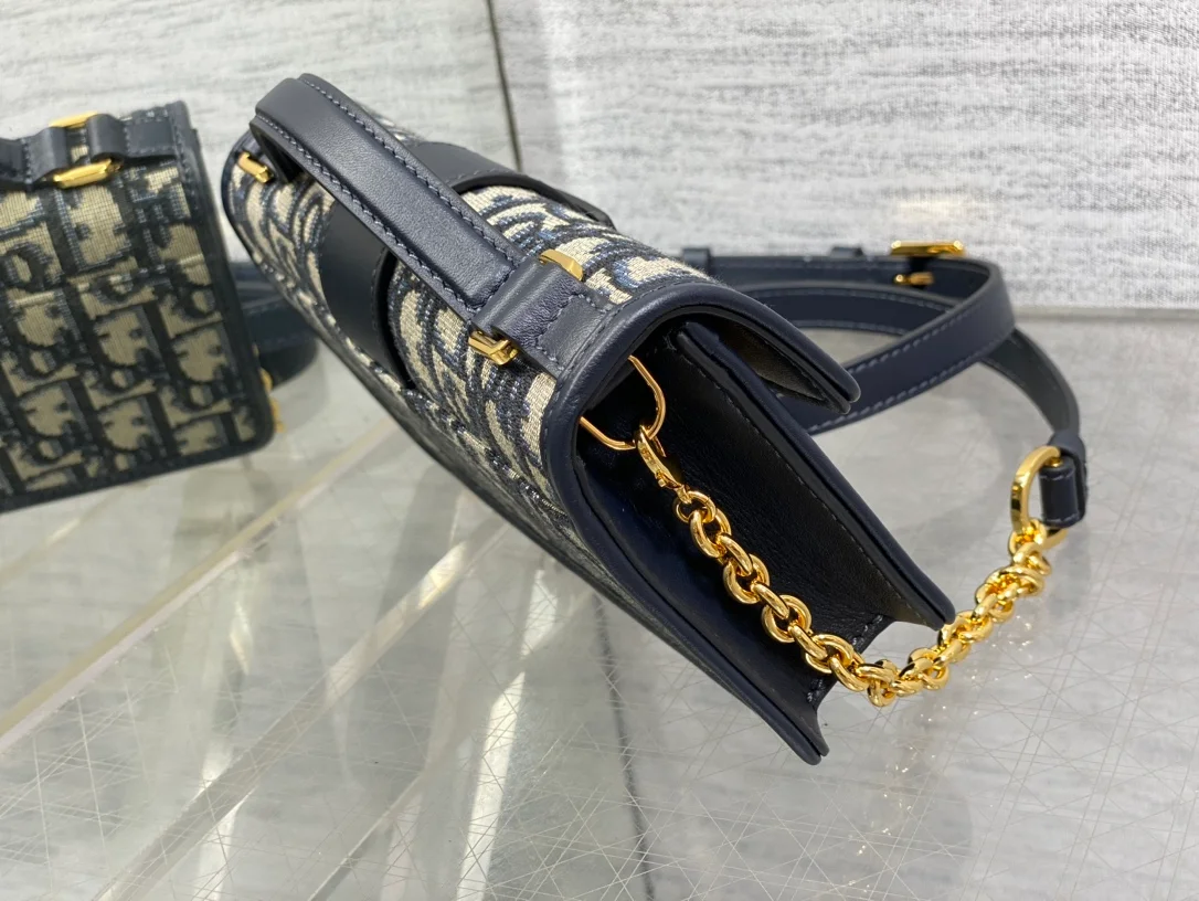 Dior Miss Montaigne mini chain handbag, made of blue Oblique printed fabric, with iconic gold logo letter buckle, retro and fashionable,