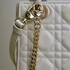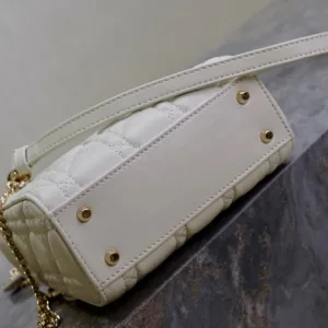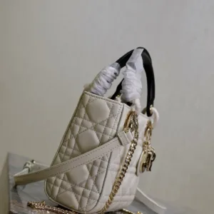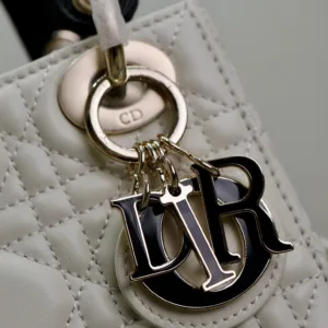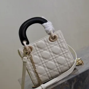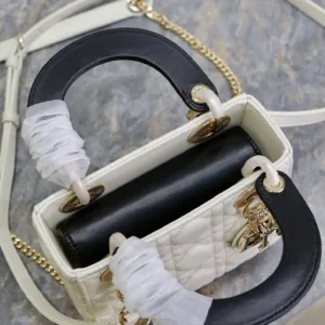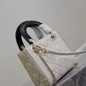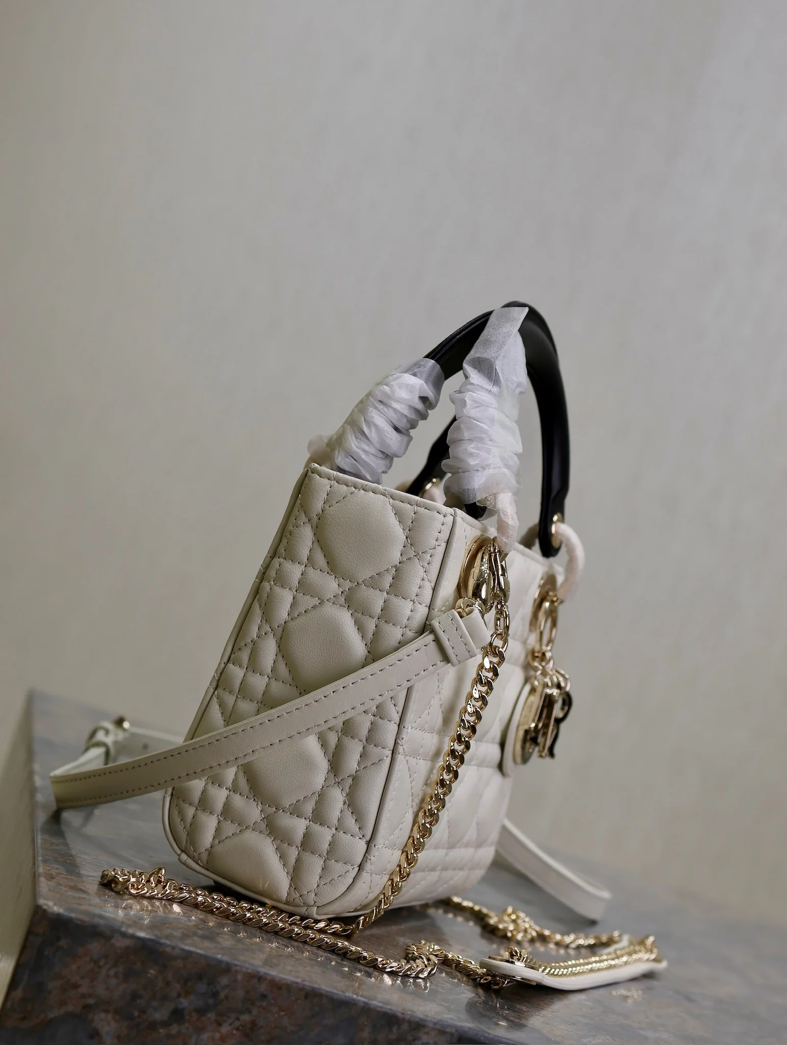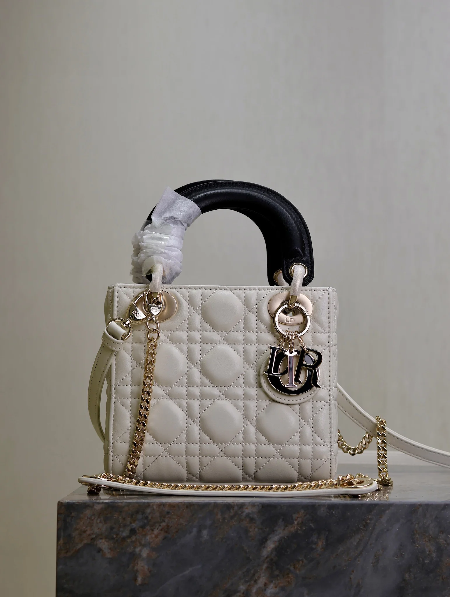 Authentic Lady Dior 🤍🖤 "White and Black" / Three-grid sheepskin double straps / Size: 17 x 7.5 x 14 cm