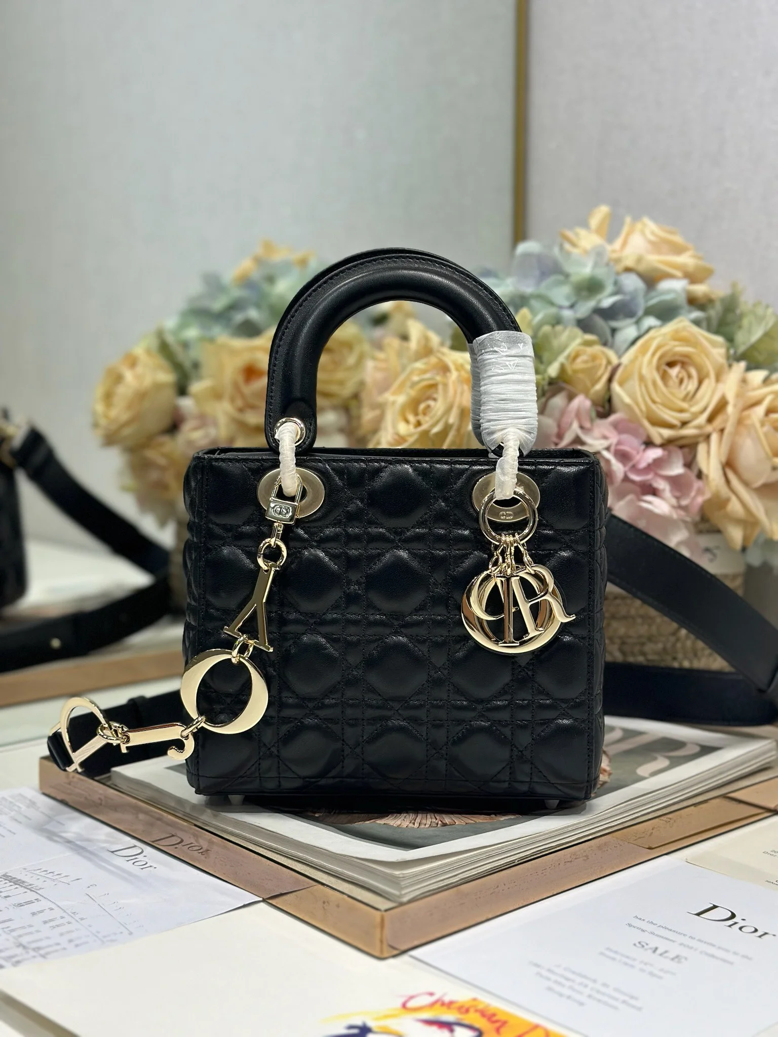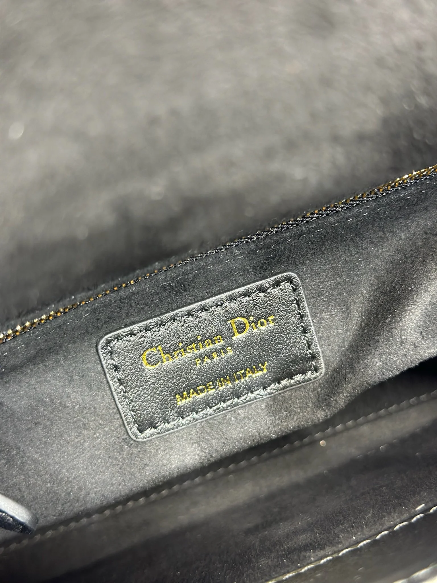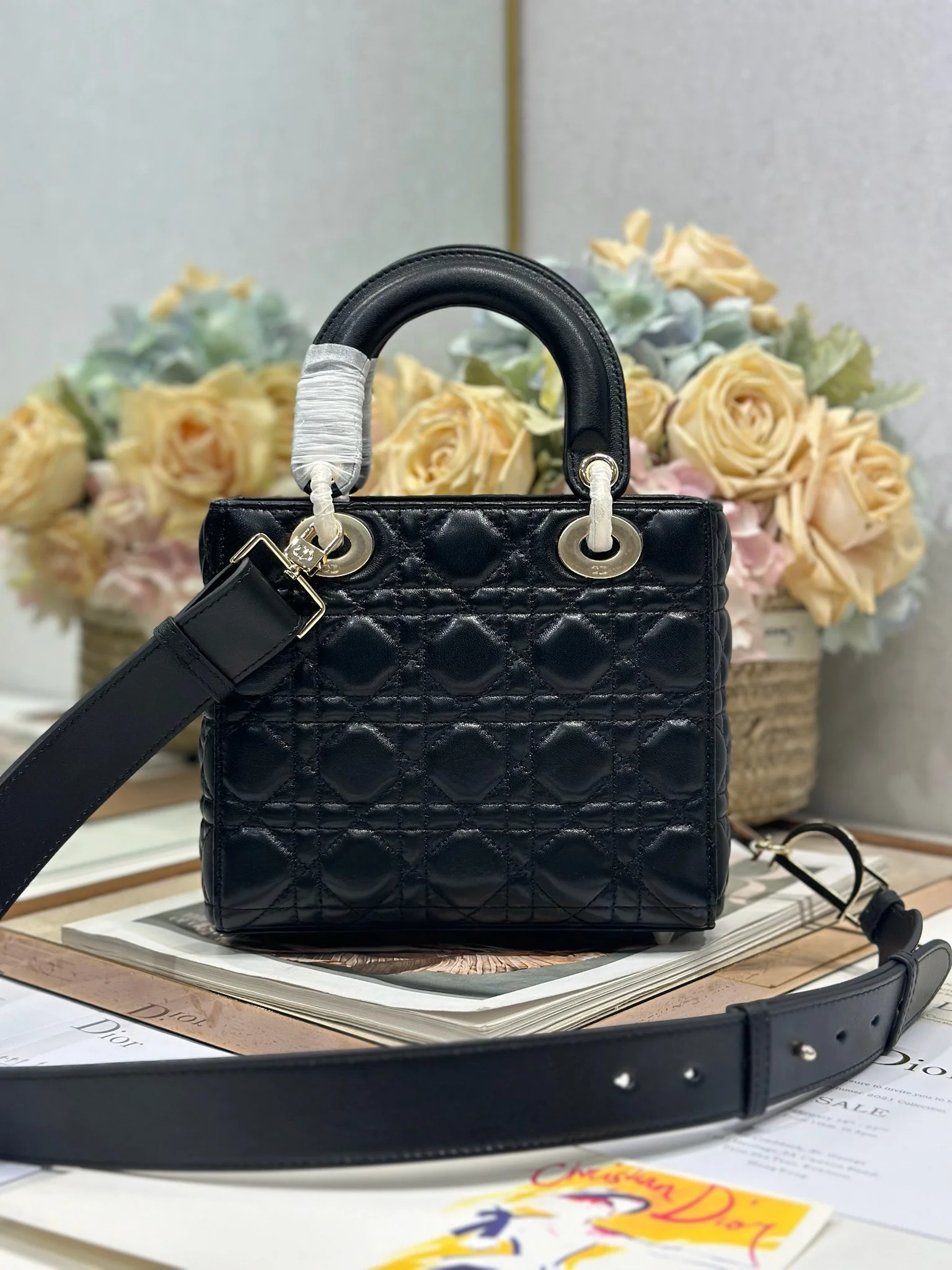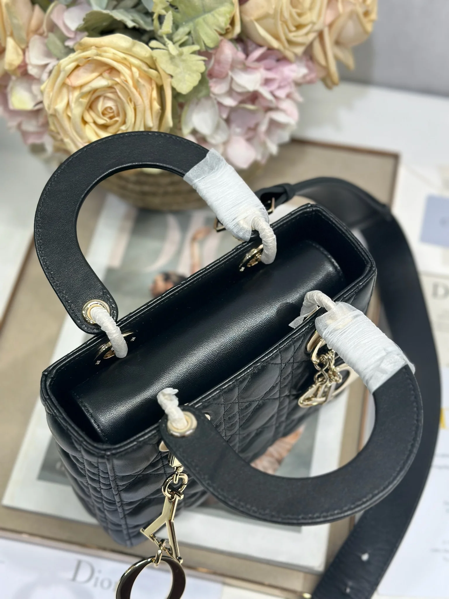 【Lady Dior】💯 New D J O Y "Four-grid Black Sheep" / Four-grid sheepskin adjustable shoulder strap / Size: 20×16.5×8 cm
