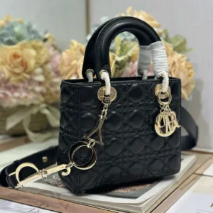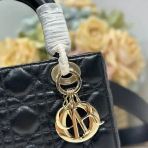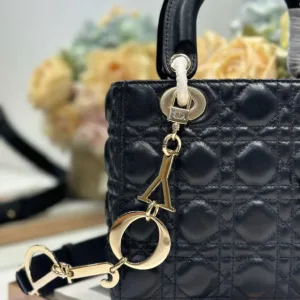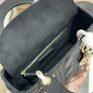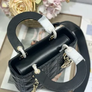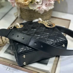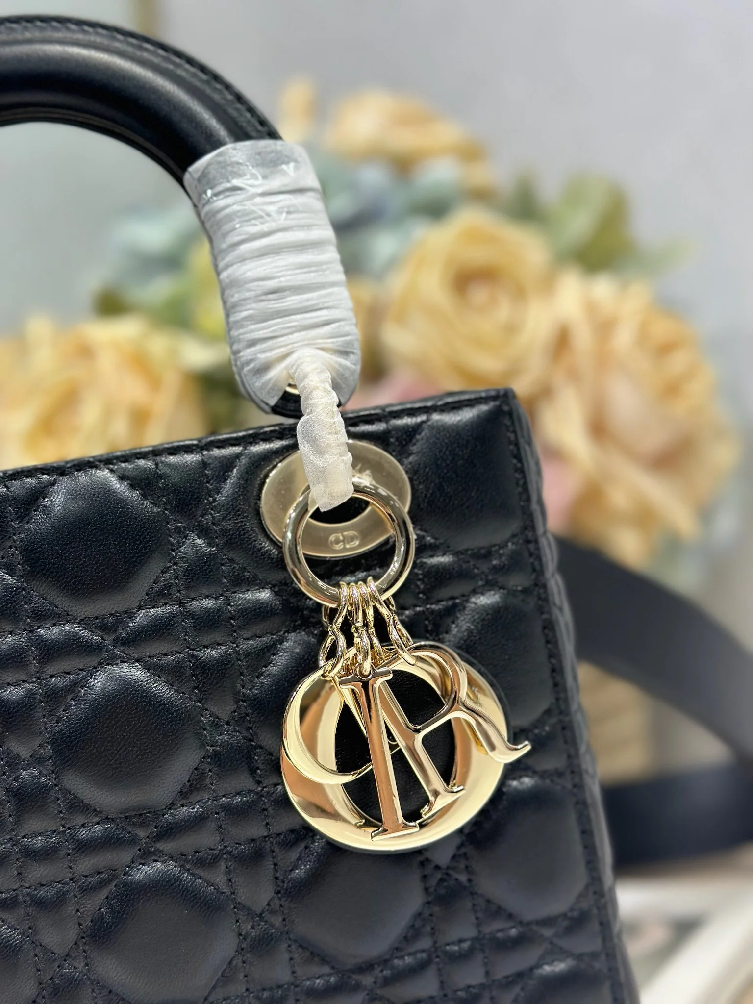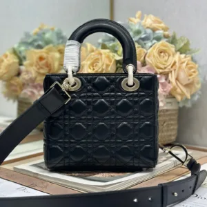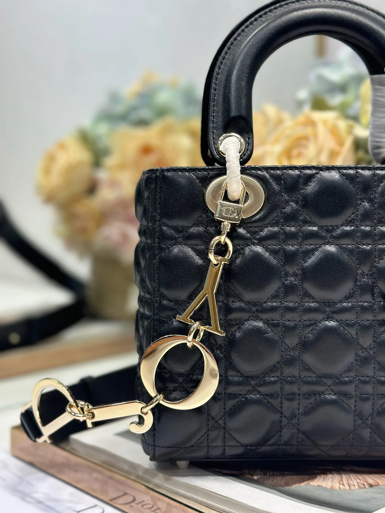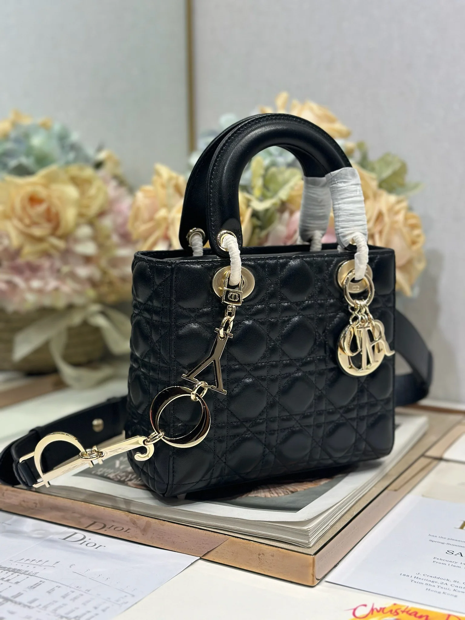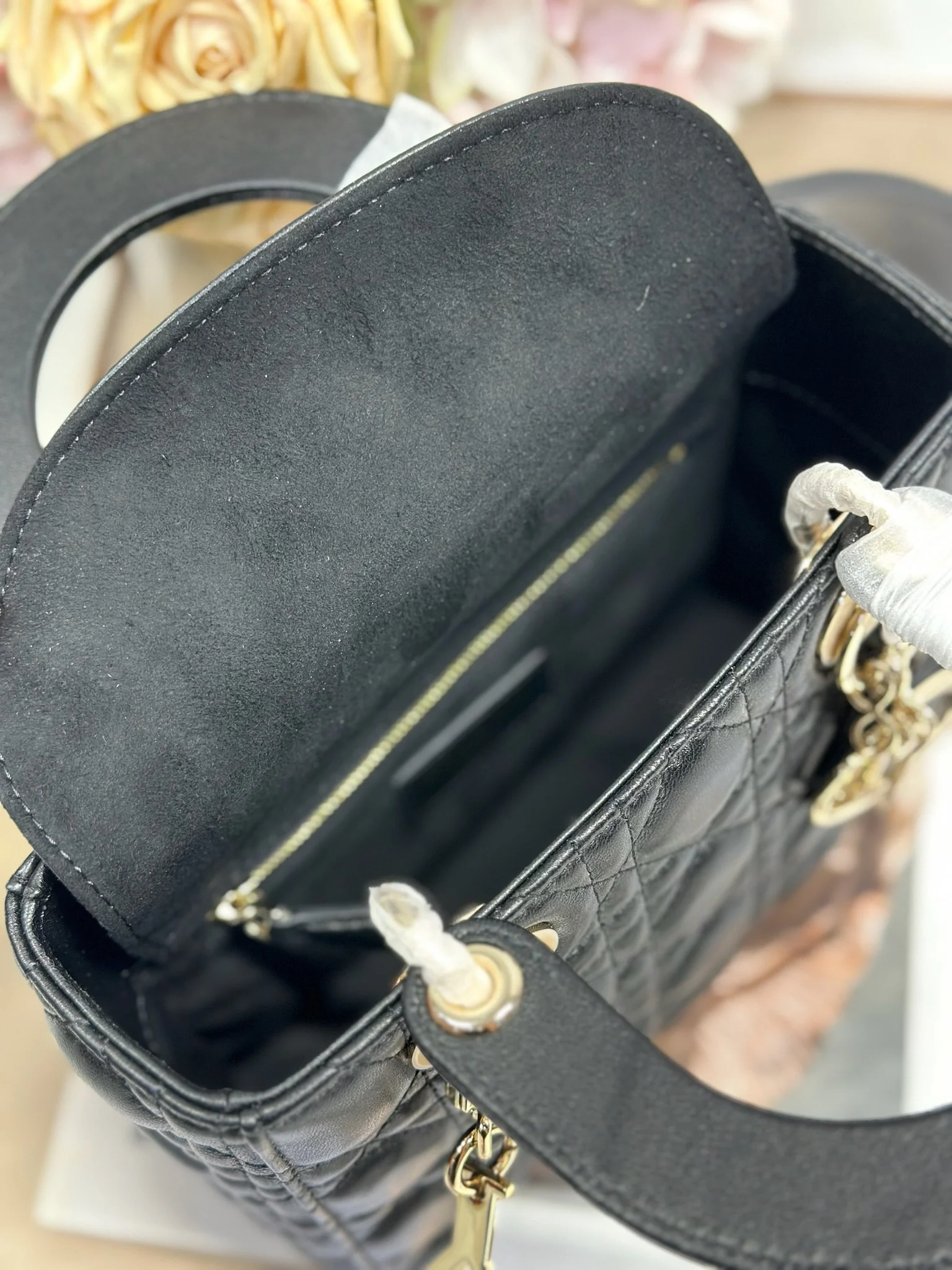 【Lady Dior】💯 New D J O Y "Four-grid Black Sheep" / Four-grid sheepskin adjustable shoulder strap / Size: 20×16.5×8 cm