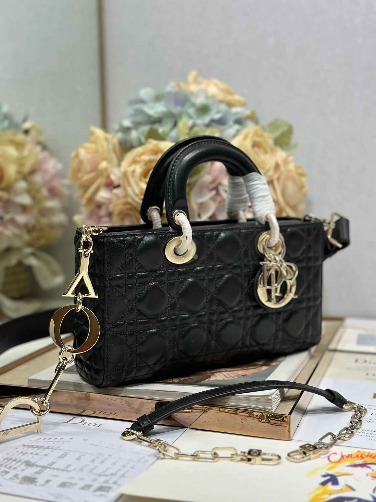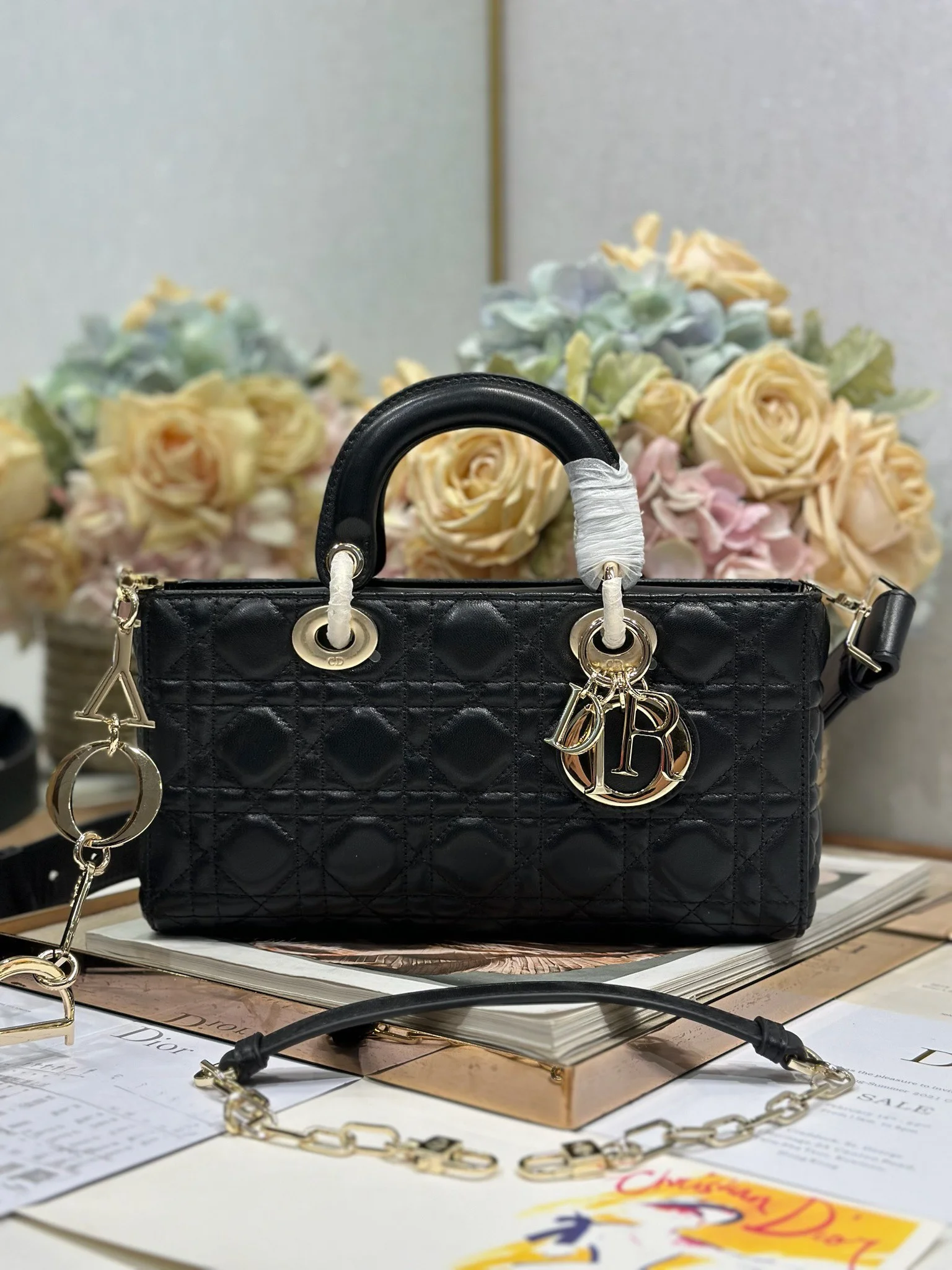Dior - [Horizontal Lady Diana Bag] 💯 New D J O Y "Black Sheep Medium" brand new Lady D-Joy bag. Many people must have been attracted by this narrow Lady Diana bag.