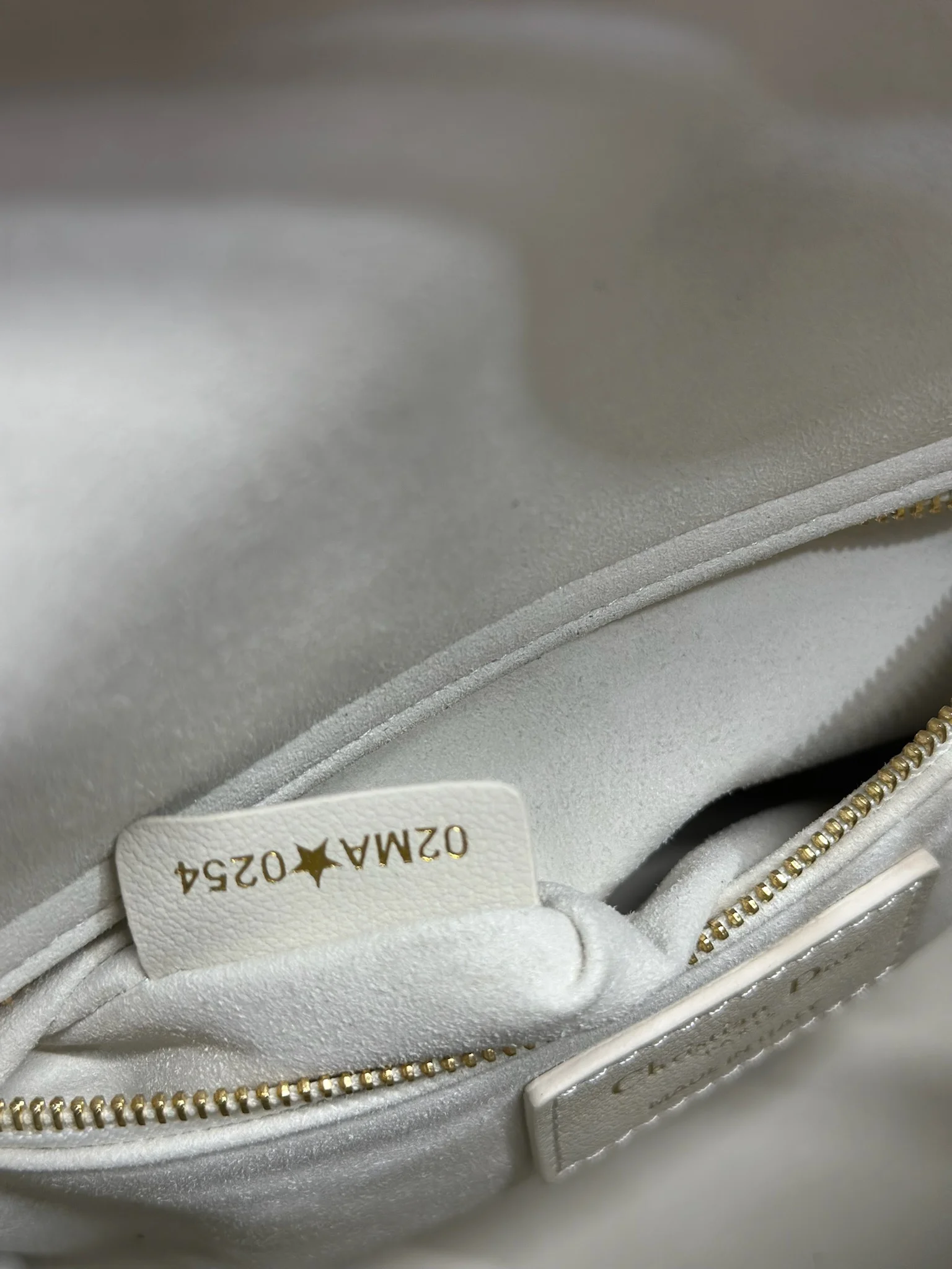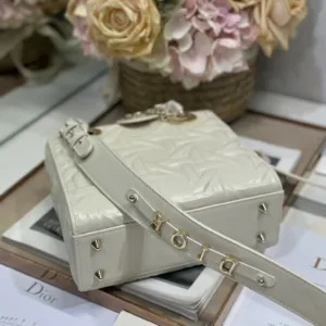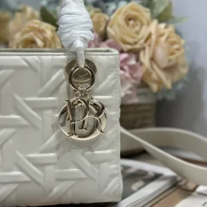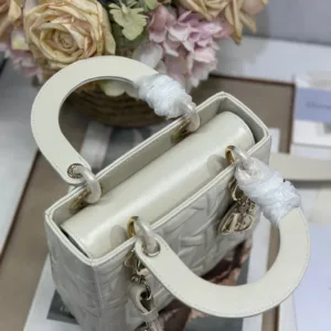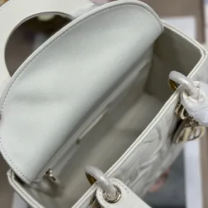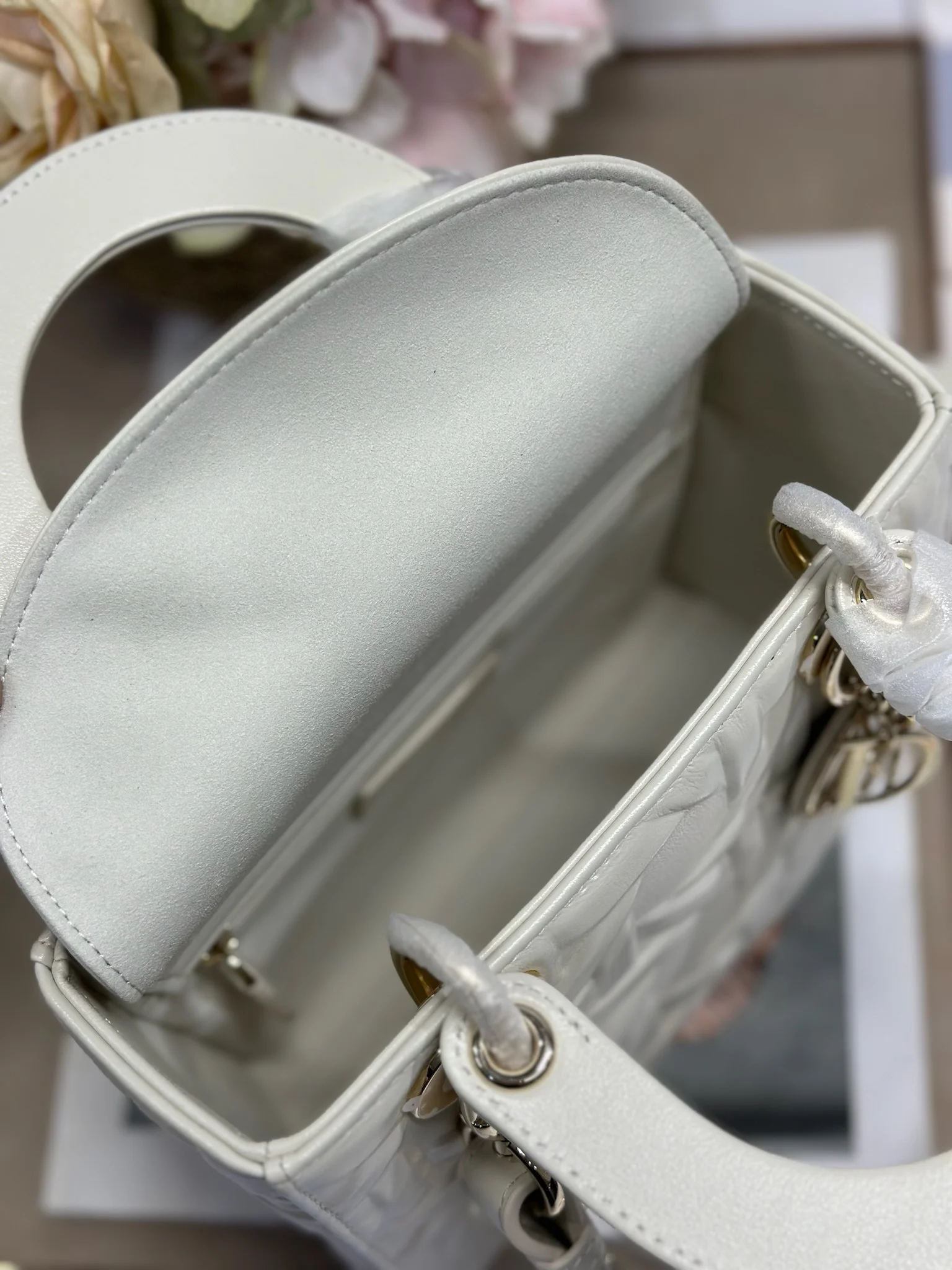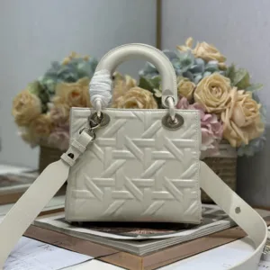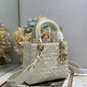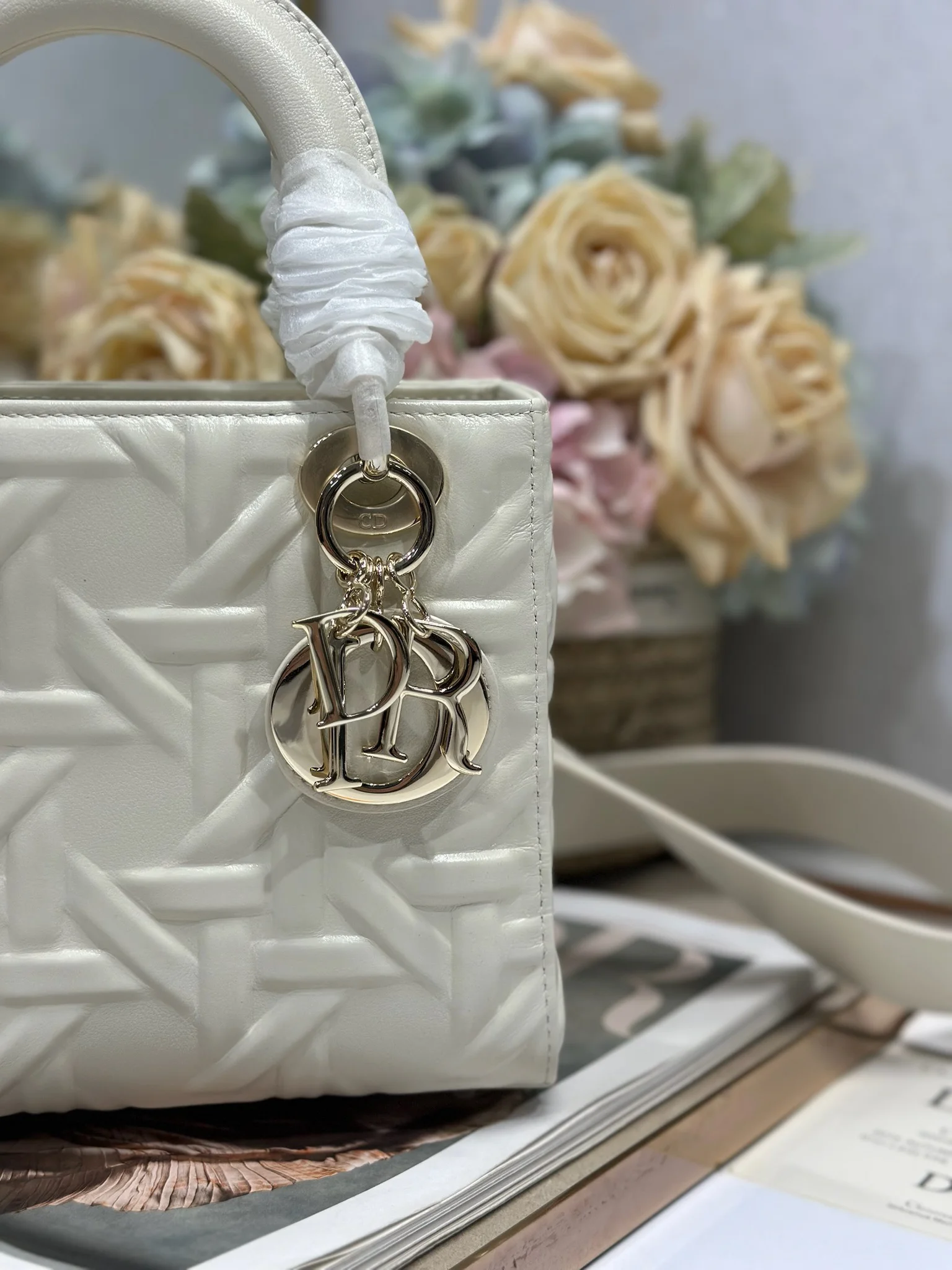 Four-grid Lady Dior handbag "White Embossed Diamond" Size: 20 × 16.5 × 8 cm