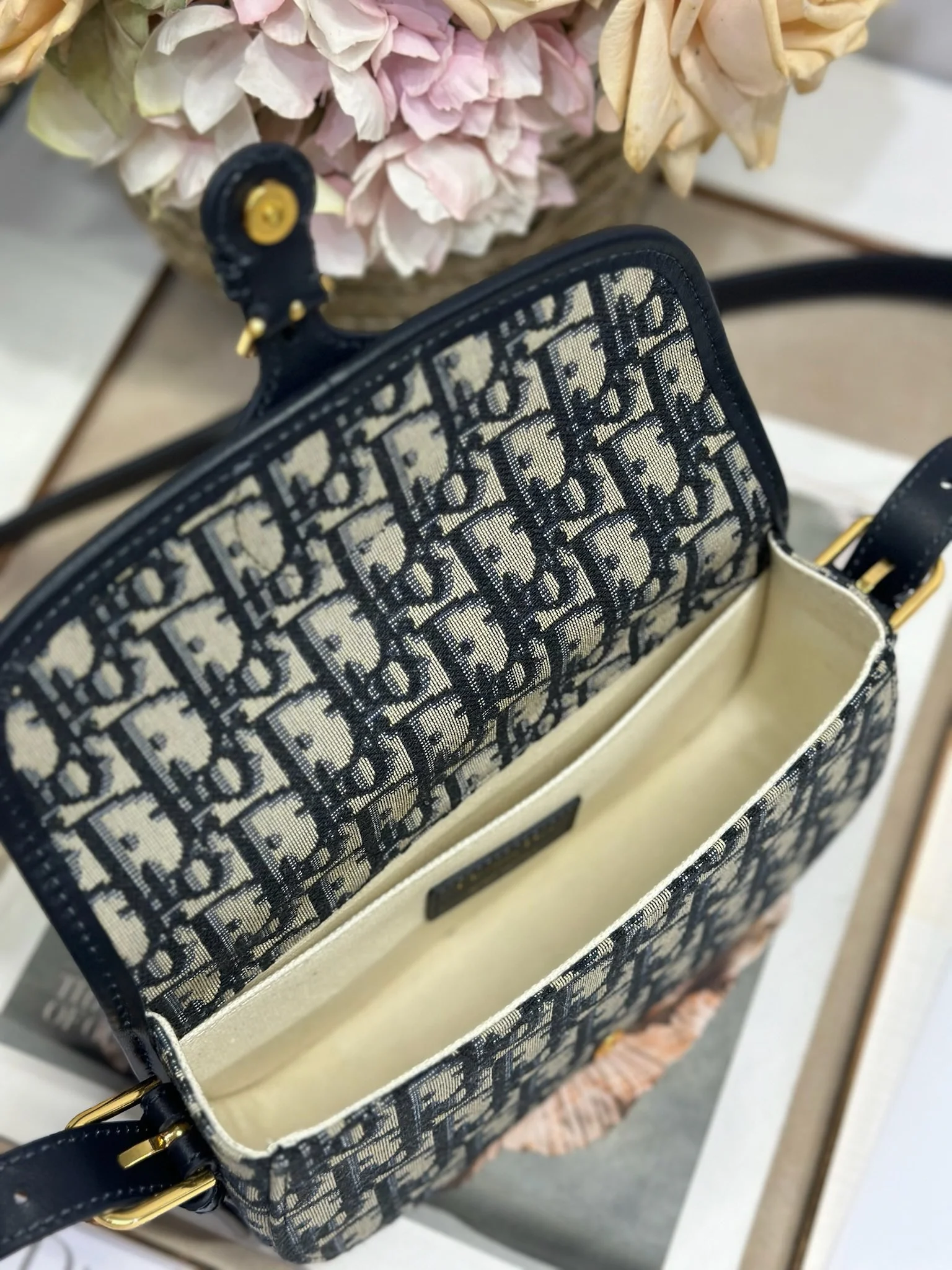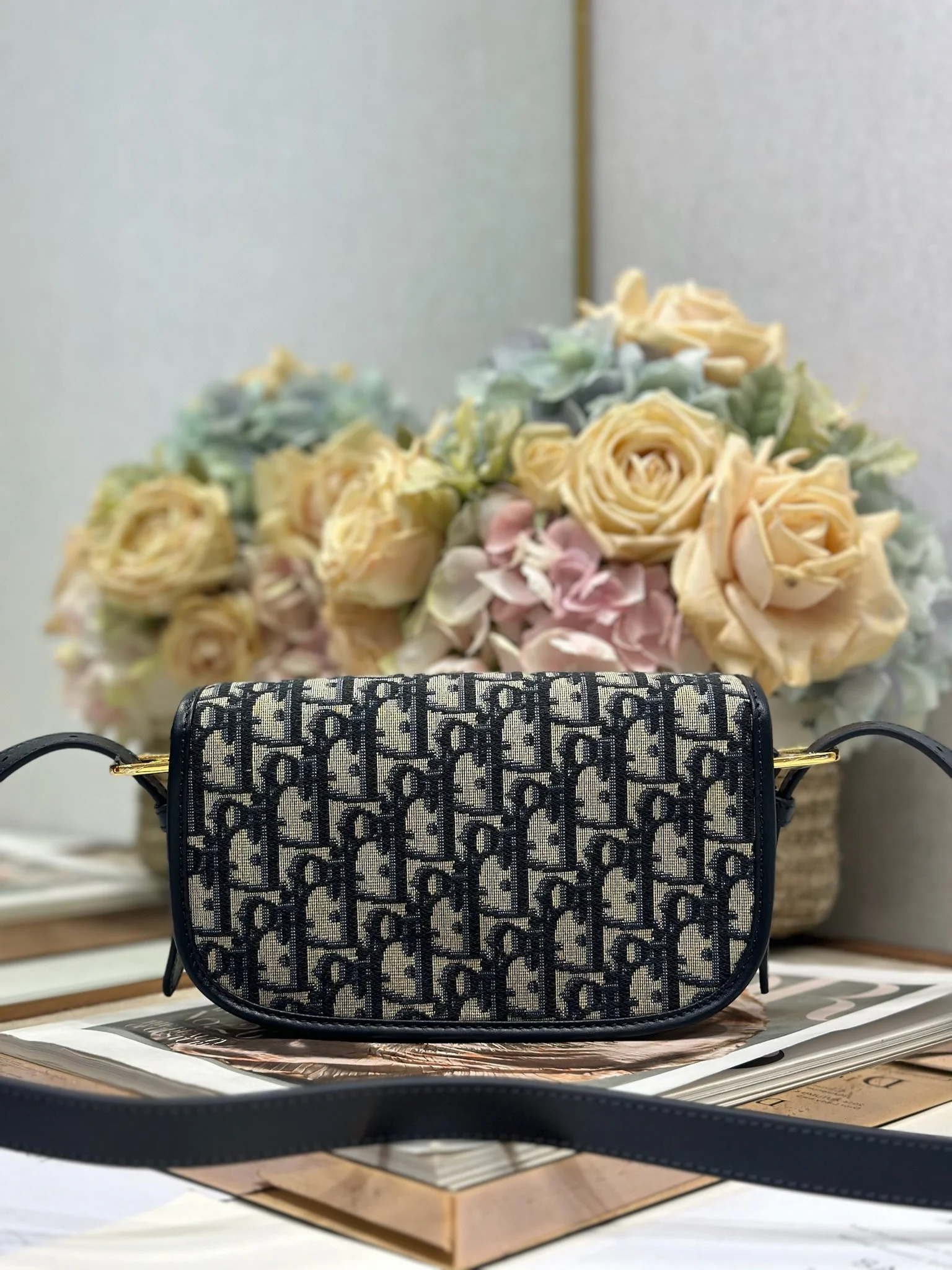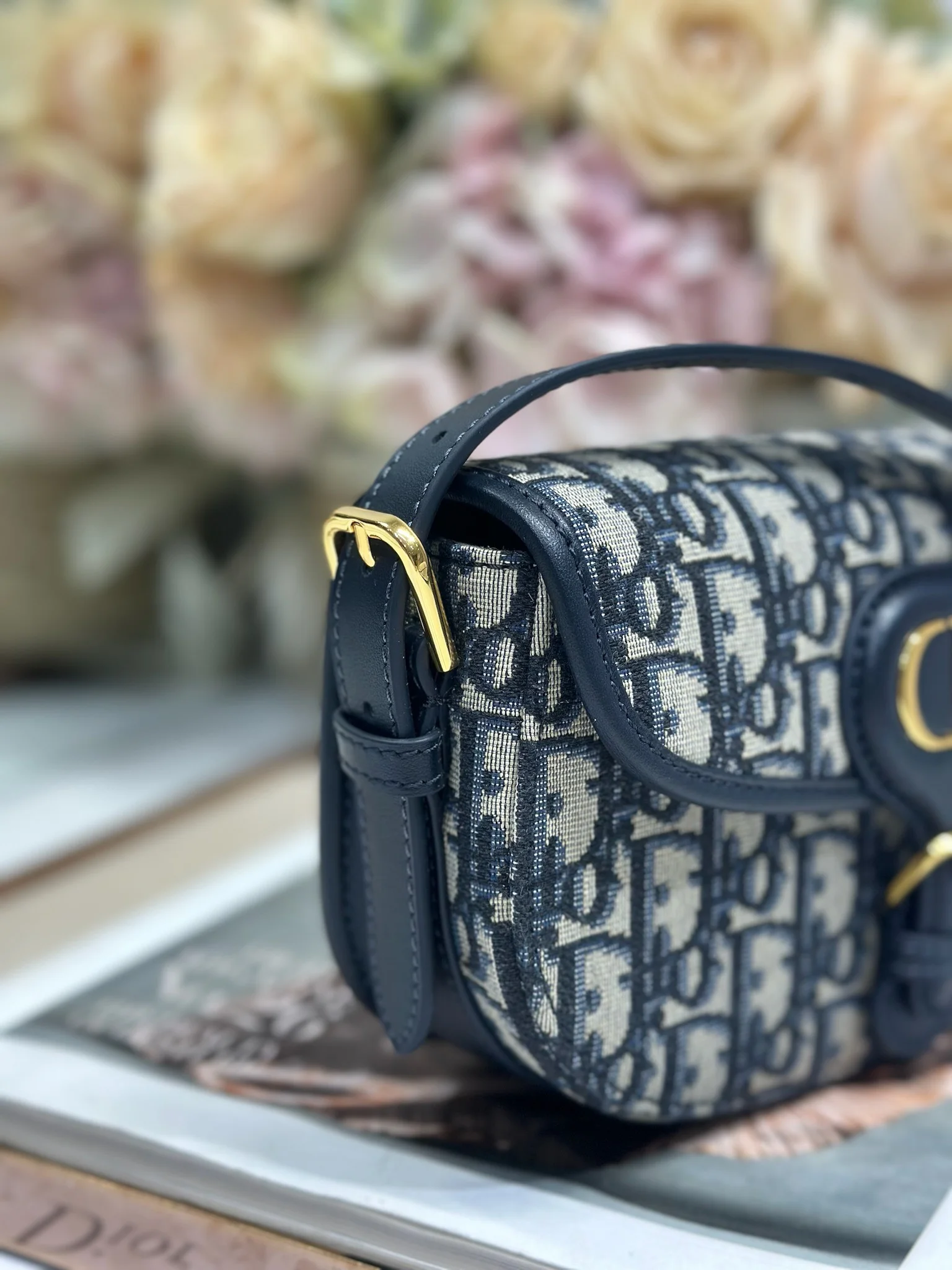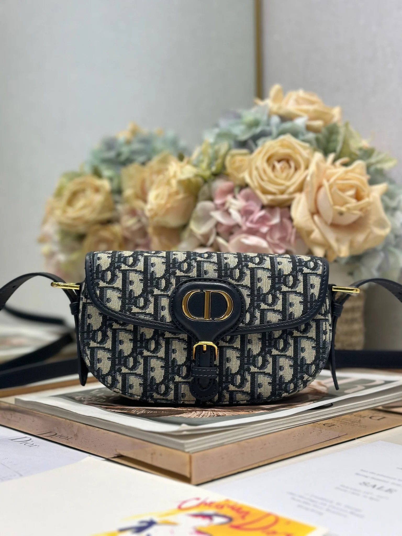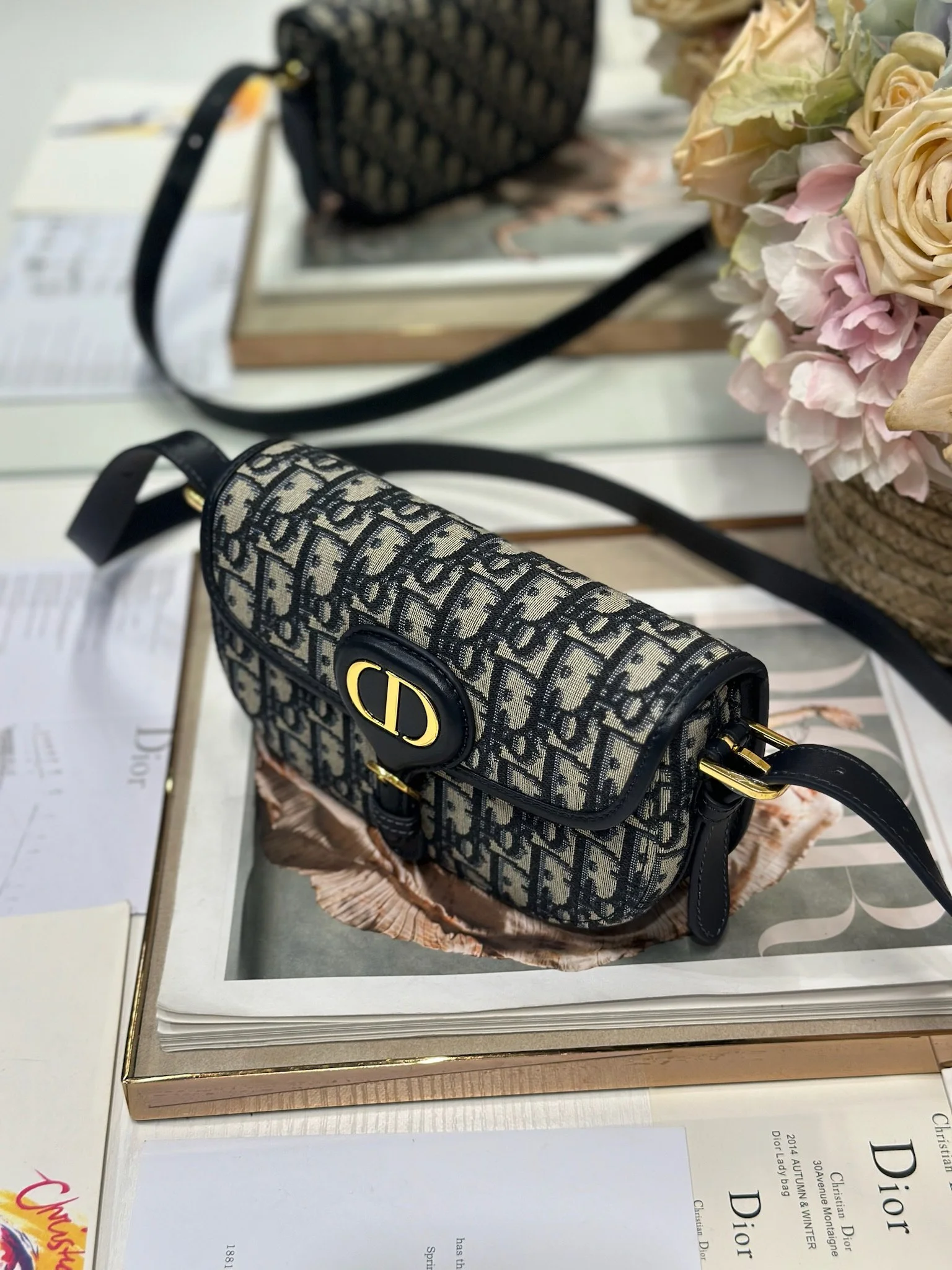 Dior - New Dior Bobby ✧Small Handbag✧ "Blue D Fabric with Leather" Dimensions: 21 x 12 x 5.1 cm (L x H x W)