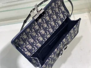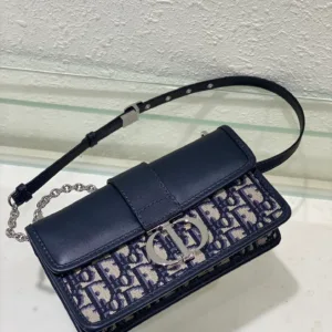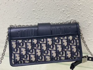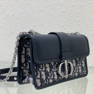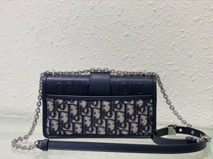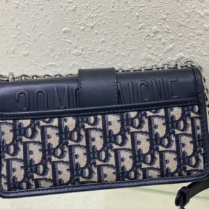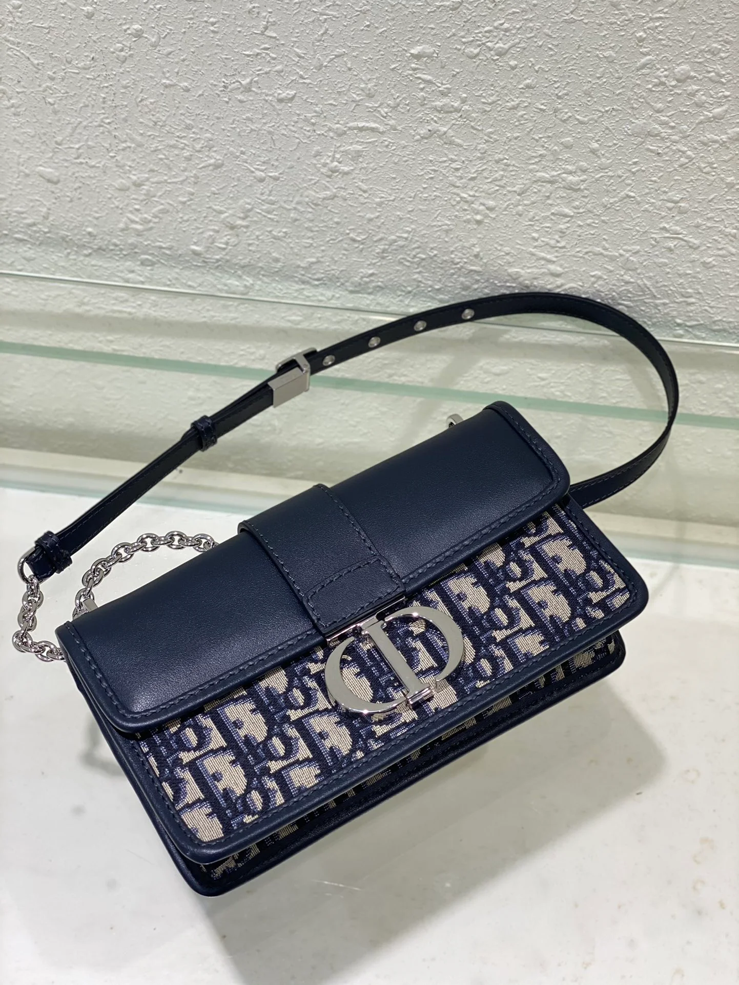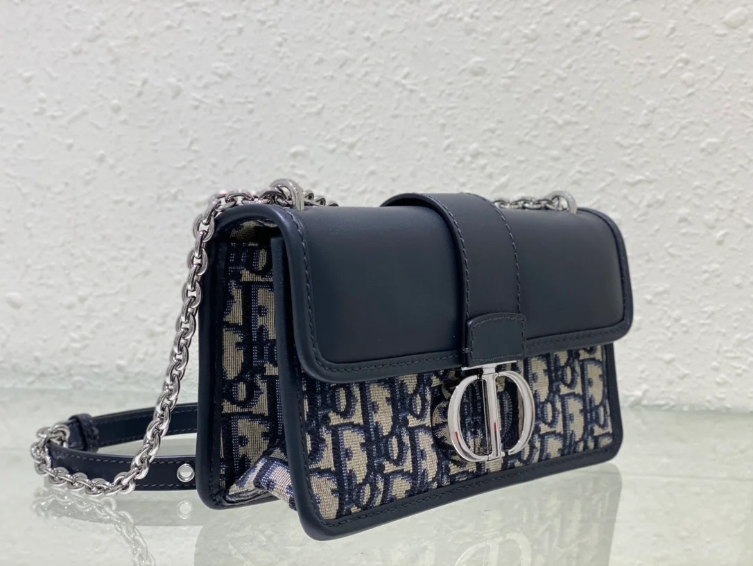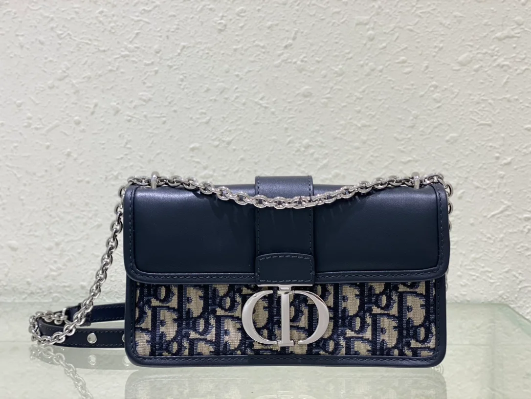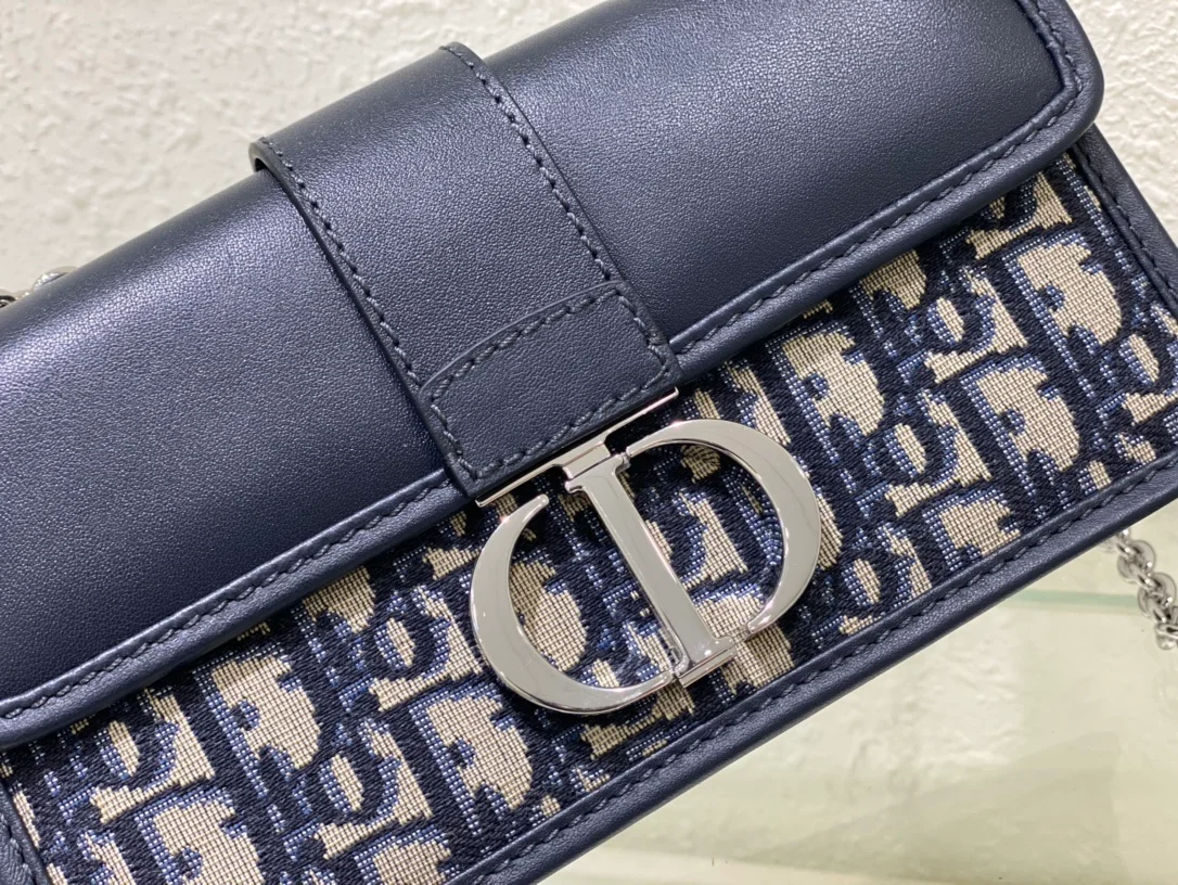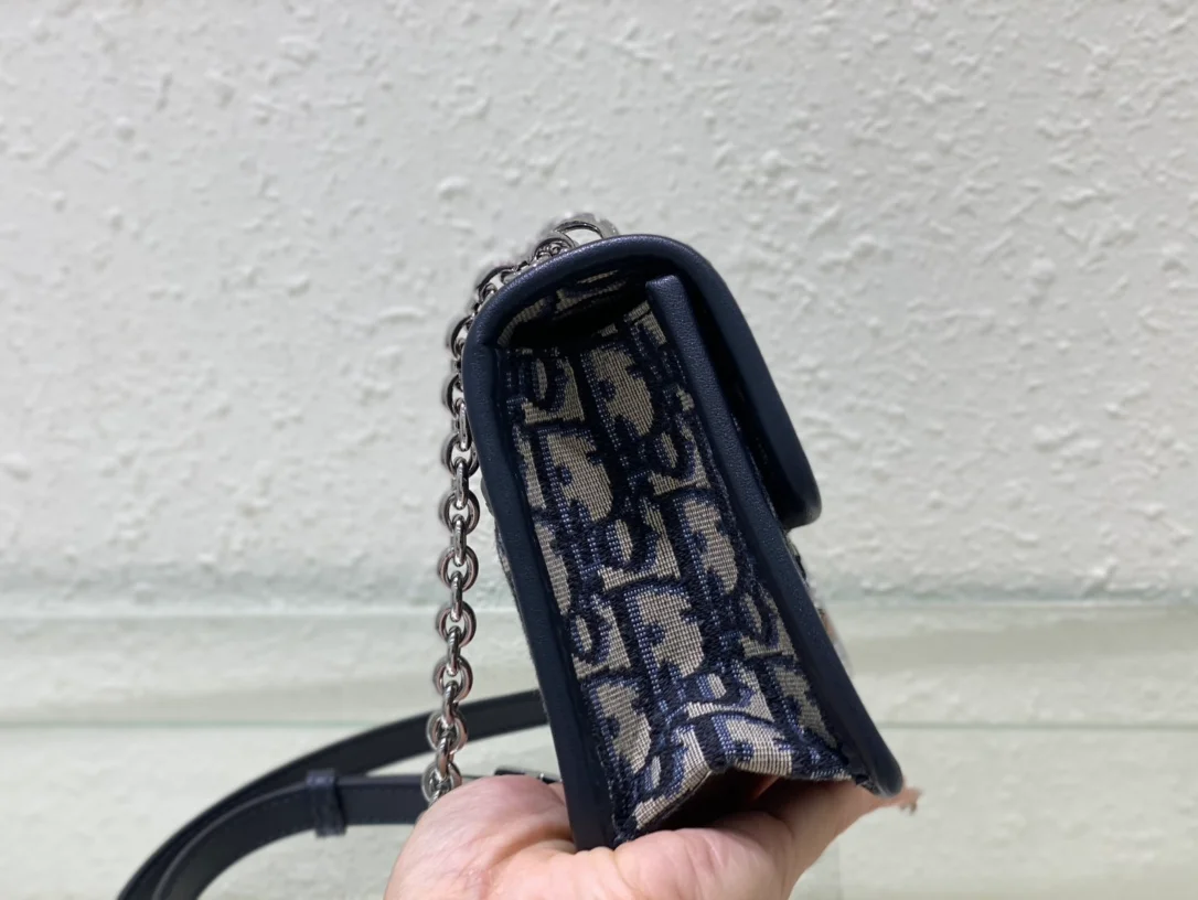 Dior - [Silver Buckle] This East-West chain bag is crafted from blue Oblique print fabric. Its classic and elegant design elevates the 30 Montaigne collection.