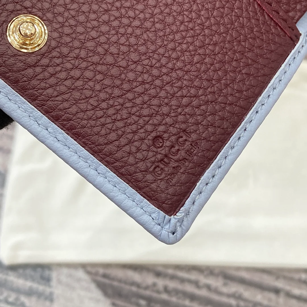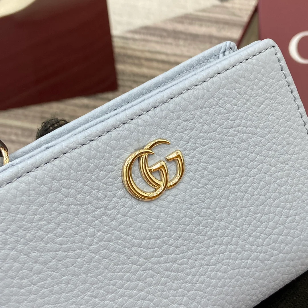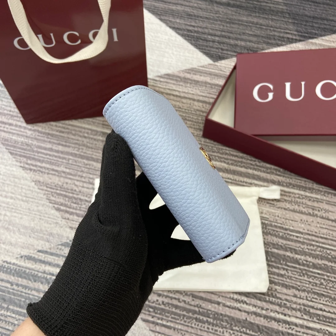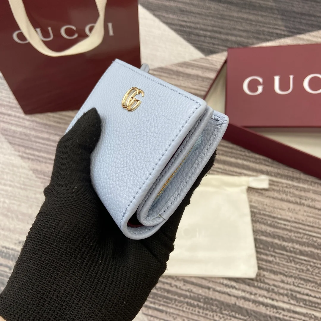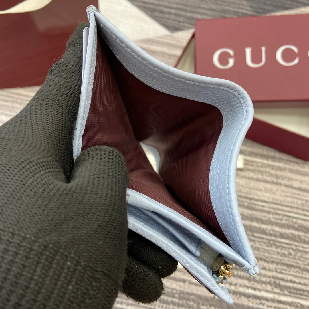 Gucci -【Comes with full boutique packaging】‼️ This GG Marmont cardholder is crafted from classic and timeless light blue with Anchor red bull leather, adding another classic piece to the Aria collection. The double G hardware, inspired by the belt buckle design from the 70s, is reinterpreted on this wallet using a tonal resin material, combining the classic design with a monochromatic color scheme to highlight a modern and fashionable style.
