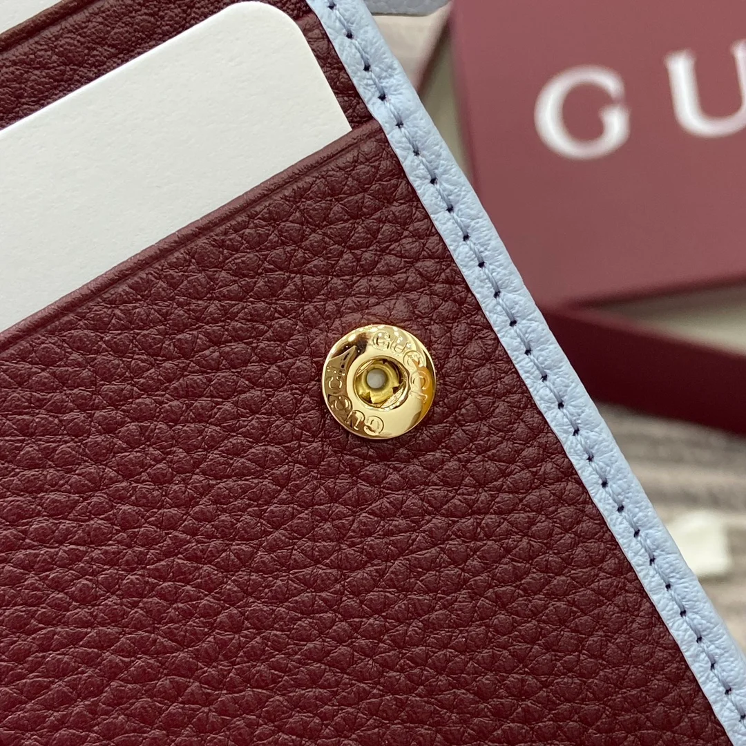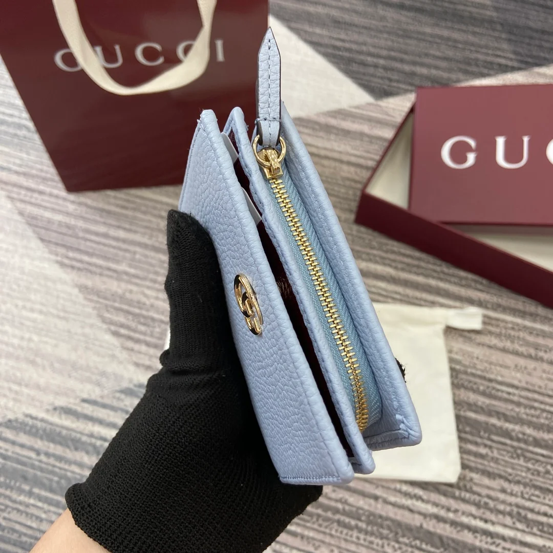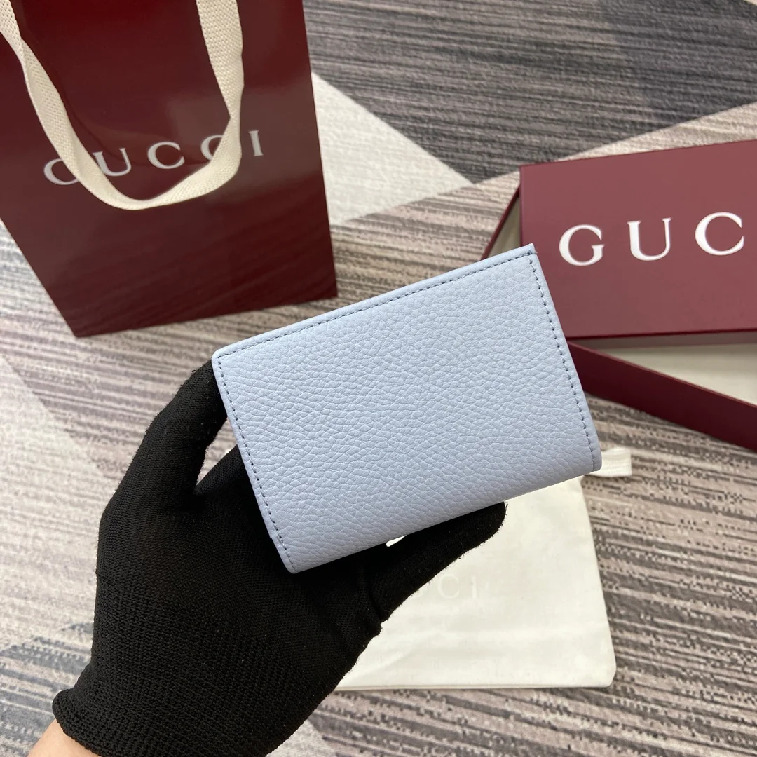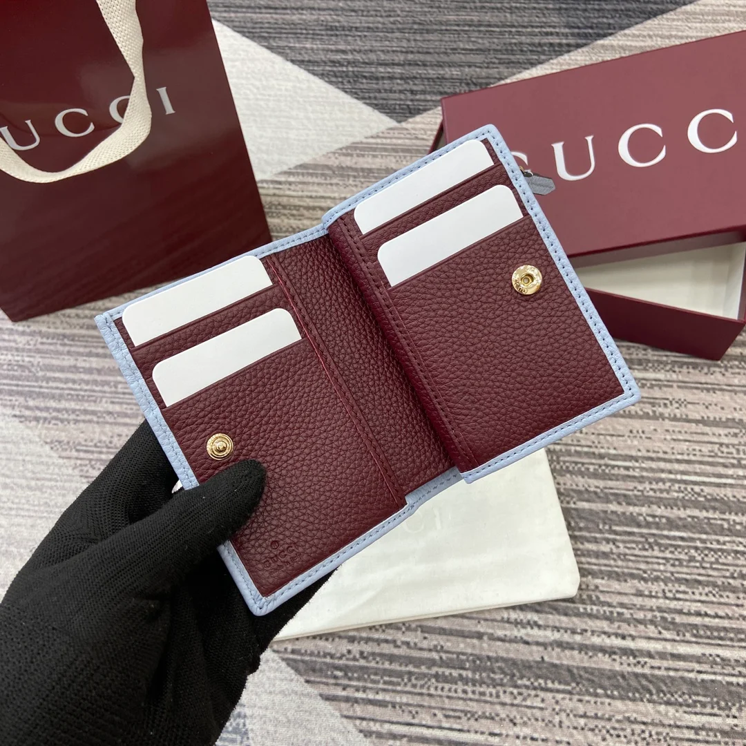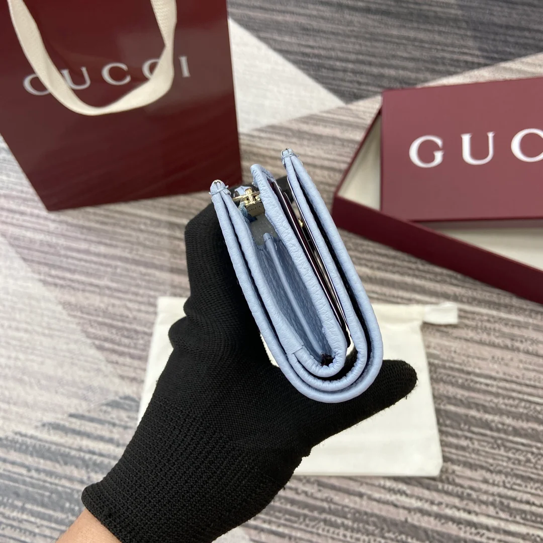 Gucci -【Comes with full boutique packaging】‼️ This GG Marmont cardholder is crafted from classic and timeless light blue with Anchor red bull leather, adding another classic piece to the Aria collection. The double G hardware, inspired by the belt buckle design from the 70s, is reinterpreted on this wallet using a tonal resin material, combining the classic design with a monochromatic color scheme to highlight a modern and fashionable style.