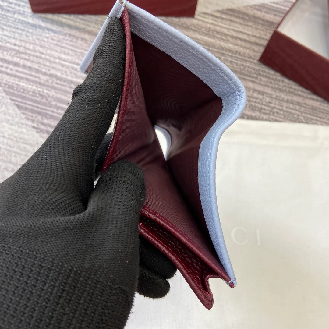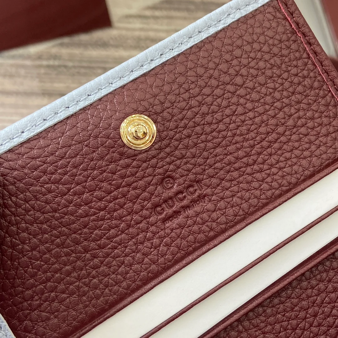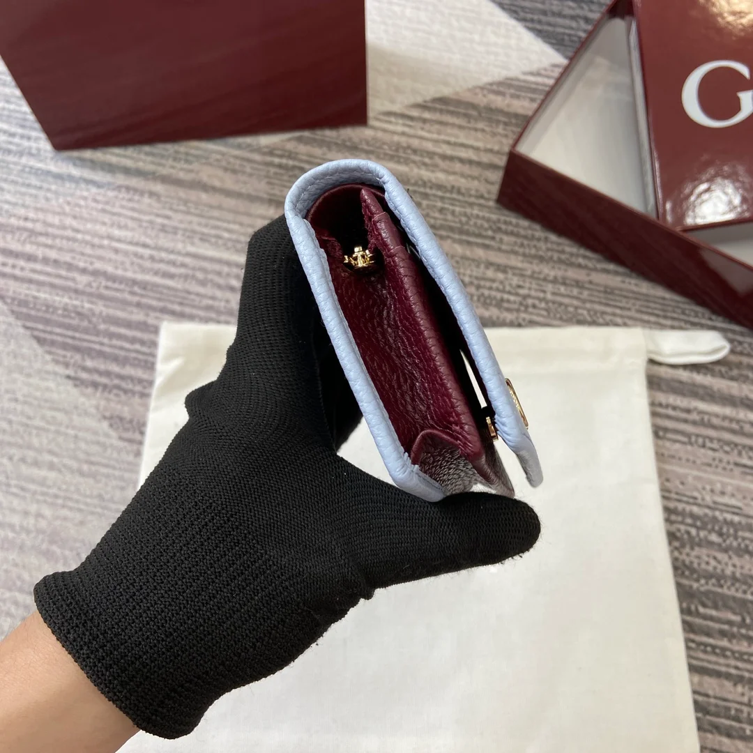 Gucci -【Comes with full boutique packaging】‼️ This GG Marmont cardholder is crafted from classic and timeless light blue with Anchor red bull leather, adding another classic piece to the Aria collection. The double G hardware, inspired by the belt buckle design from the 70s, is reinterpreted on this wallet using a tonal resin material, combining the classic design with a monochromatic color scheme to highlight a modern and fashionable style.