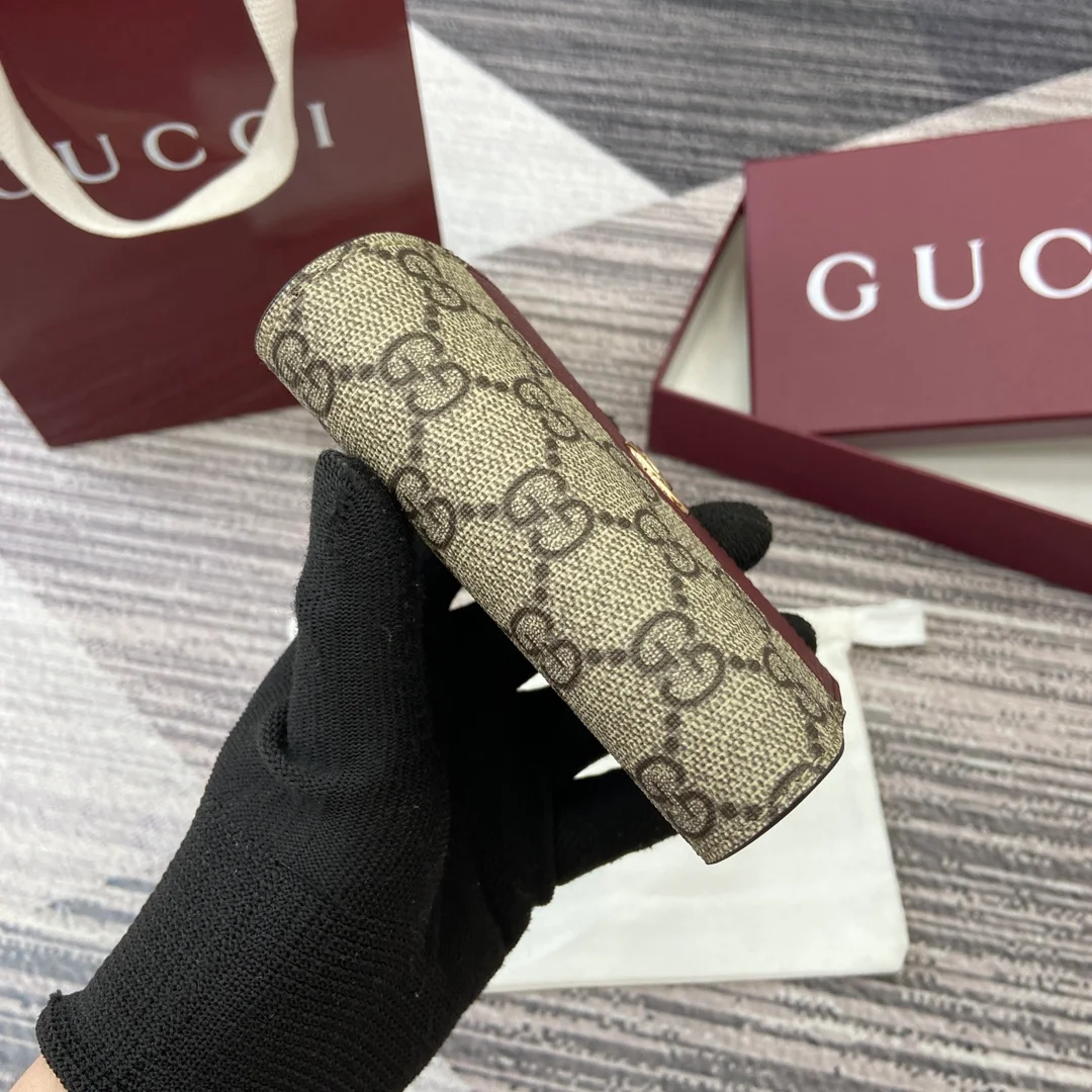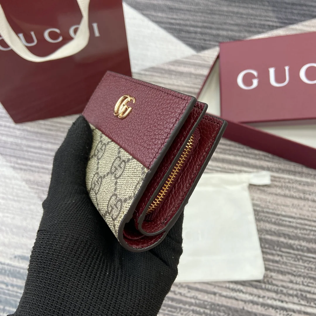 Gucci -【Comes with full boutique packaging】‼️ The double G accessories, inspired by the classic designs of the 70s, continue to shine in the GG Marmont collection. This cardholder is crafted from beige and Anchor Red GG Supreme canvas, adorned with Anchor Red leather details. Double G, beige and Anchor Red GG Supreme canvas, eco-friendly.