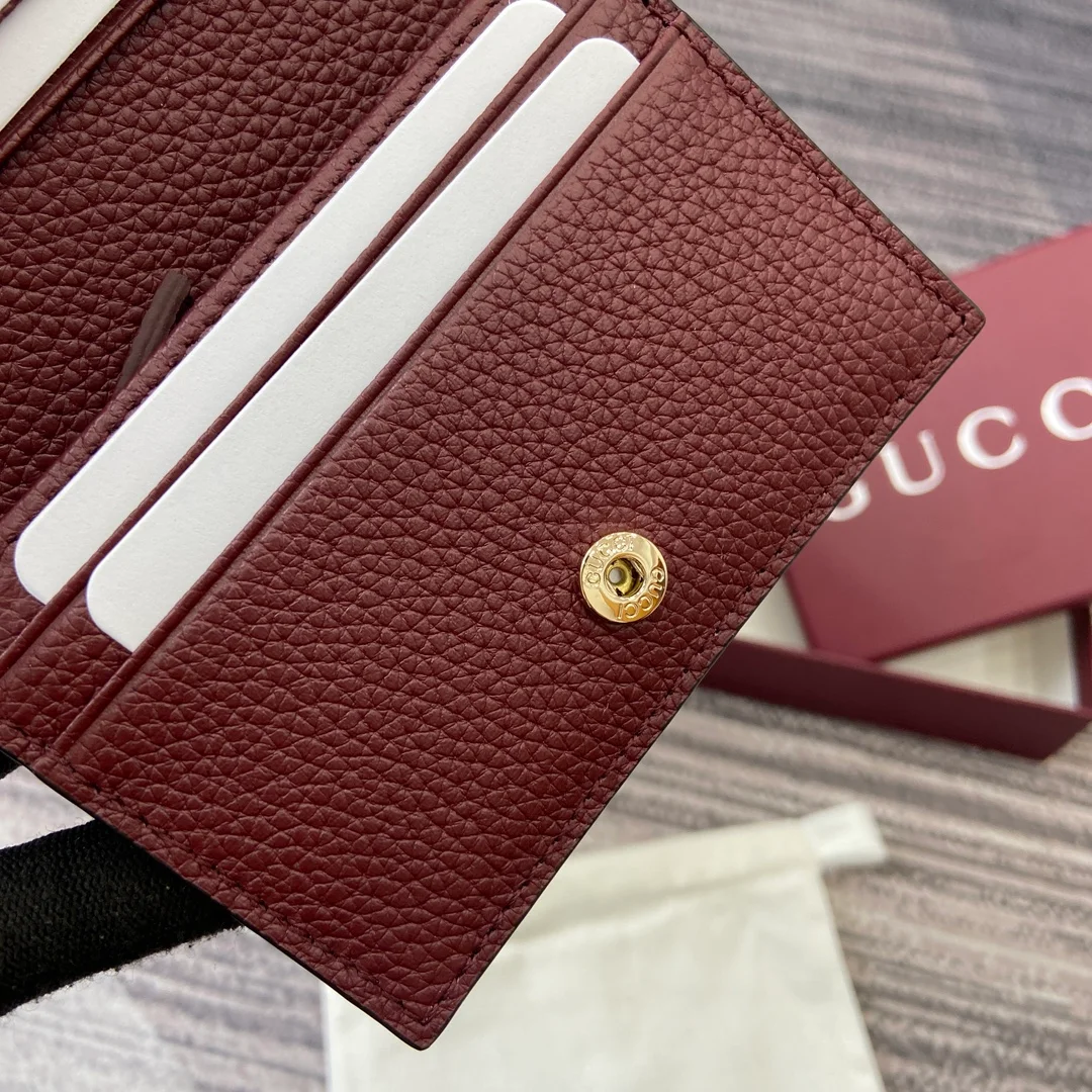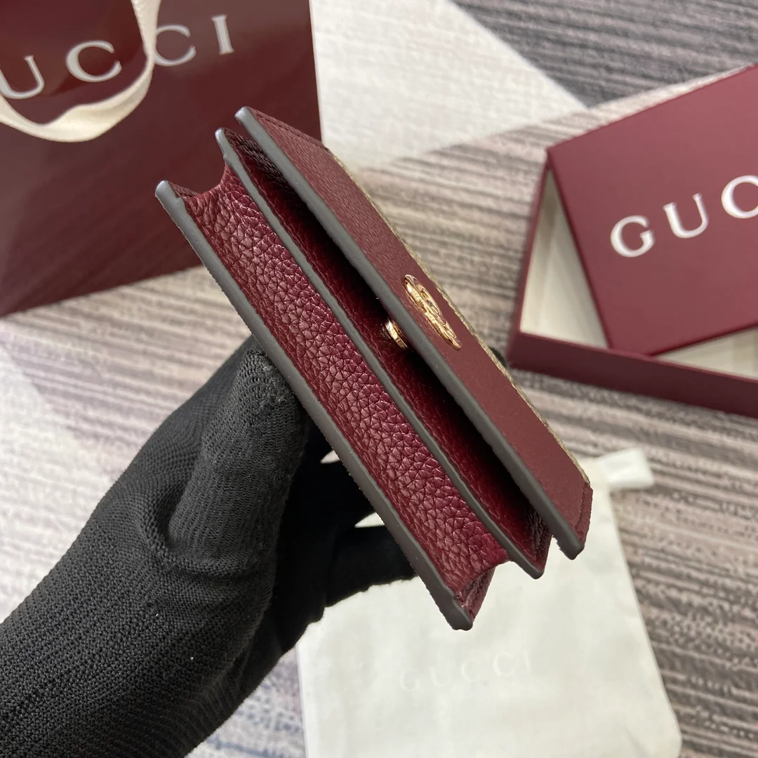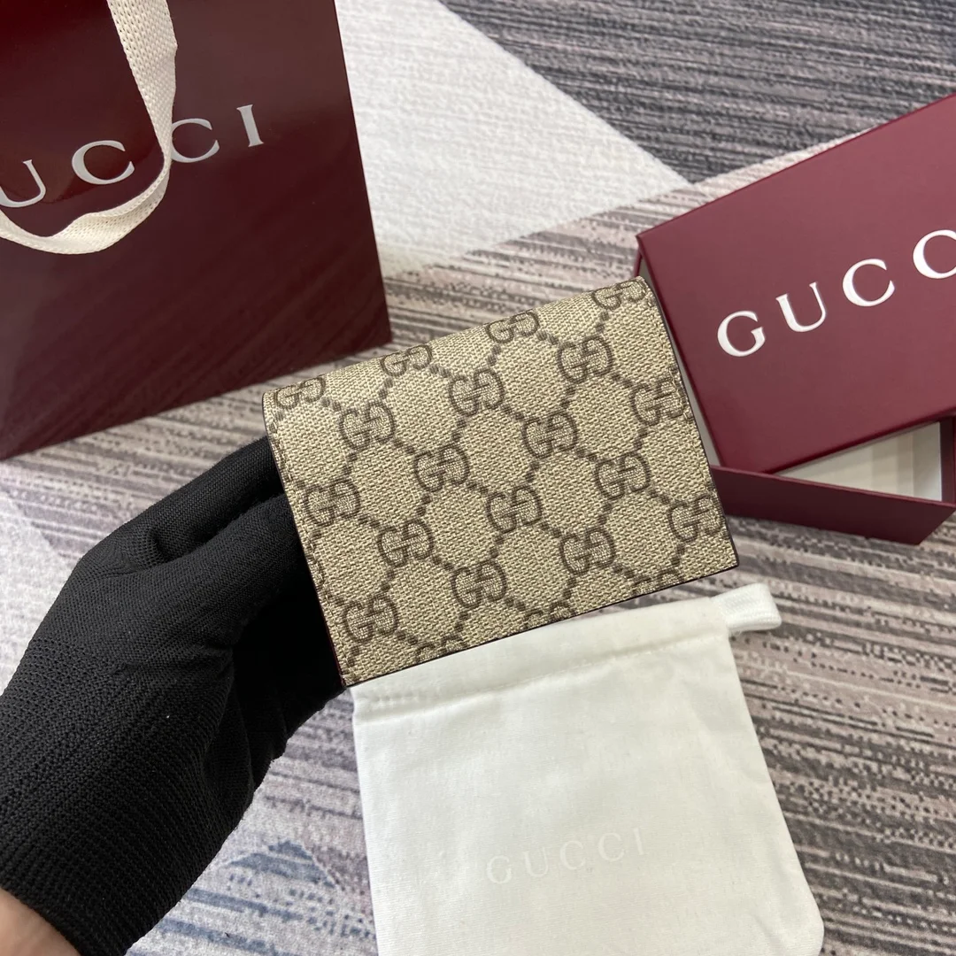 Gucci -【Comes with full boutique packaging】‼️ This small wallet features a mix of the brand's classic monogram canvas and gold-tone metallic leather, showcasing the GG logo alongside another signature detail: the double G. This mini-sized wallet is a testament to the brand's style, with these iconic elements subtly adorning the gold-tone hardware, giving it a radiant shine. The cardholder features a snap closure and contains multiple cards.