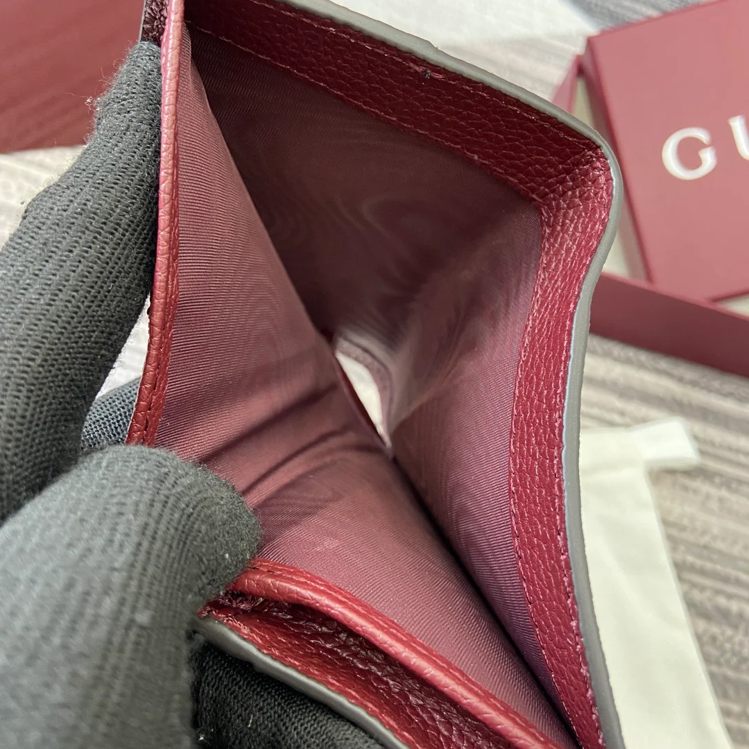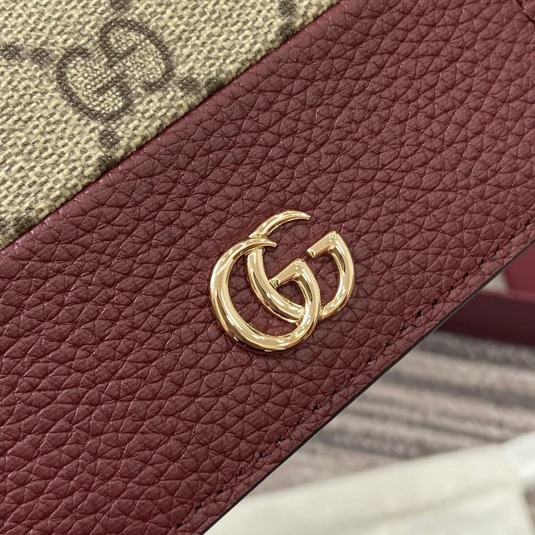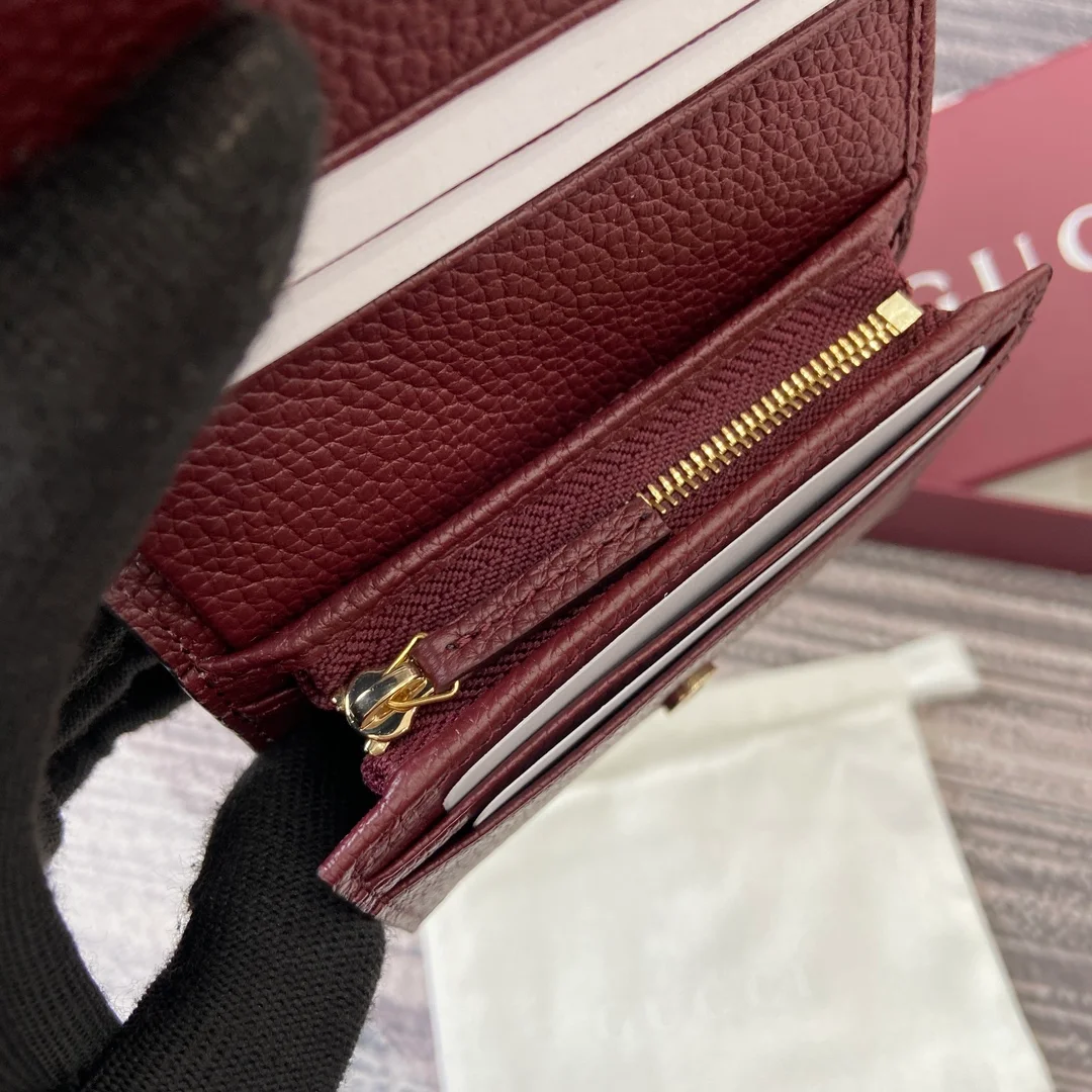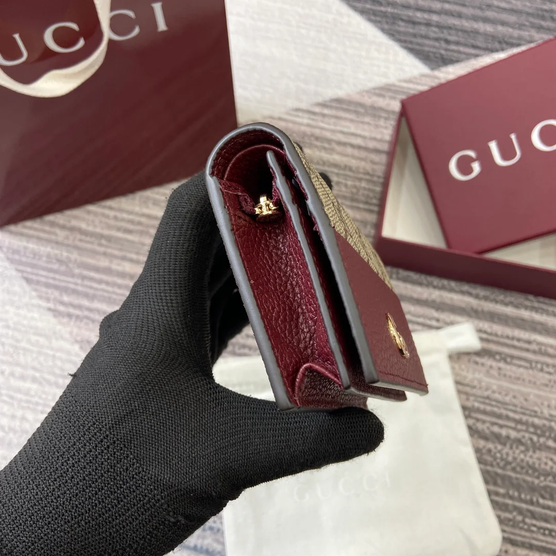 Gucci -【Comes with full boutique packaging】‼️ This small wallet features a mix of the brand's classic monogram canvas and gold-tone metallic leather, showcasing the GG logo alongside another signature detail: the double G. This mini-sized wallet is a testament to the brand's style, with these iconic elements subtly adorning the gold-tone hardware, giving it a radiant shine. The cardholder features a snap closure and contains multiple cards.