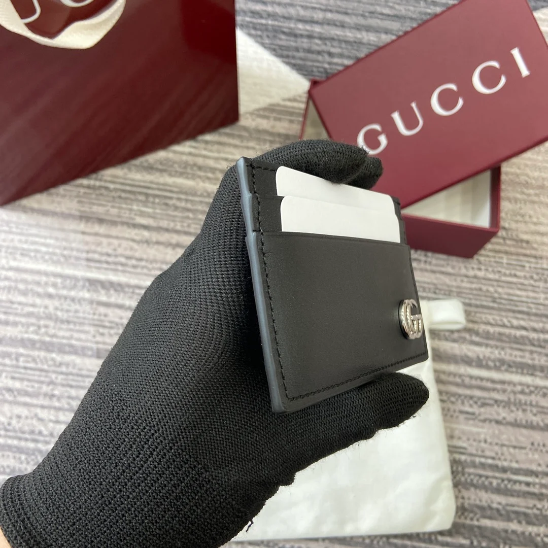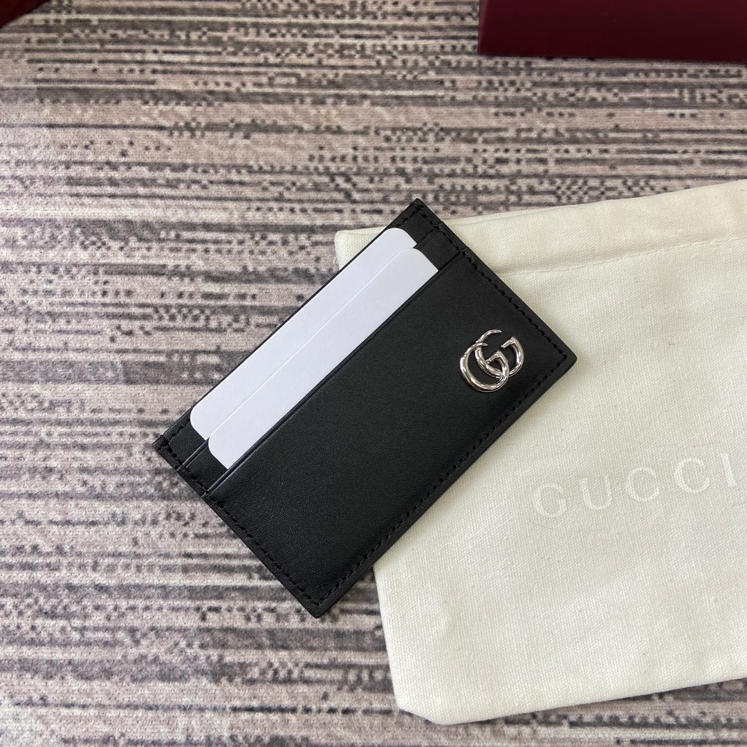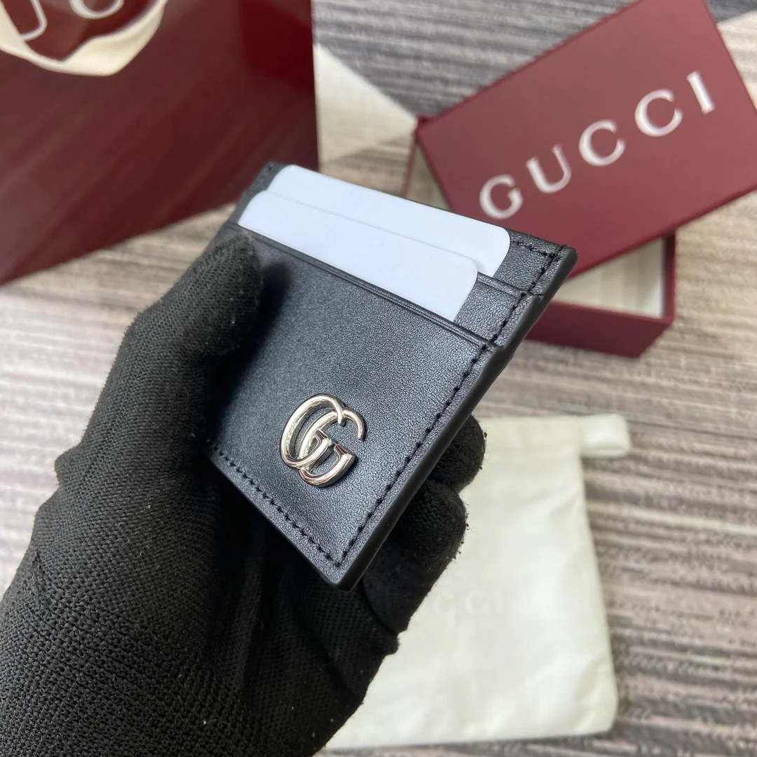 Gucci -【Comes with full boutique packaging】‼️ The GG Marmont series features eye-catching colorful details, while innovative functions add vitality to the classic silhouette. This card holder is made of semi-gloss soft leather, complemented by emerald green leather piping and emerald green lacquered double G details.