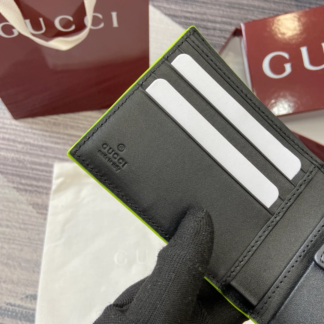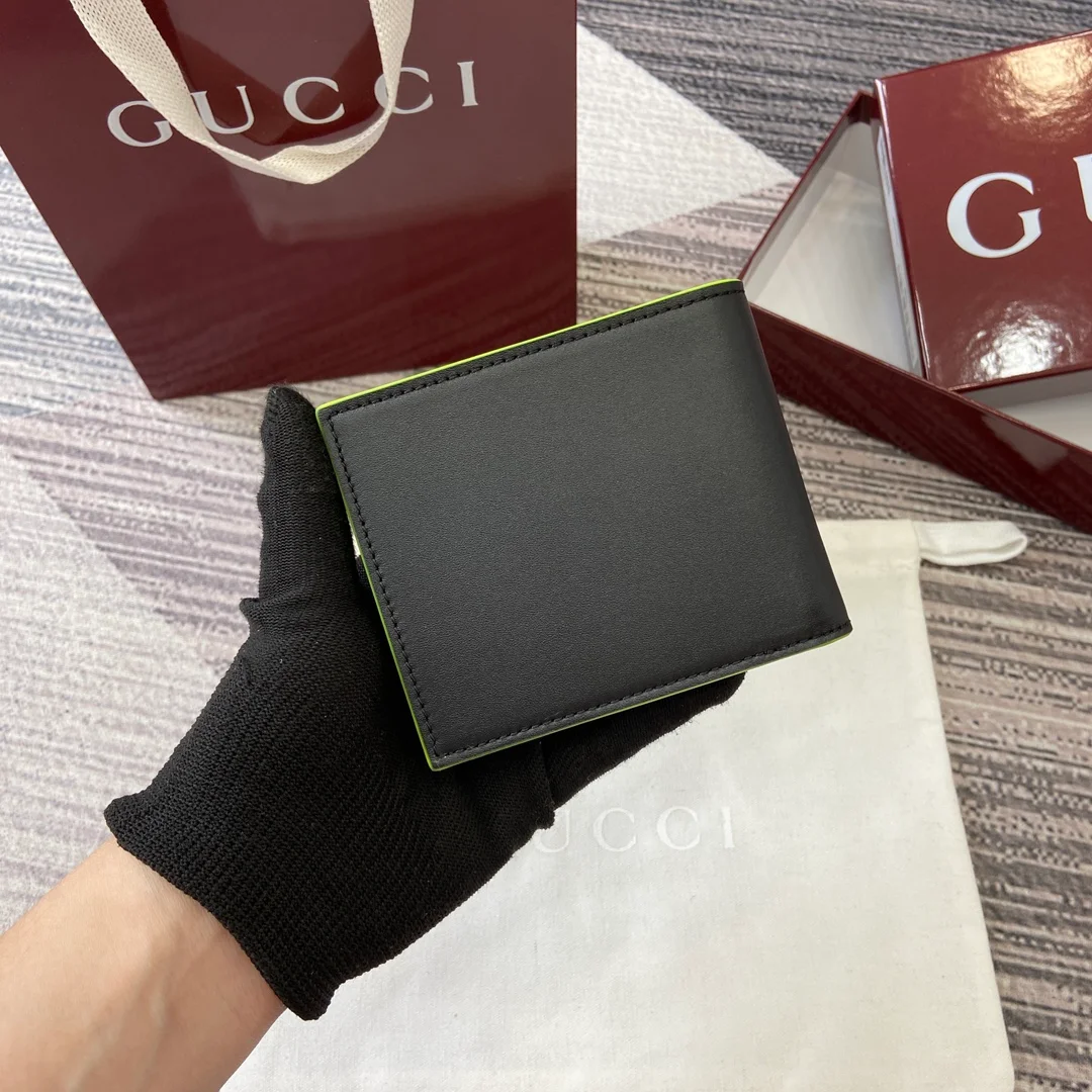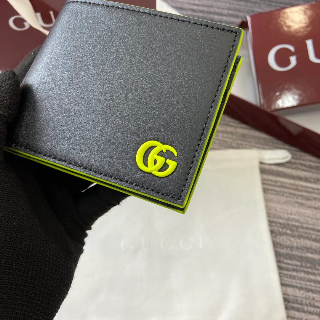 Gucci -【Comes with full boutique packaging】‼️ The GG Marmont series features eye-catching colorful details, and innovative functions add vitality to the classic silhouette. This bi-fold wallet is made of semi-gloss soft leather, with palladium-toned double G details adding a finishing touch. Black semi-gloss soft leather, palladium-toned hardware.