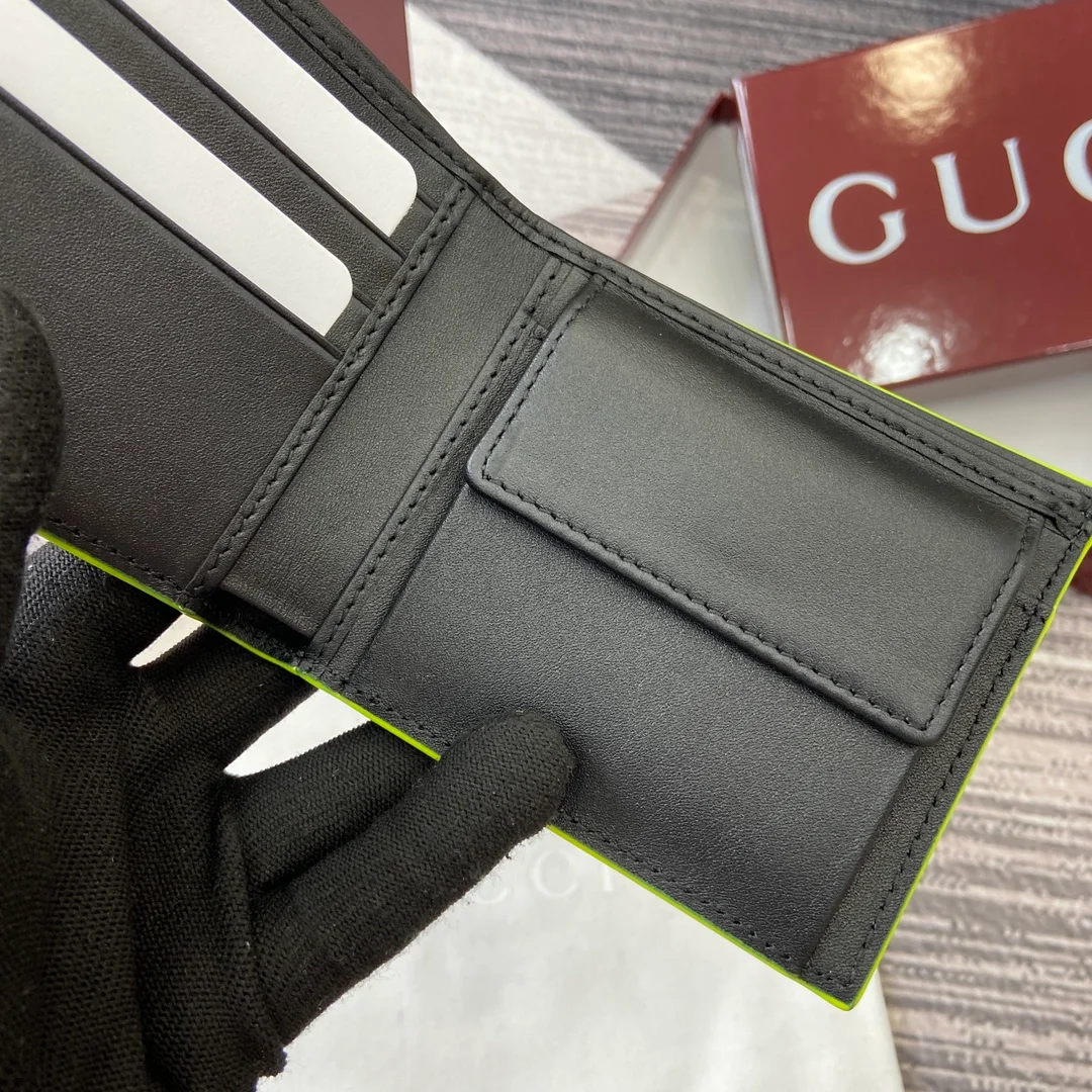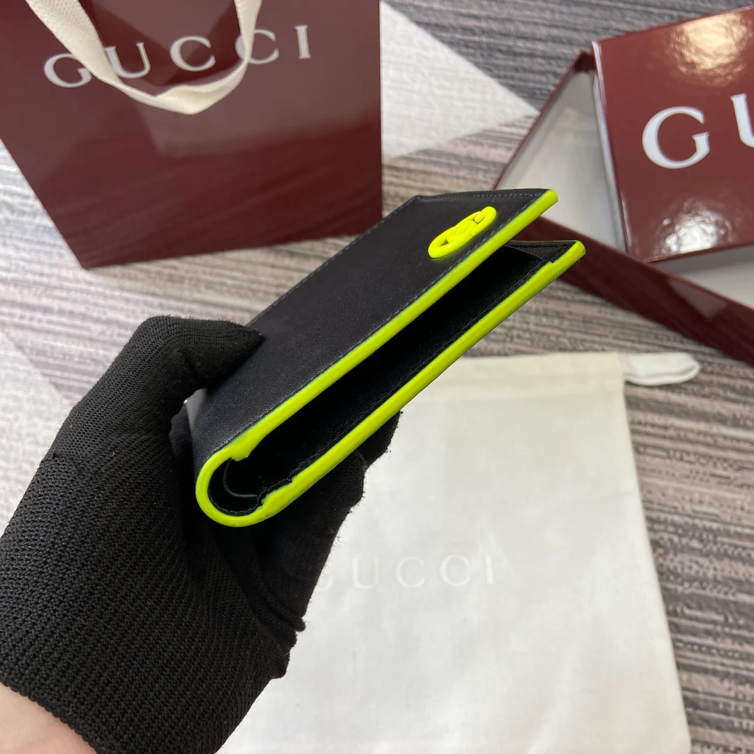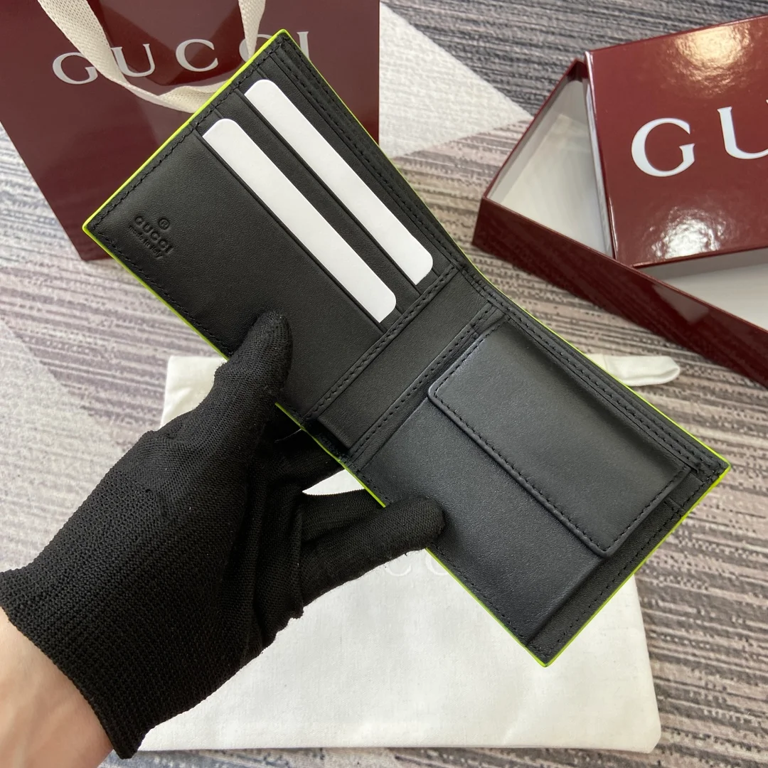 Gucci -【Comes with full boutique packaging】‼️ The GG Marmont series features eye-catching colorful details, and innovative functions add vitality to the classic silhouette. This bi-fold wallet is made of semi-gloss soft leather, with palladium-toned double G details adding a finishing touch. Black semi-gloss soft leather, palladium-toned hardware.