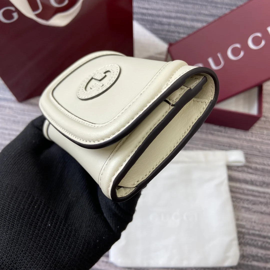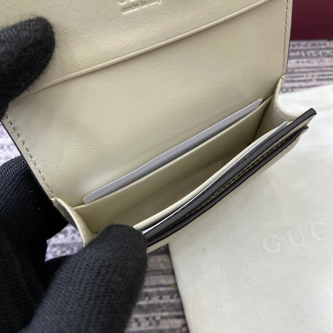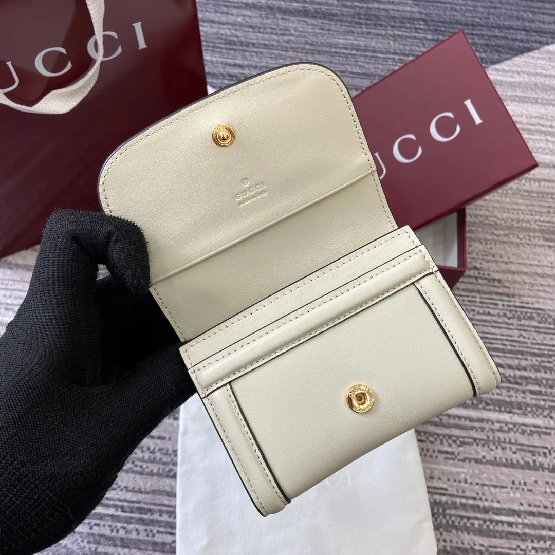 Gucci -【Comes with full boutique packaging】‼️ The interlocking double G logo, inspired by elements from the brand's heritage, continues to enhance the look of Lancôme suede leather accessories. On this calfskin card holder, this 1970s-style logo shines once again. The interior features multiple compartments for various uses.
