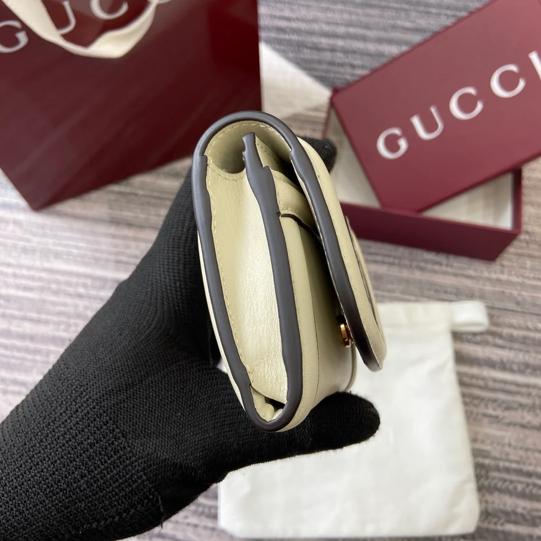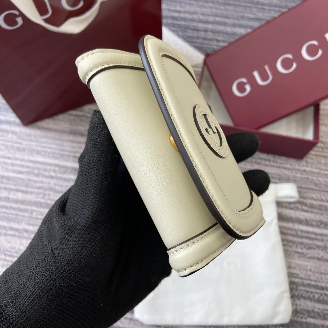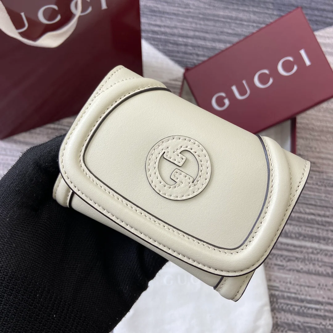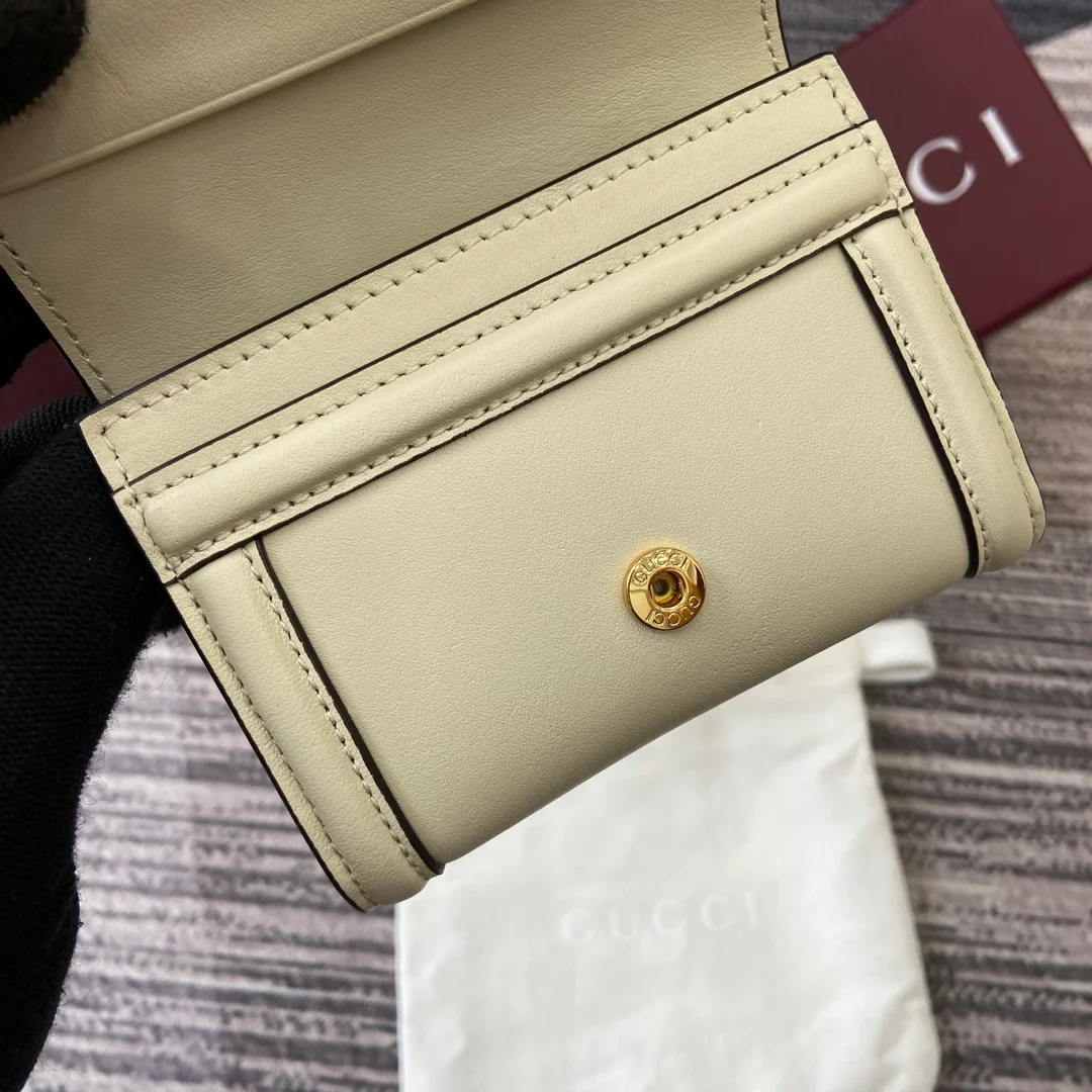 Gucci -【Comes with full boutique packaging】‼️ The interlocking double G logo, inspired by elements from the brand's heritage, continues to enhance the look of Lancôme suede leather accessories. On this calfskin card holder, this 1970s-style logo shines once again. The interior features multiple compartments for various uses.
