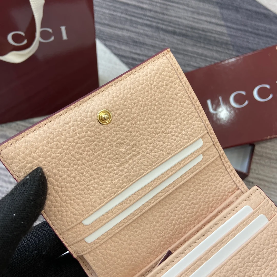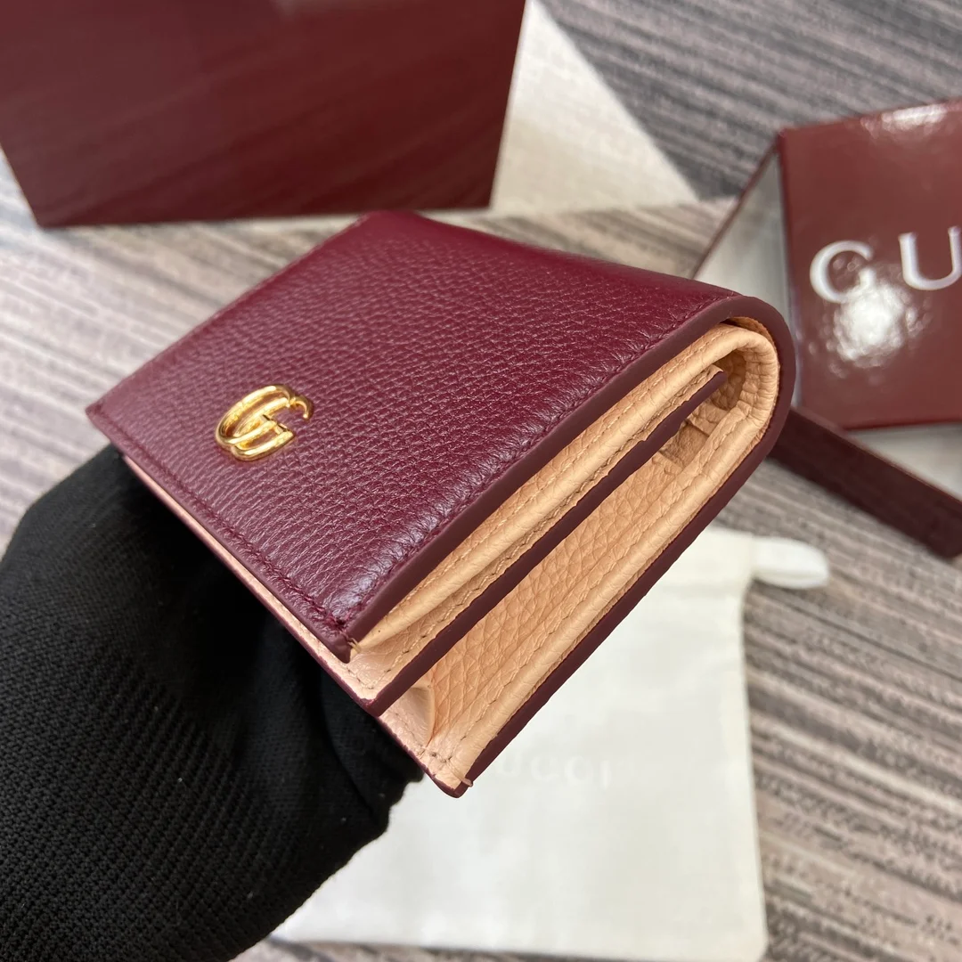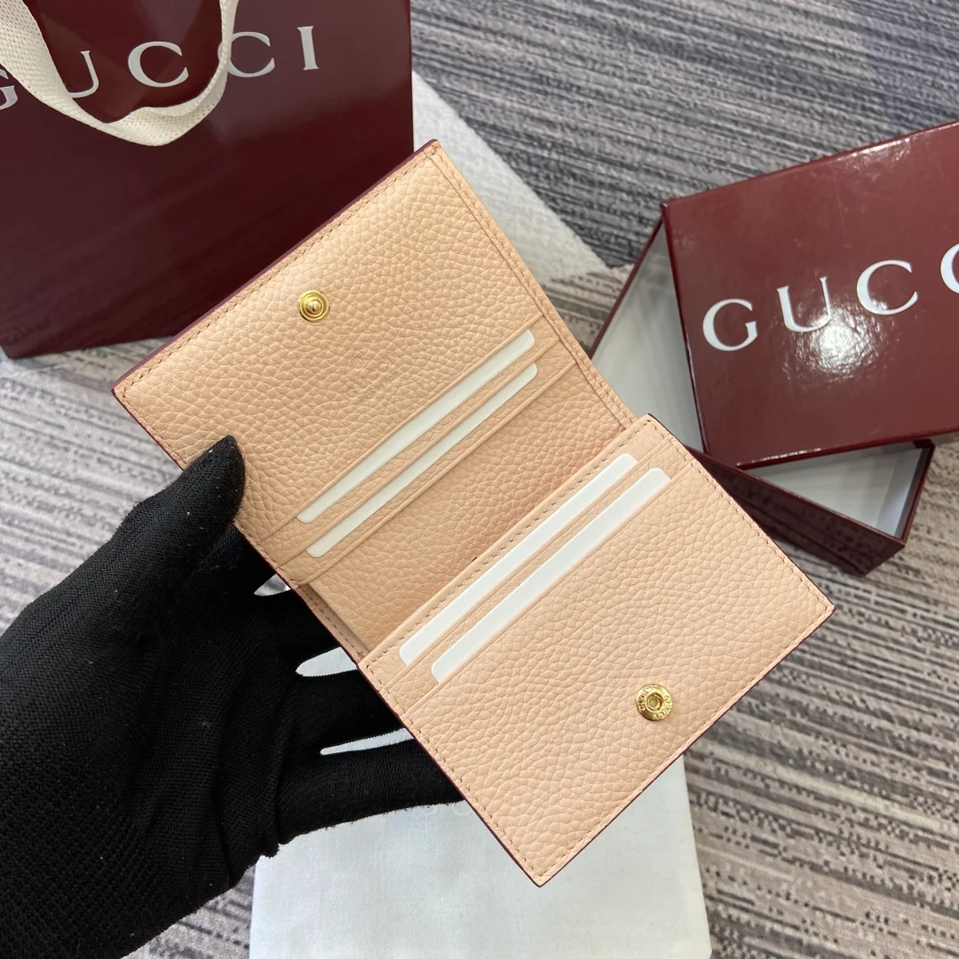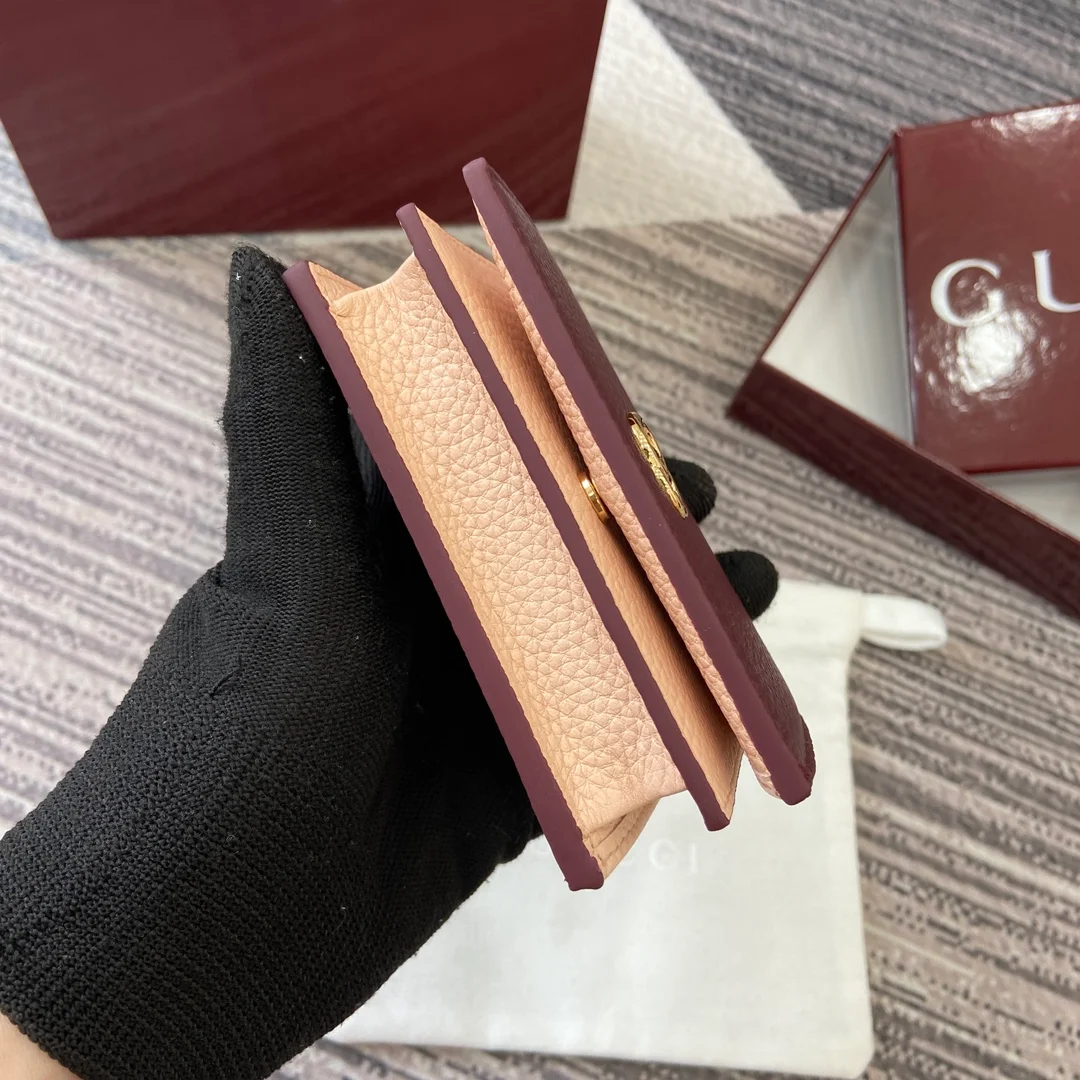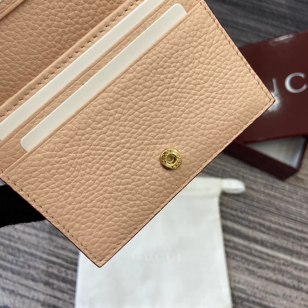 Gucci -【Comes with full boutique packaging】‼️ This GG Marmont cardholder is crafted from classic and timeless Anchor Red paired with light pink calfskin, adding another classic piece to the Aria collection. The double G hardware, inspired by the belt buckle design of the 70s, is reimagined on this wallet using a tonal resin material. The combination of classic design and monochromatic color scheme highlights modern style.