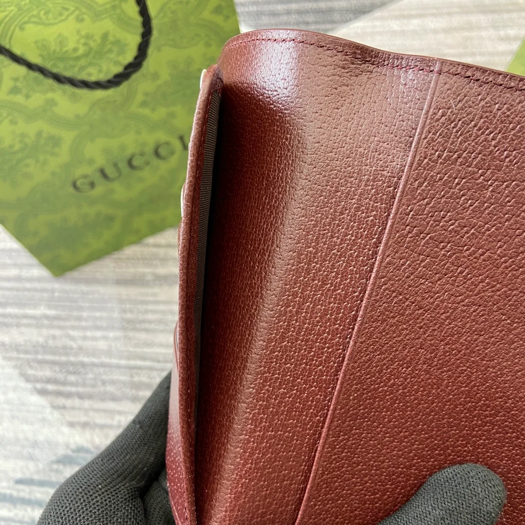 Gucci - GG Passport Holder with GG Details‼️ The new collection presents slim and compact leather goods, refreshed with a variety of vibrant colors. The contrasting two-tone design brings out the GG logo adorning the bag. This passport holder is crafted from black GG Supreme canvas, with a grey glossy leather lining and four card compartments.