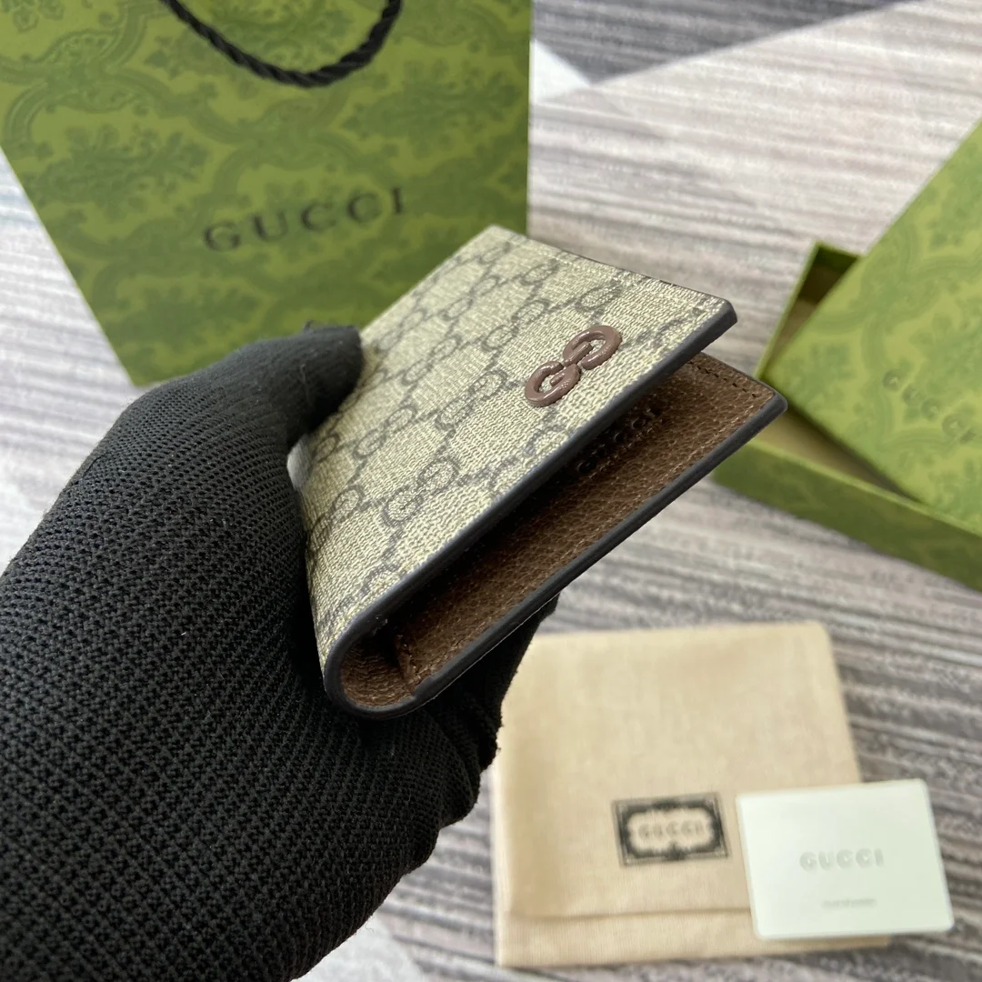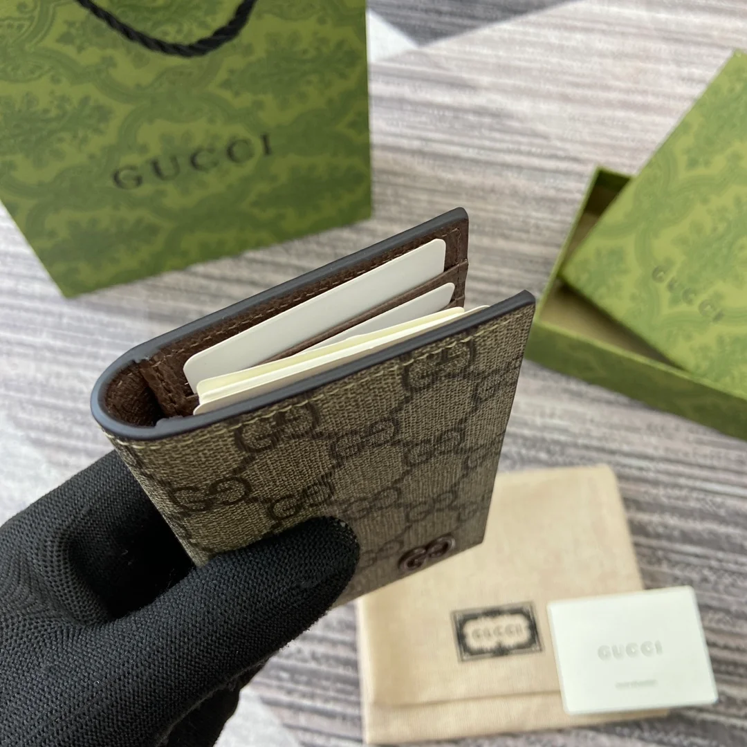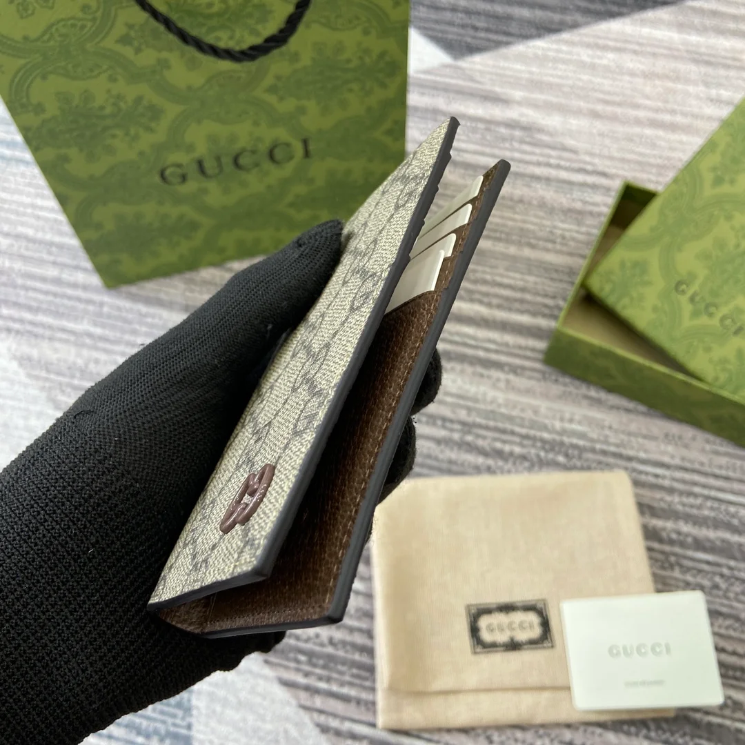 Gucci - Long Card Holder with GG Details‼️ This long card holder cleverly blends iconic GG details with vibrant colors. Crafted from GG Supreme canvas, it features contrasting black details, adding a subtle yet striking beauty to this small everyday accessory.