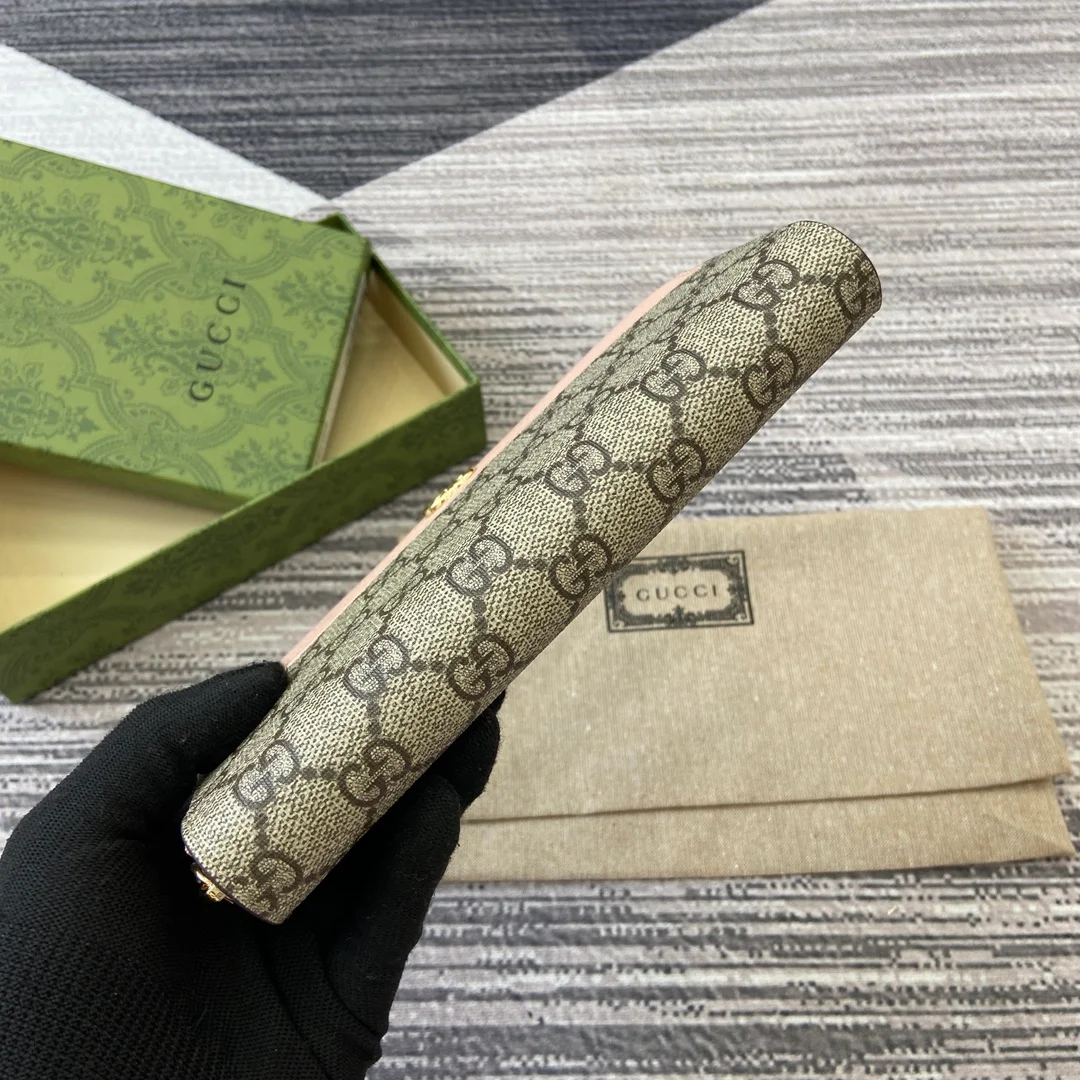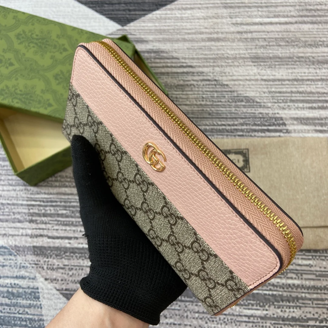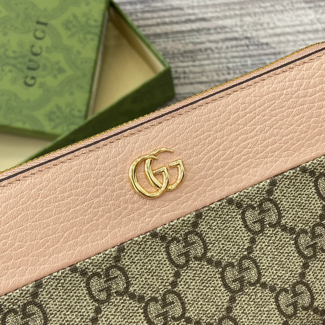 Gucci -【Comes with full boutique packaging】‼️ The double G accessories, inspired by a classic 70s design, continue to shine in the GG Marmont collection. This fully zipped bag is crafted from beige and ebony GG Supreme canvas, accented with pink leather details.