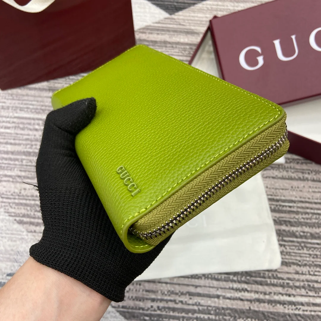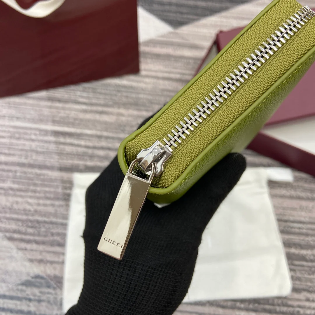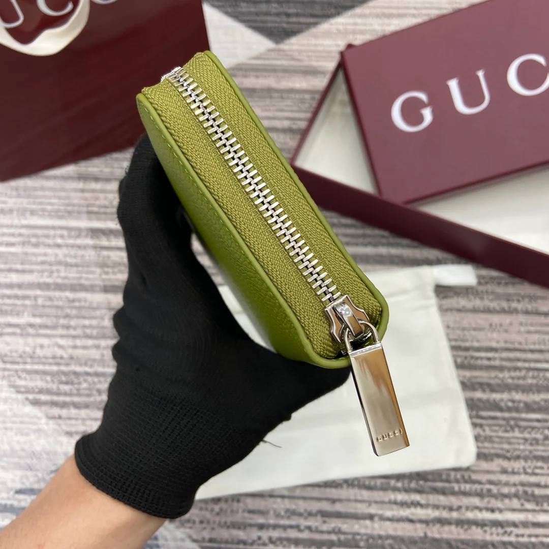 Gucci -【Comes with full boutique packaging】‼️ A fresh interpretation of the classic small accessories from the 2025 Early Spring collection, featuring a new color scheme and rich elements. This full-zip wallet is crafted from emerald green calfskin leather, subtly incorporating the Gucci logo, and features a grey calfskin leather lining.