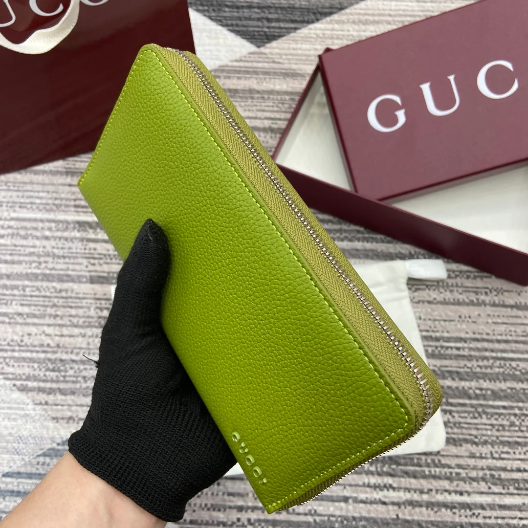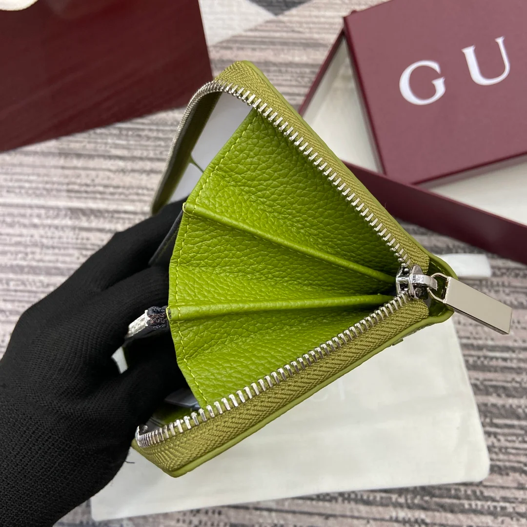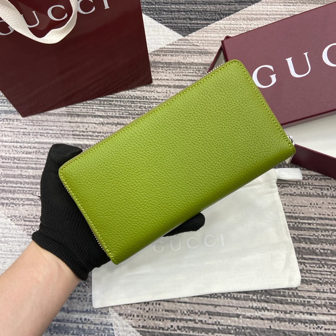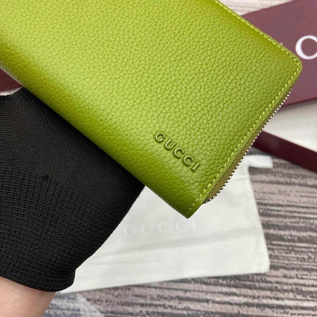 Gucci -【Comes with full boutique packaging】‼️ A fresh interpretation of the classic small accessories from the 2025 Early Spring collection, featuring a new color scheme and rich elements. This full-zip wallet is crafted from emerald green calfskin leather, subtly incorporating the Gucci logo, and features a grey calfskin leather lining.