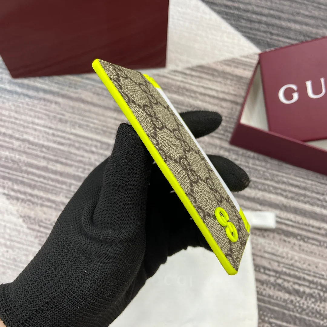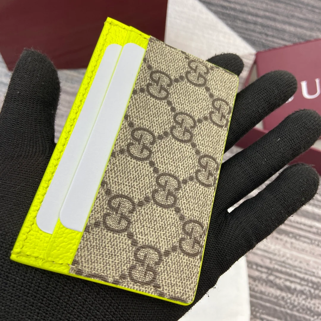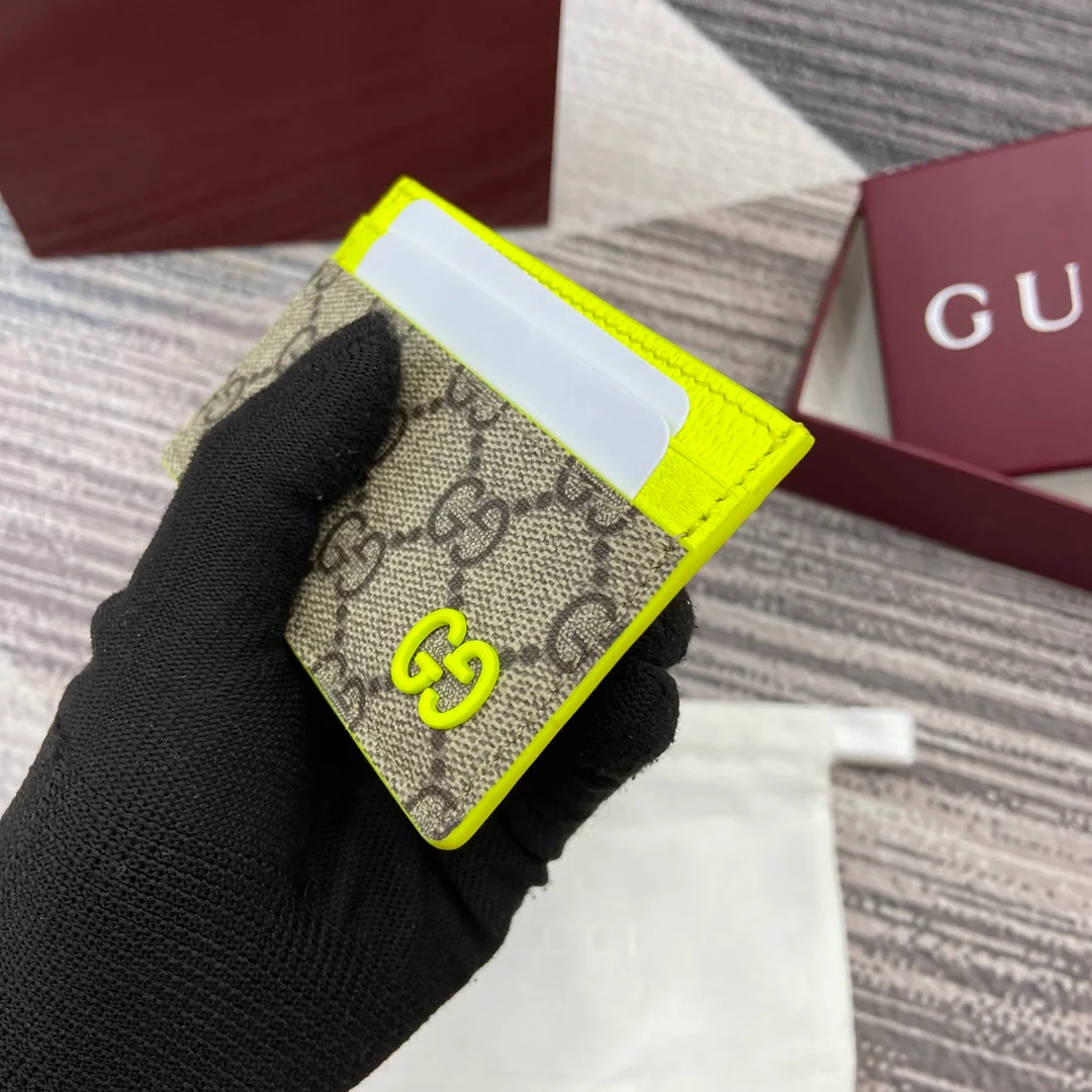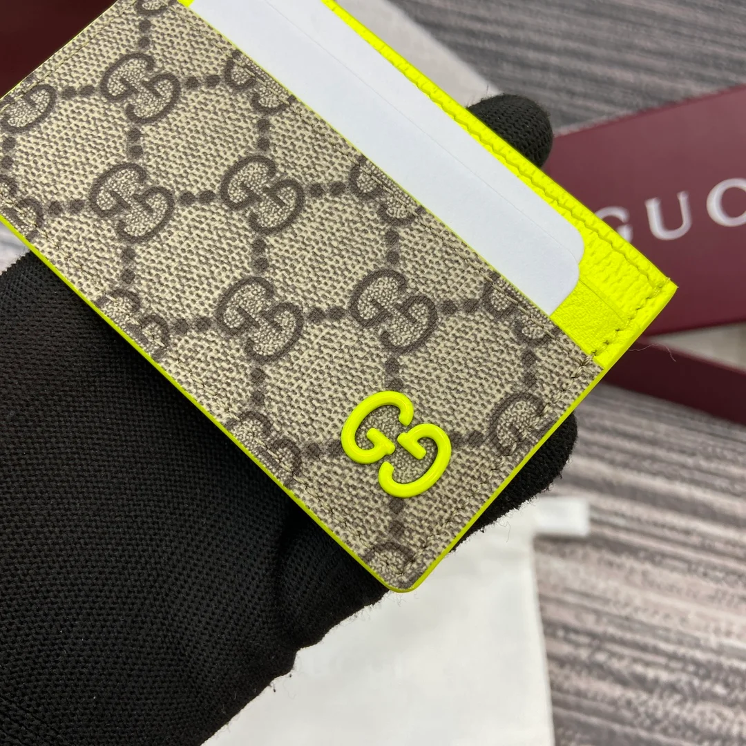 Gucci -【Comes with full boutique packaging】‼️ This two-tone card holder is a masterpiece from the 2025 Pre-Fall collection. Crafted from GG Supreme canvas with contrasting leather trim and adorned with ceramic-effect GG details.