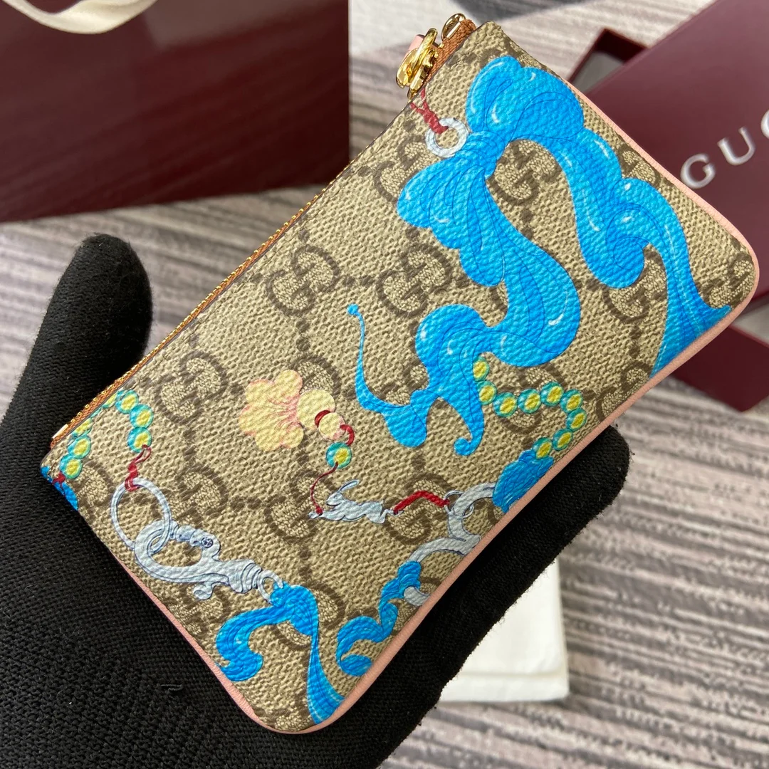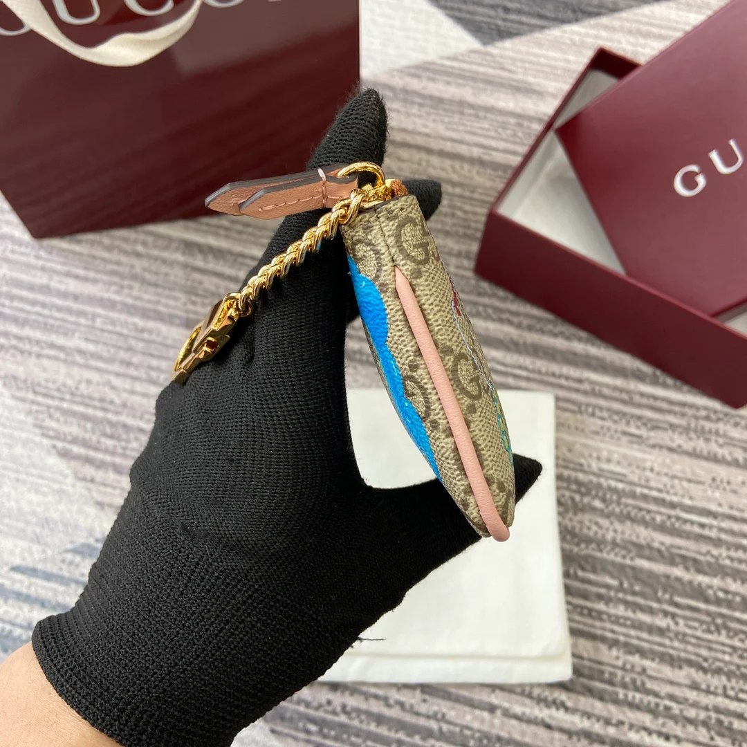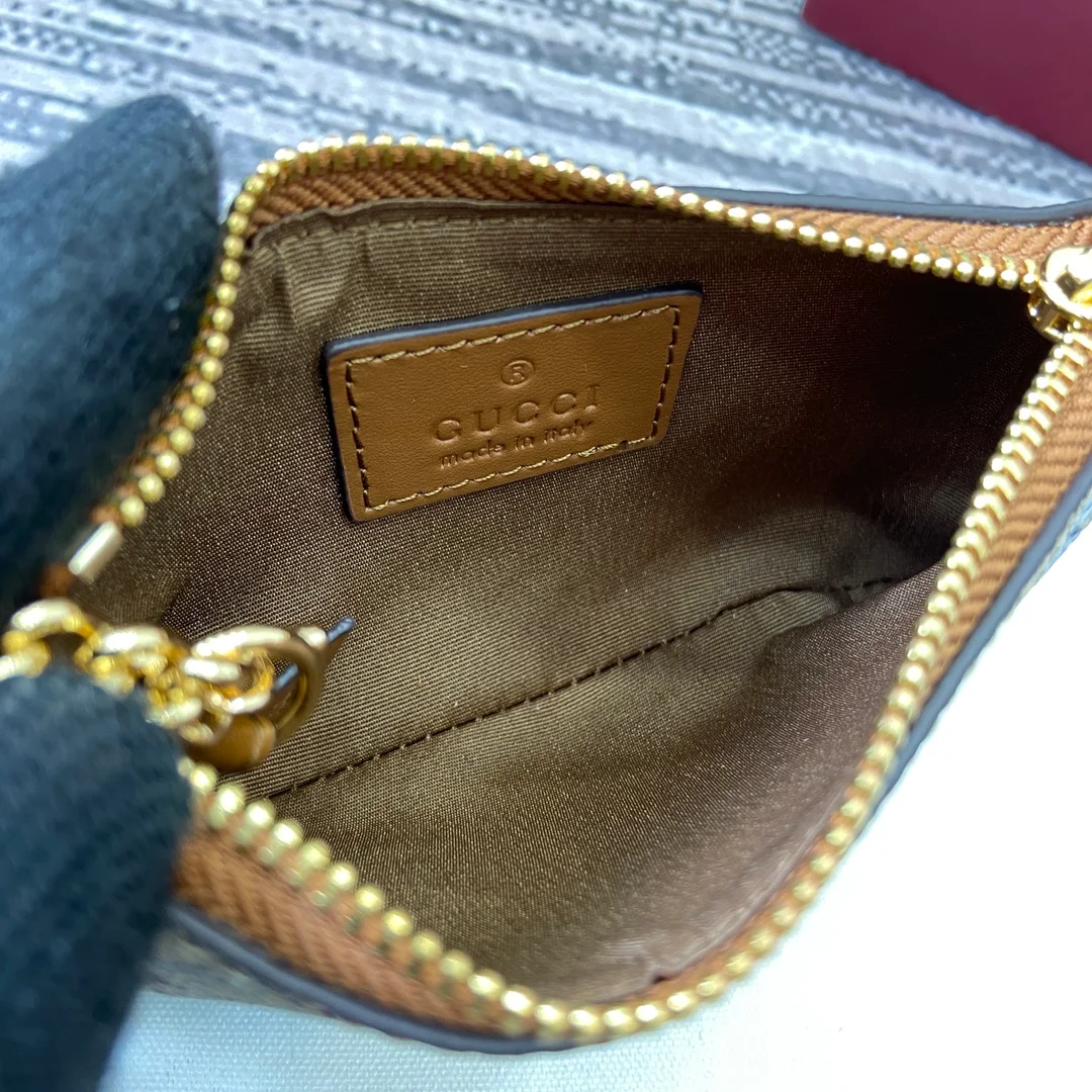 Gucci -【Comes with full boutique packaging】‼️ Korean artist Inji Seo presents vibrant patterns, infusing the 2025 Pre-Fall women's ready-to-wear and small leather goods collection with an artistic flair. This card holder features a GG logo interwoven pattern coated fabric with leather trim. Beige and dark brown GG logo interwoven pattern coated fabric. Light gold-toned accessories.