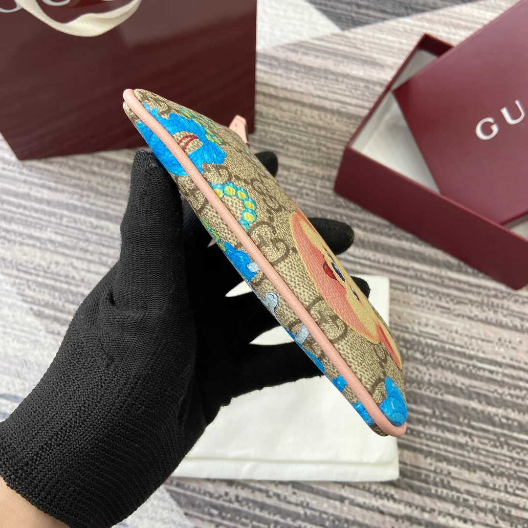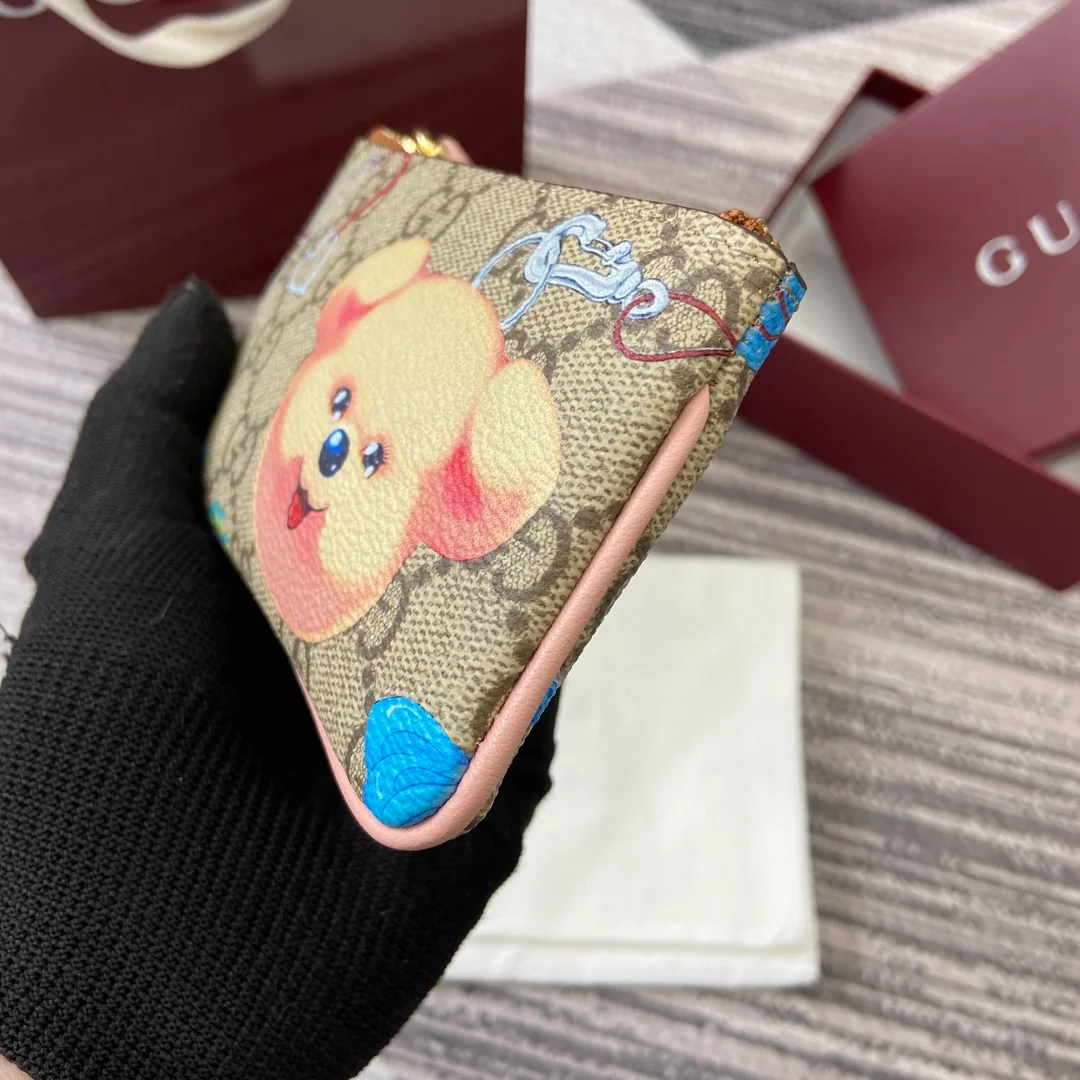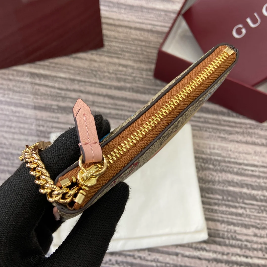 Gucci -【Comes with full boutique packaging】‼️ Korean artist Inji Seo presents vibrant patterns, infusing the 2025 Pre-Fall women's ready-to-wear and small leather goods collection with an artistic flair. This card holder features a GG logo interwoven pattern coated fabric with leather trim. Beige and dark brown GG logo interwoven pattern coated fabric. Light gold-toned accessories.