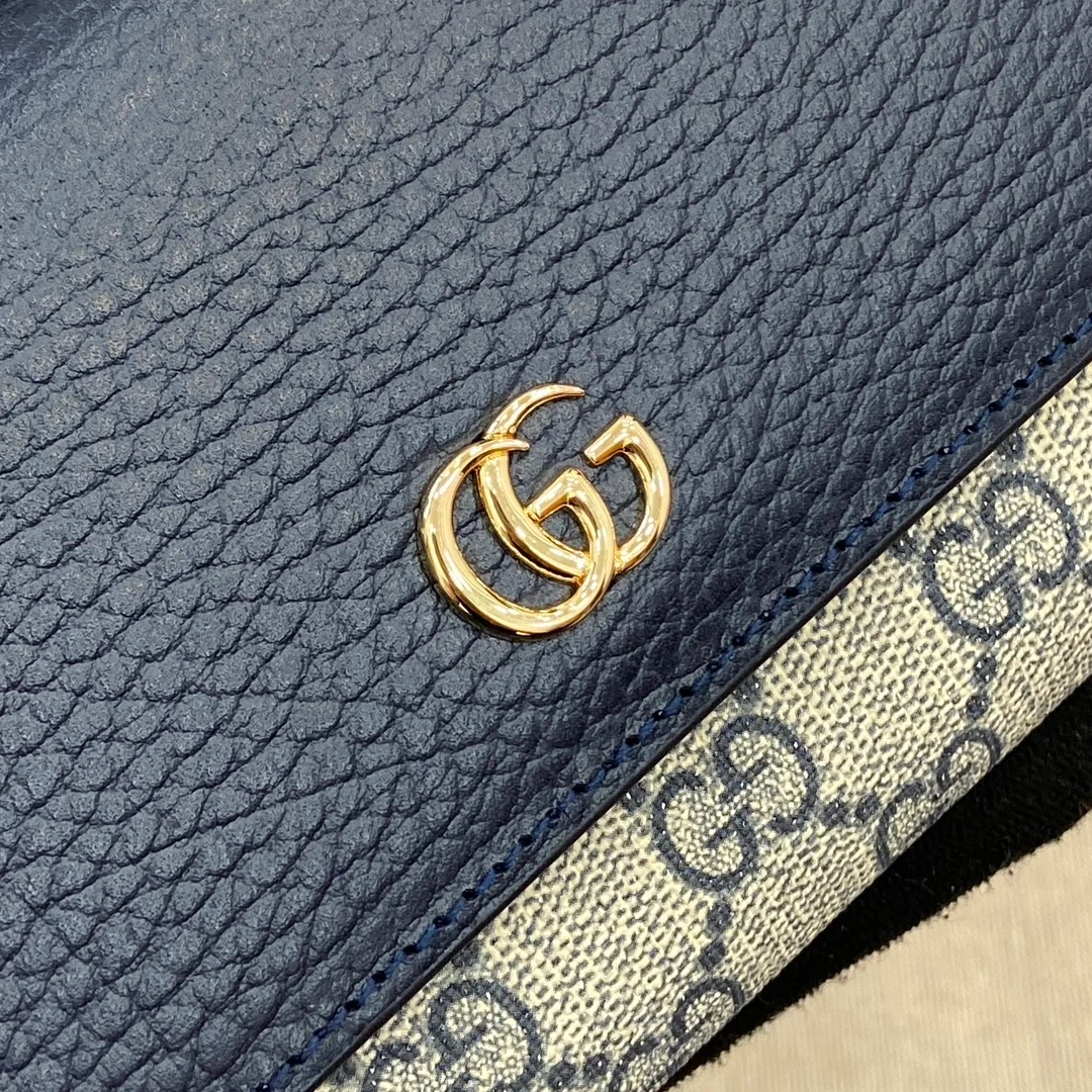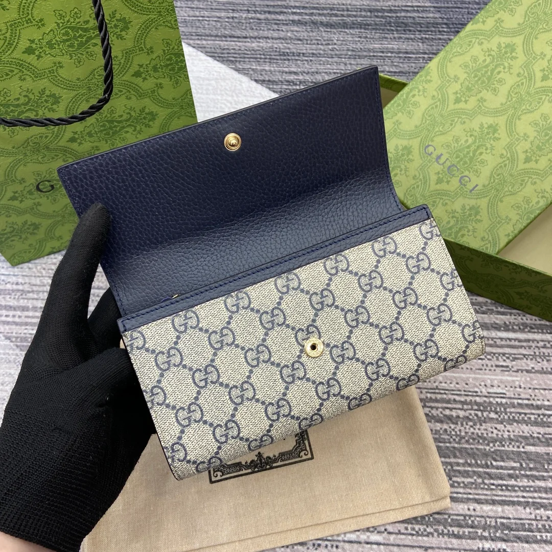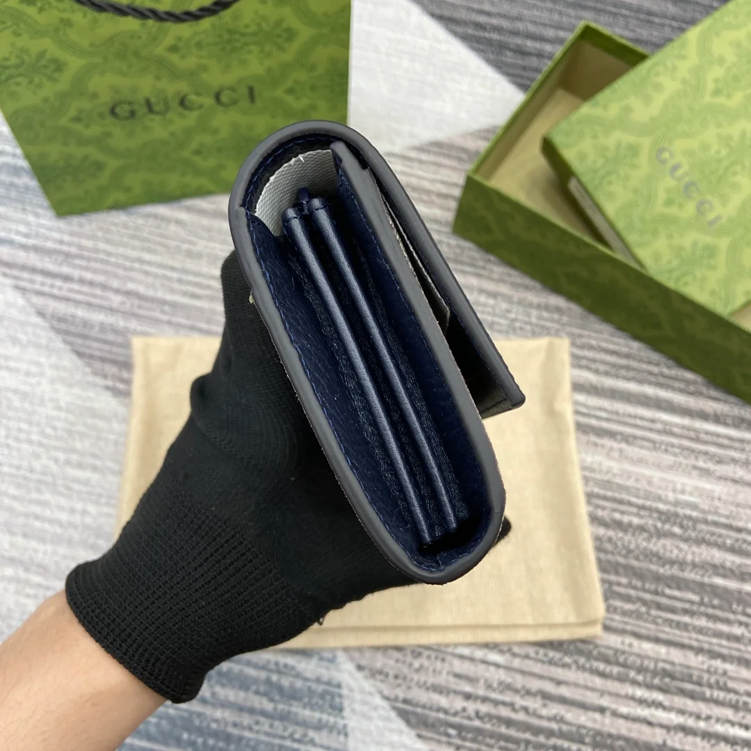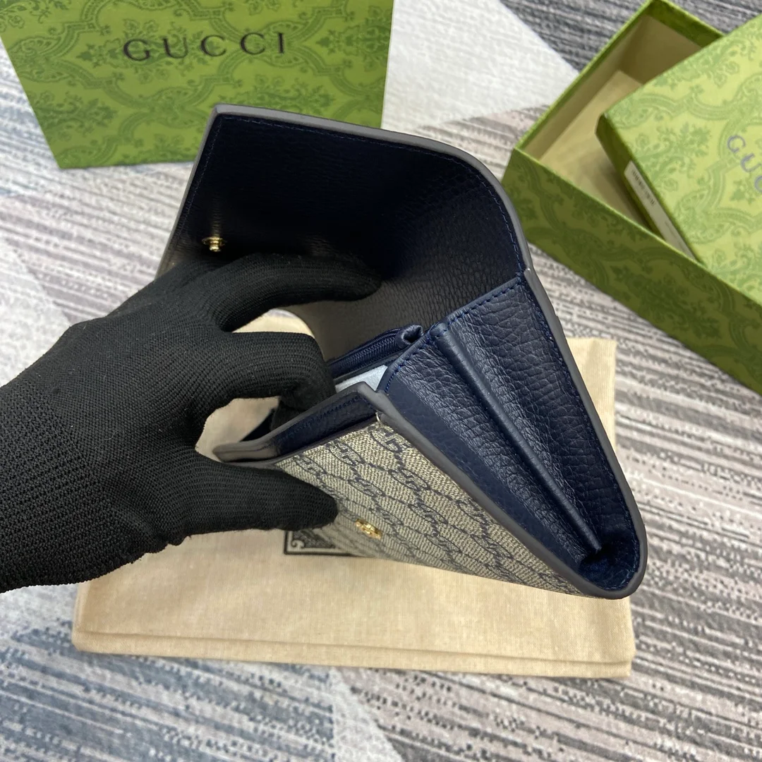 Gucci -【Comes with full boutique packaging】‼️ This key pouch is made of classic double-G monogram canvas and blue leather, adorned with delicate double-G shaped hardware. The interior features multiple card compartments and two bill compartments, with a snap closure. Blue GG Supreme canvas, eco-friendly materials, and blue leather.