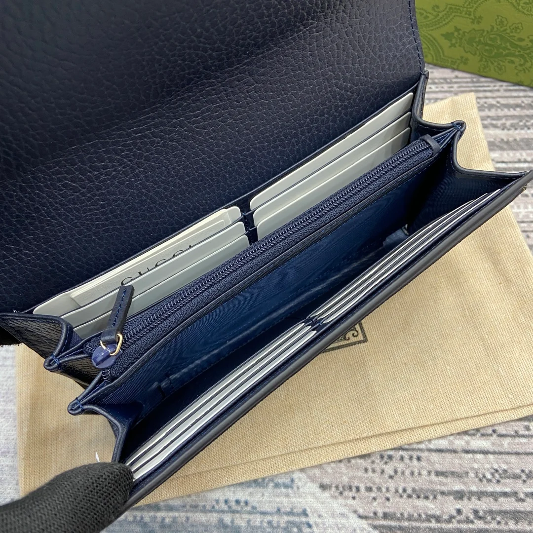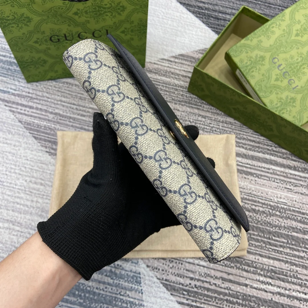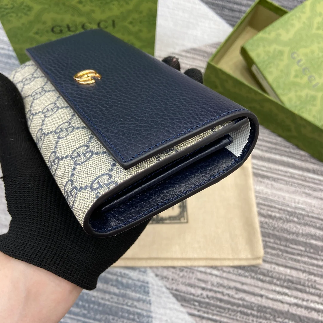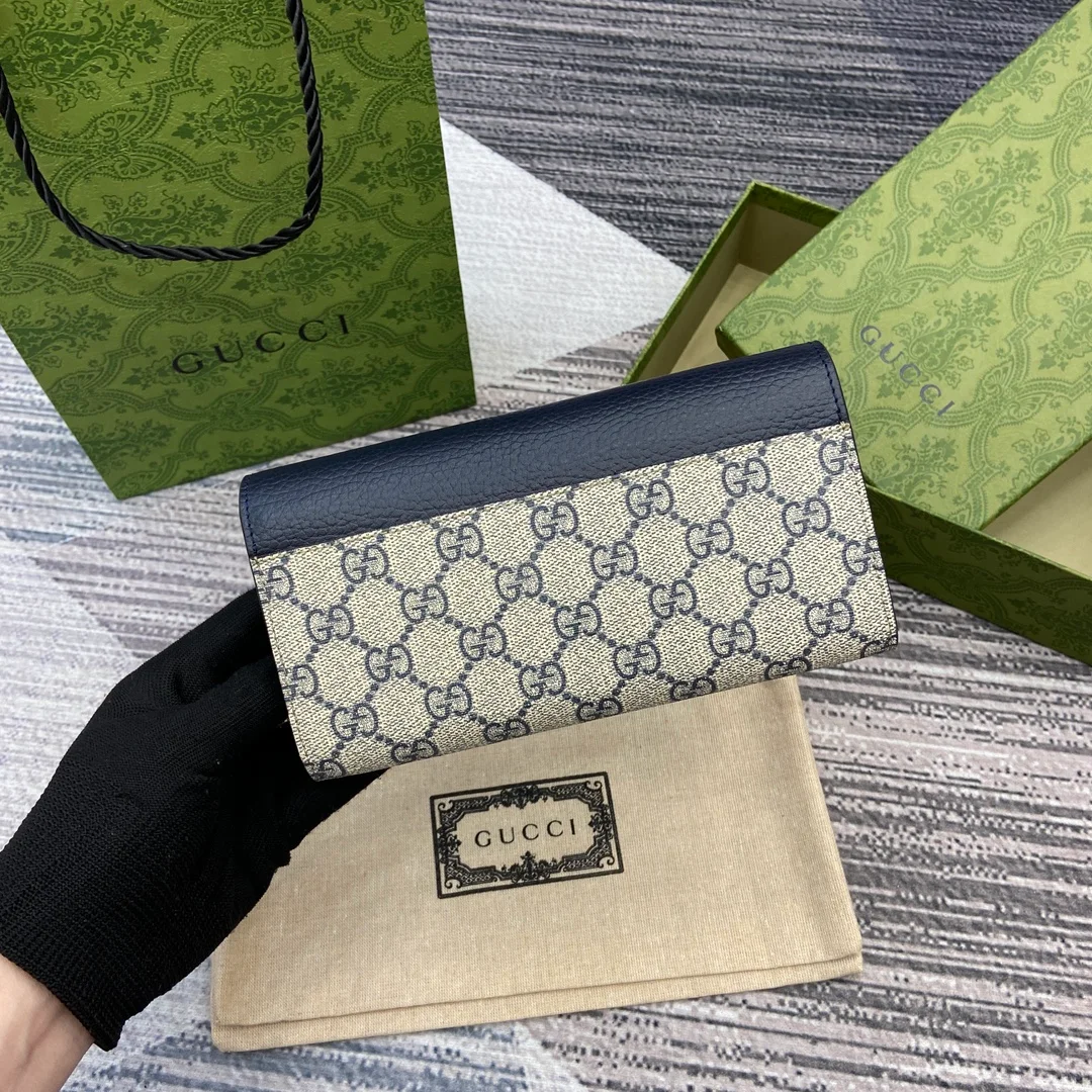 Gucci -【Comes with full boutique packaging】‼️ This key pouch is made of classic double-G monogram canvas and blue leather, adorned with delicate double-G shaped hardware. The interior features multiple card compartments and two bill compartments, with a snap closure. Blue GG Supreme canvas, eco-friendly materials, and blue leather.