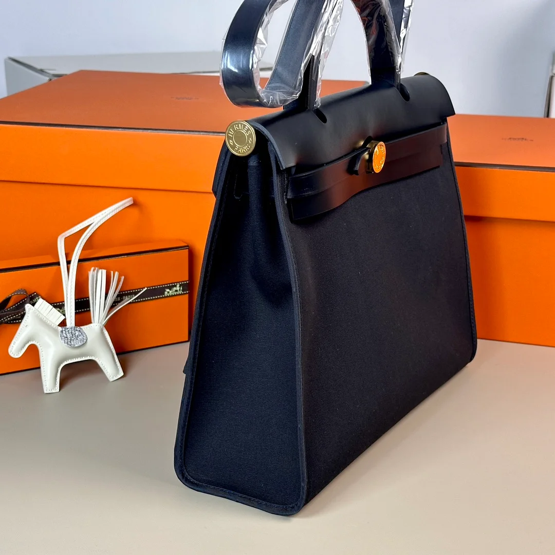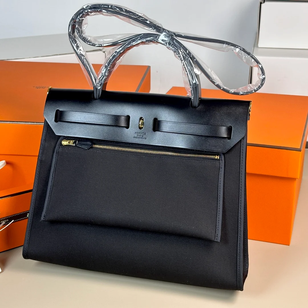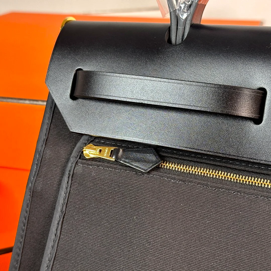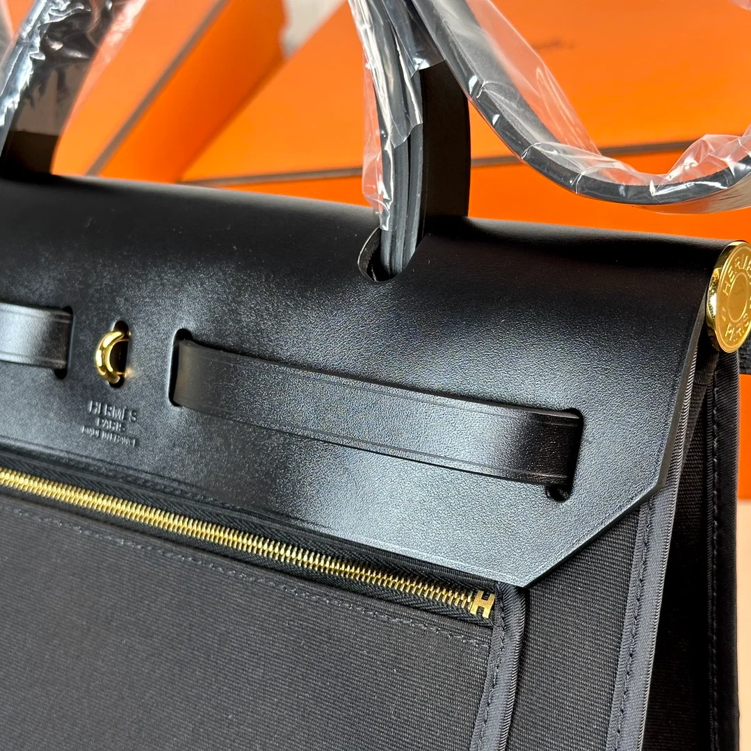 Hermes - Herbag 31, black exterior stitching, gold hardware.